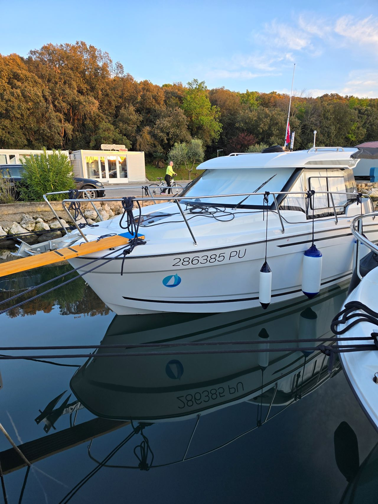 | Outside | 220V shore connection, Anchor with chain, Bathing platform, Cockpit shower, Cockpit speakers, Cockpit cushions, Electr. anchor windlass, Mooring lines, Solar panels, Awning, Teak on bathing platform |