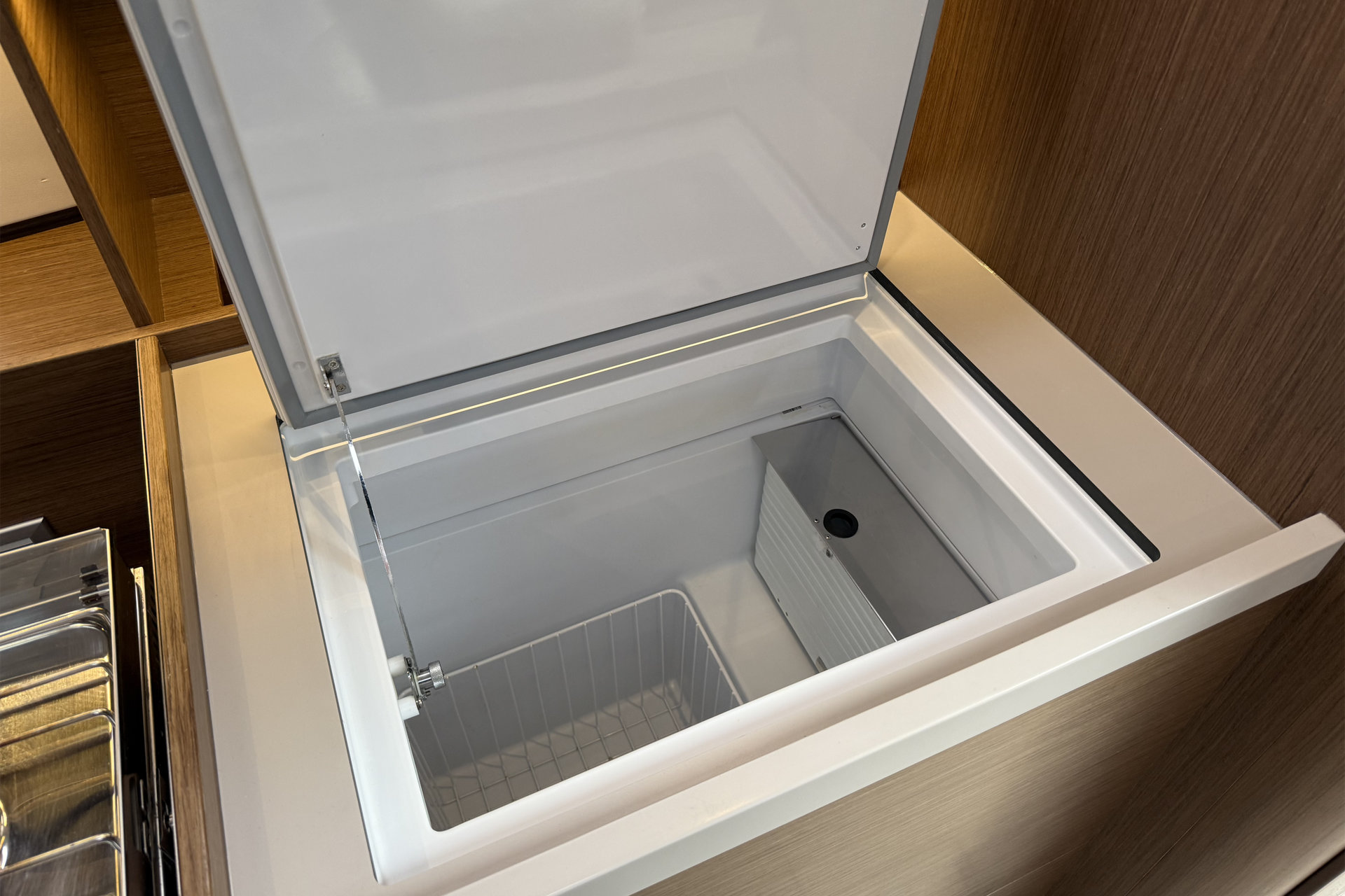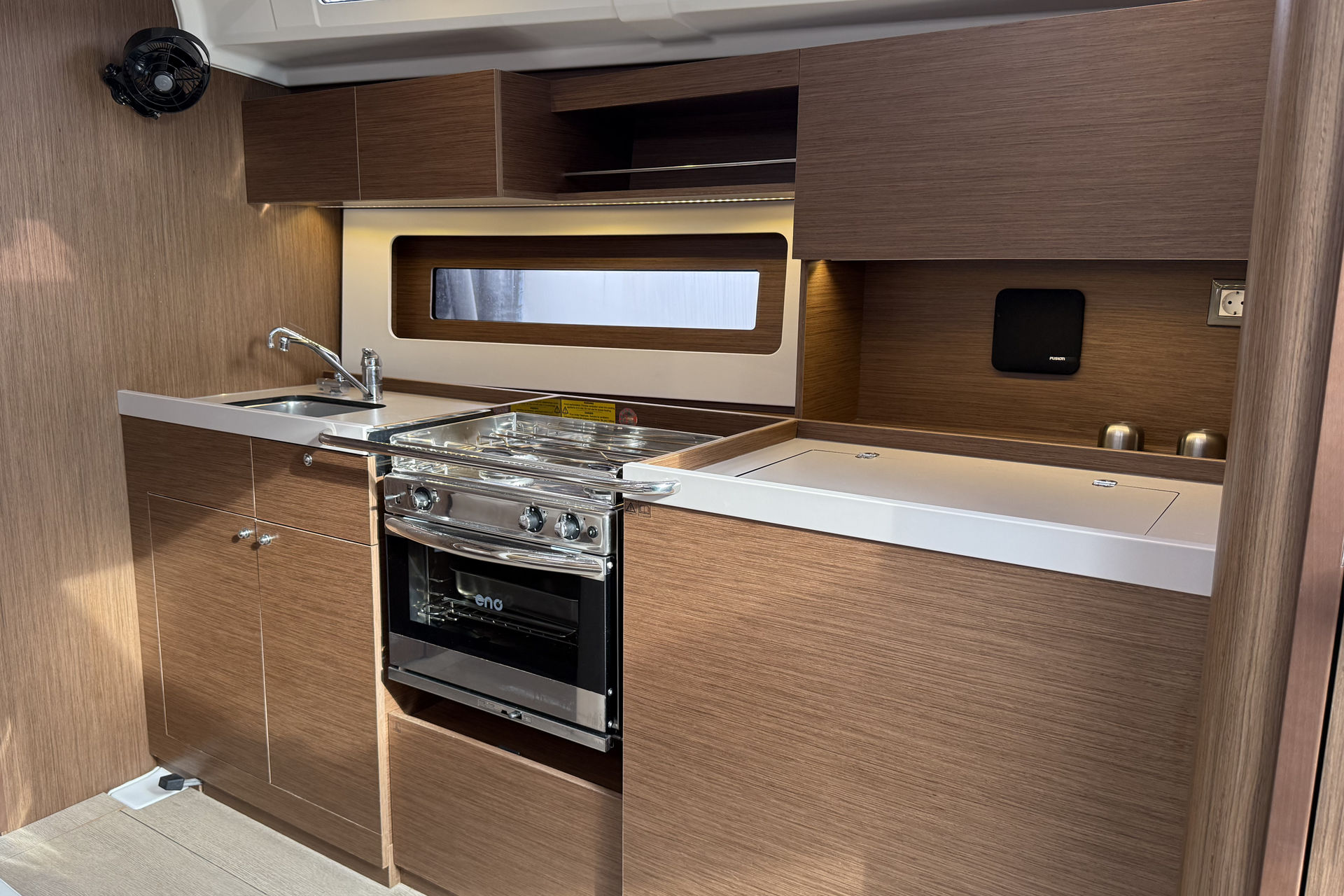 | Inside | 220V sockets, Oven, Clock, Pressurised water, Black water tank, Gas oven, Heating, Heating (part.), Inverter 12V/220V, Battery charger, Shore power cable, Radio with Bluetooth and AUX-In, Safe for valuables, Convertible salon table, Sink, TV, USB sockets in saloon and cabins, Cabin & dining area fan , Warm water |