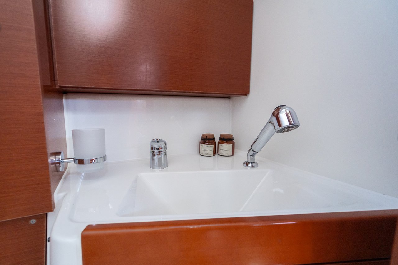 | Outside | Bathing platform, Bimini top, Cockpit shower, Cockpit speakers, Cockpit table, Electr. anchor windlass, Fender, Solar panels, Sprayhood |