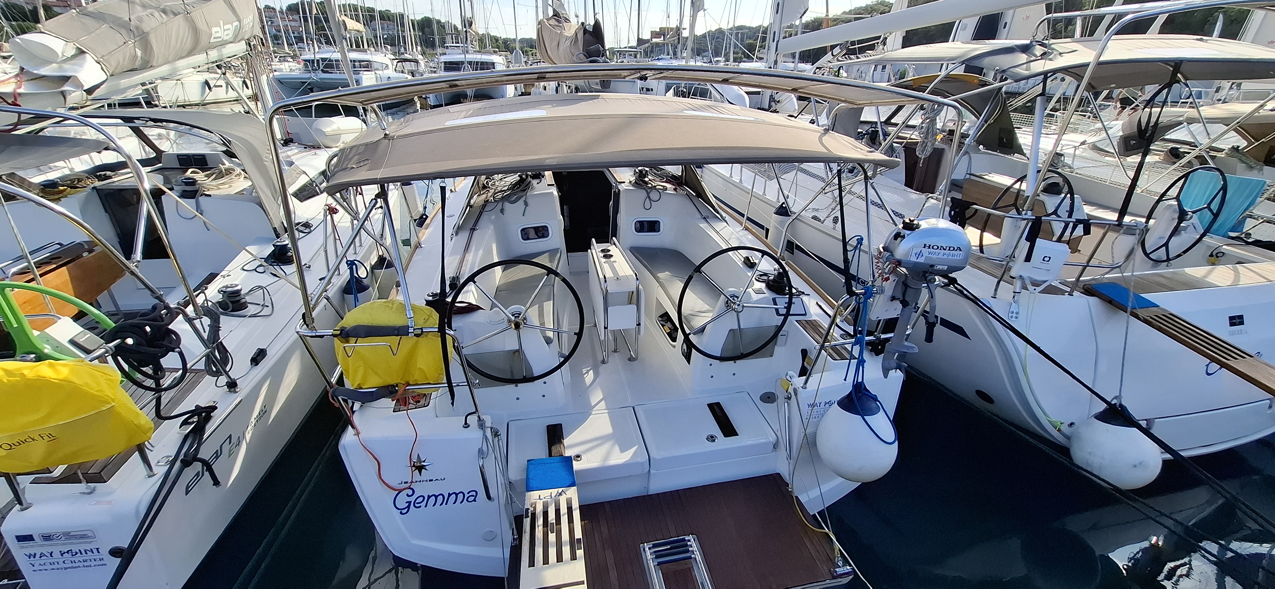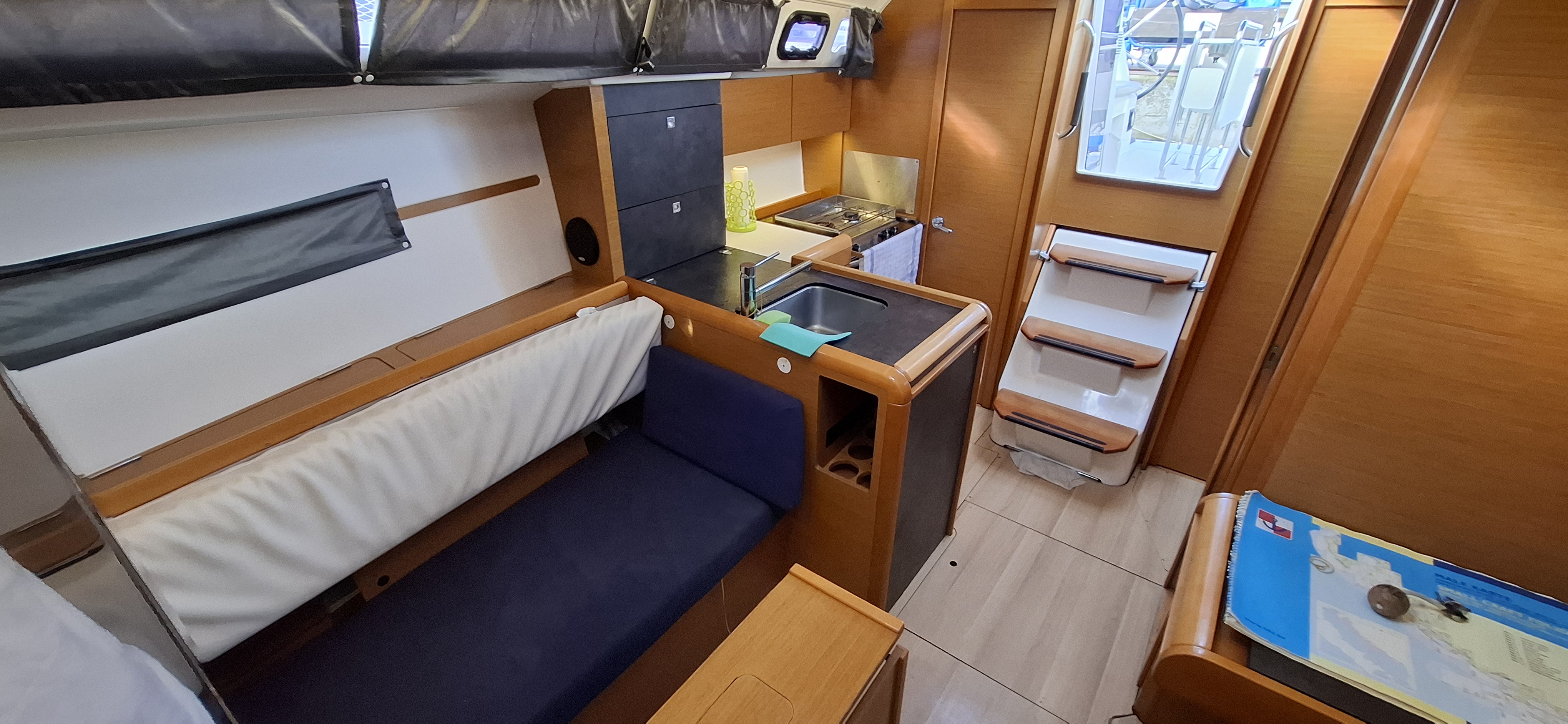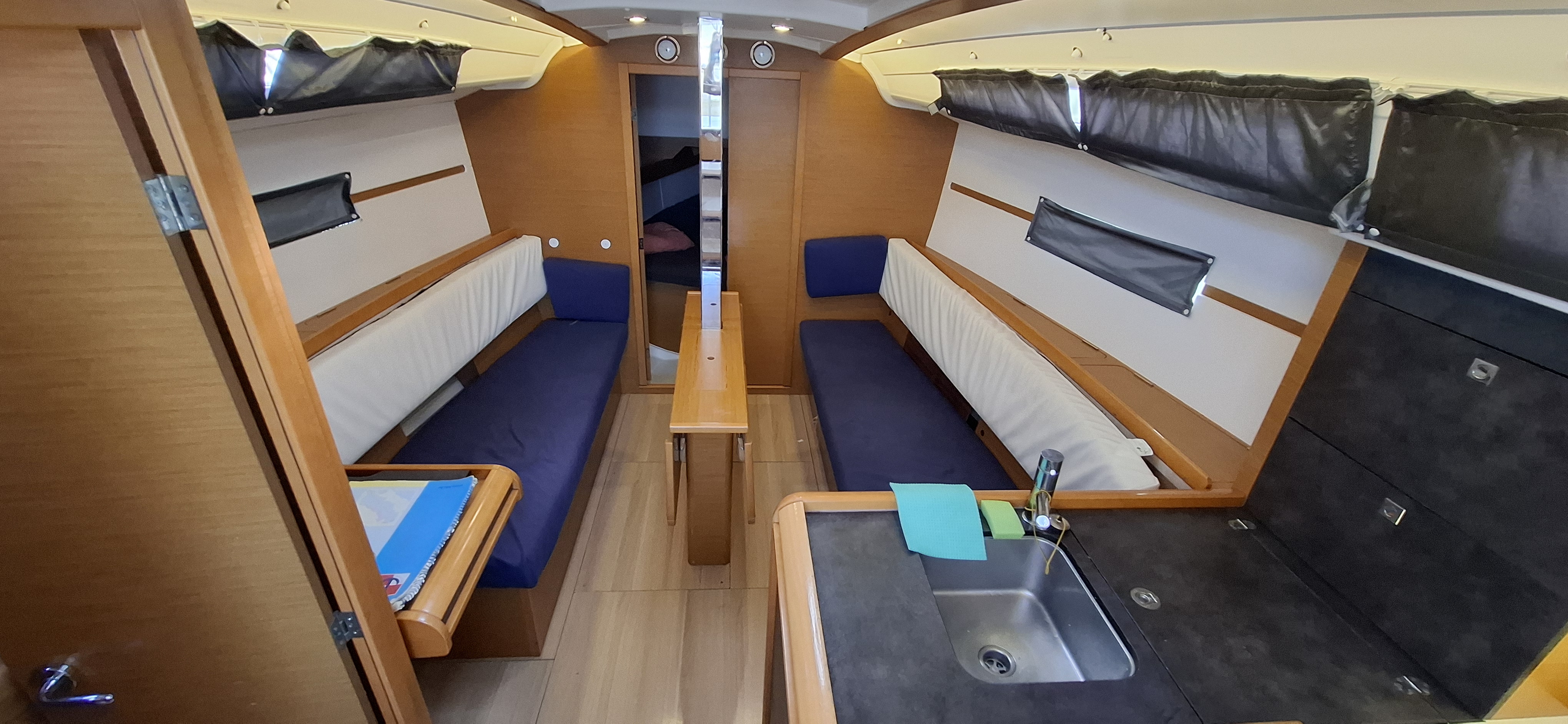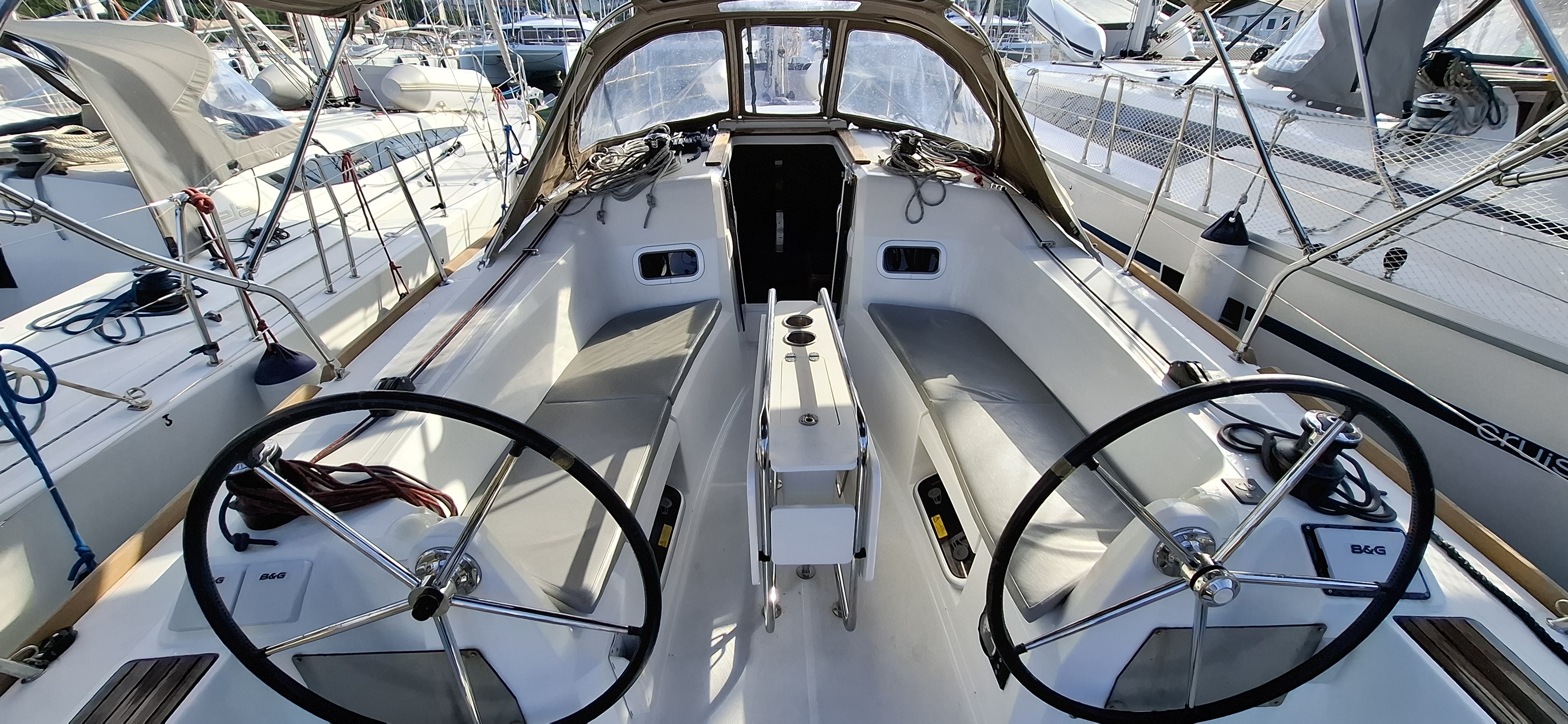 | Outside | Bathing platform, Bimini top, Cockpit shower, Electr. anchor windlass, Solar panels, Sprayhood |
