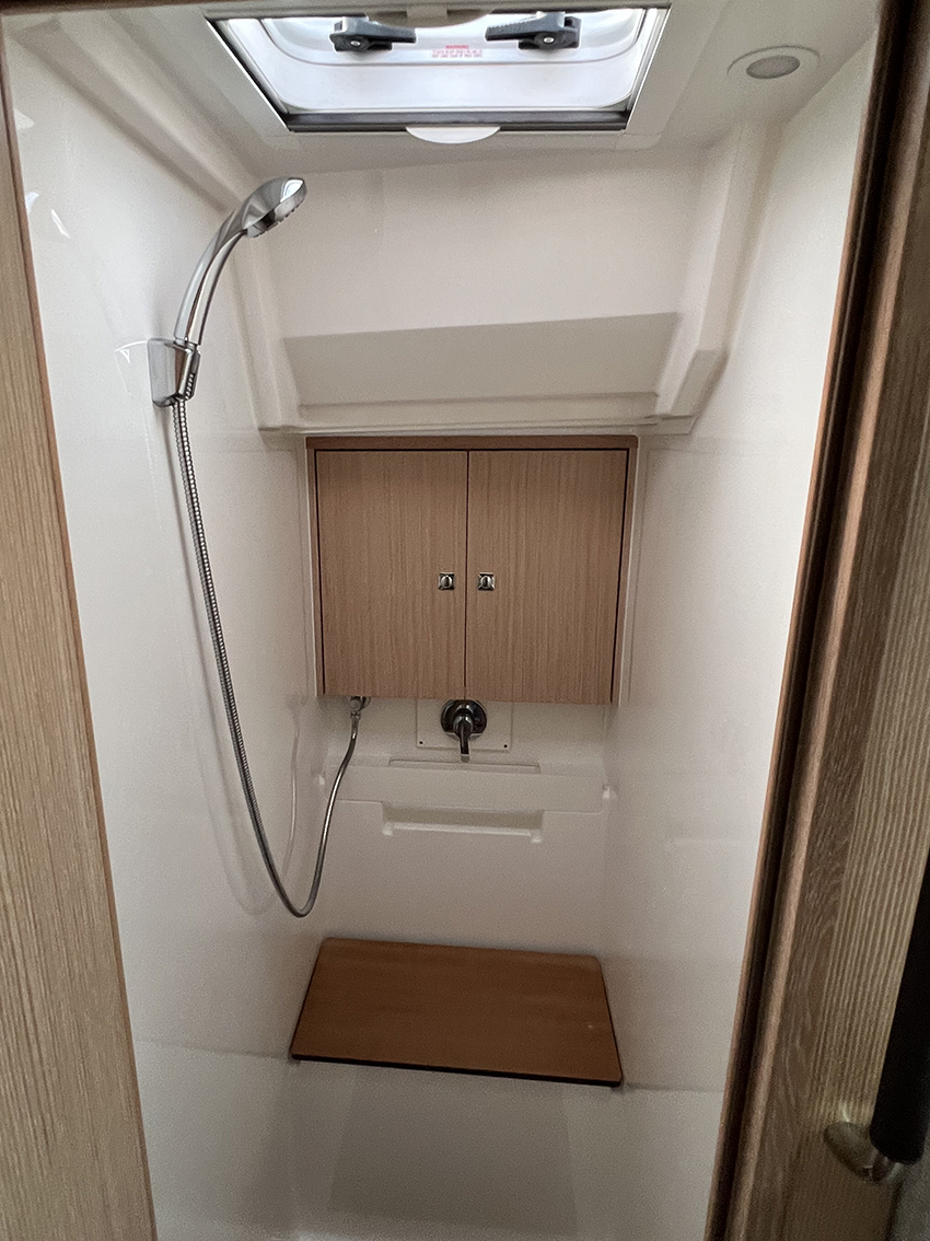 | Outside | 220V shore connection, Anchor with chain, Bathing platform, Bimini top, Boat hook, Cockpit shower, Cockpit speakers, Cockpit table, Electr. anchor windlass, Fender, Mooring lines, BBQ, Ball fender, Plastic bucket, Rodkicker, Sprayhood, Winches |