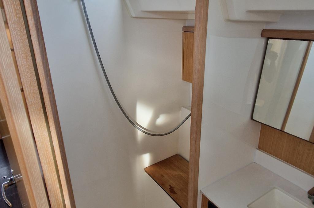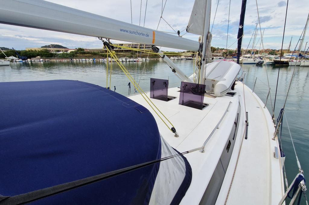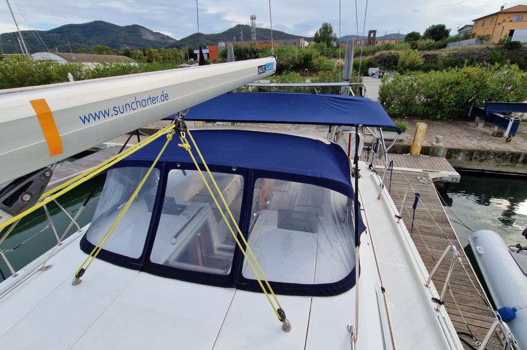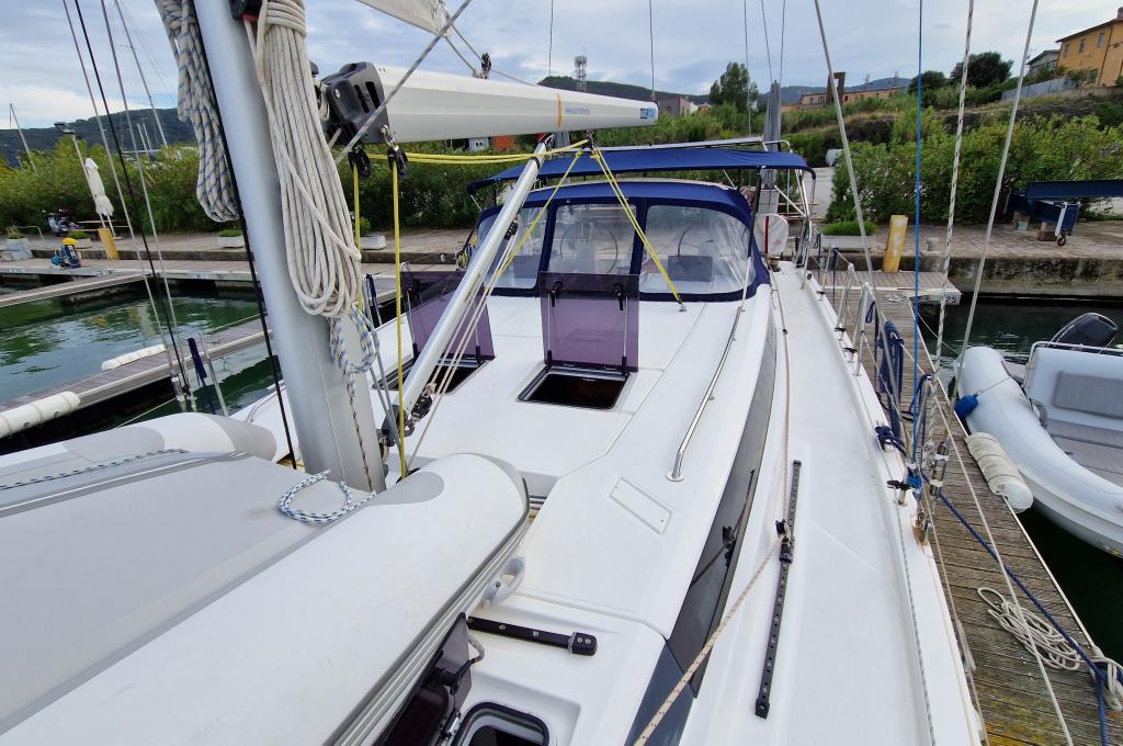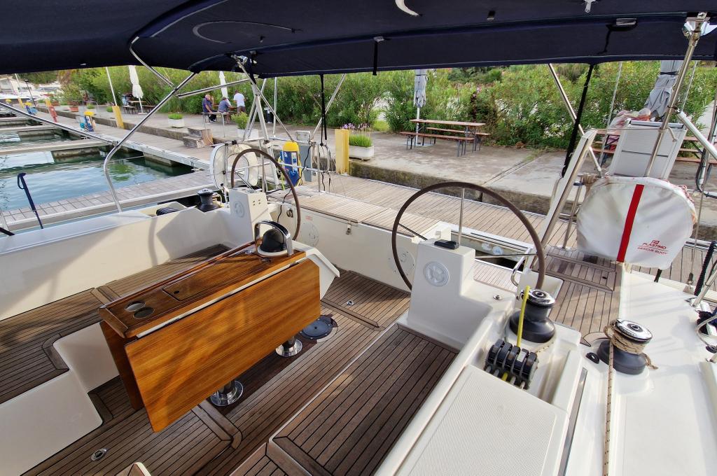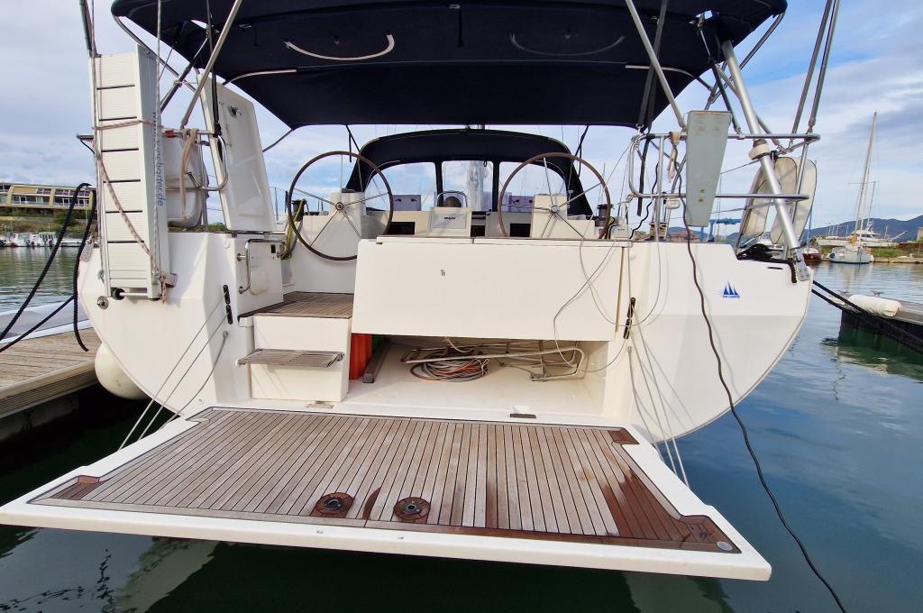 | Outside | 220V shore connection, Anchor with chain, Anchor winch, Bathing platform, Bimini top, Boat hook, Cockpit shower, Cockpit speakers, Cockpit light, Cockpit cushions, Cockpit table, Jerry cans for diesel, Electr. anchor windlass, Fender, Mooring lines, Gangway, Ball fender, Plastic bucket, Lifeline system, Solar panels, Sprayhood, Teak in cockpit, Wire (shroud) cutter, Canister for water, Water hose, Windex |
