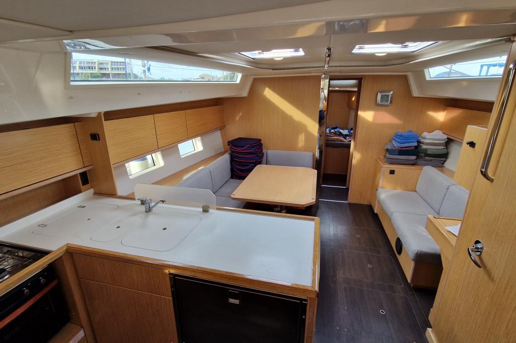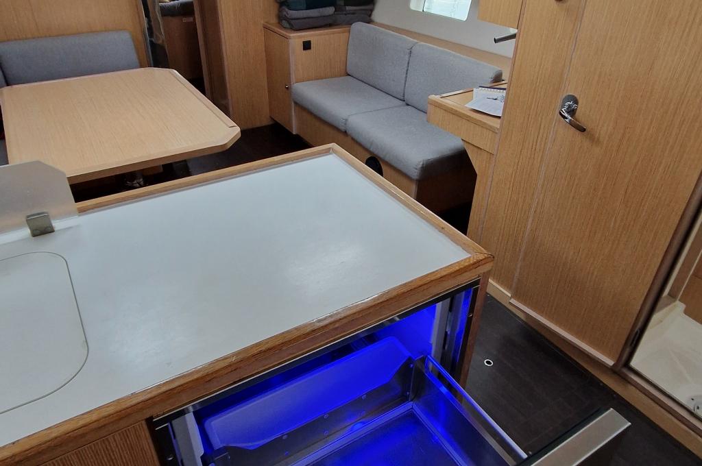 | Inside | Oven, Clock, Black water tank, Gas oven, Heating, Refrigerator, Battery charger, Dinghy (byboat) pump, Pantry equipment, Radio, Convertible salon table, Warm water |
