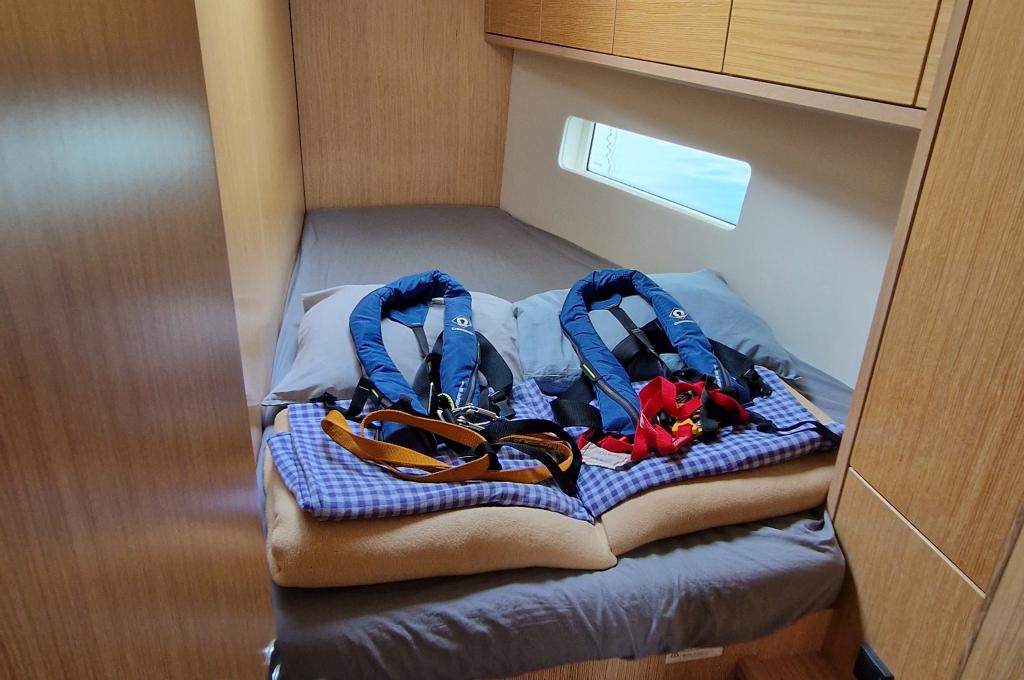 | Safety | Automatic life jackets, Autopilot, Lightning buoy, Bosun's chair, First aid kit, Tools, Bowthruster, Fire extinguisher, Lifebelts, Engine spare parts , Fog horn, Distress signals, Radar reflector, Repair box for dinghy, Life raft, Searchlight, Torchlight, VHF Radio, Second anchor |
