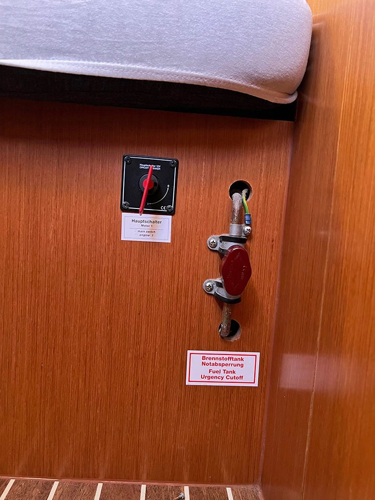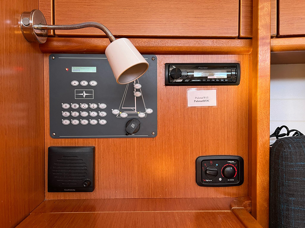 | Safety | First aid kit, Tools, Bowthruster, Solid life vests, Manual bilge pump, Navigational lights, Fog horn, Emergency tiller, Distress signals, Rescue collar, Torchlight, VHF Radio |