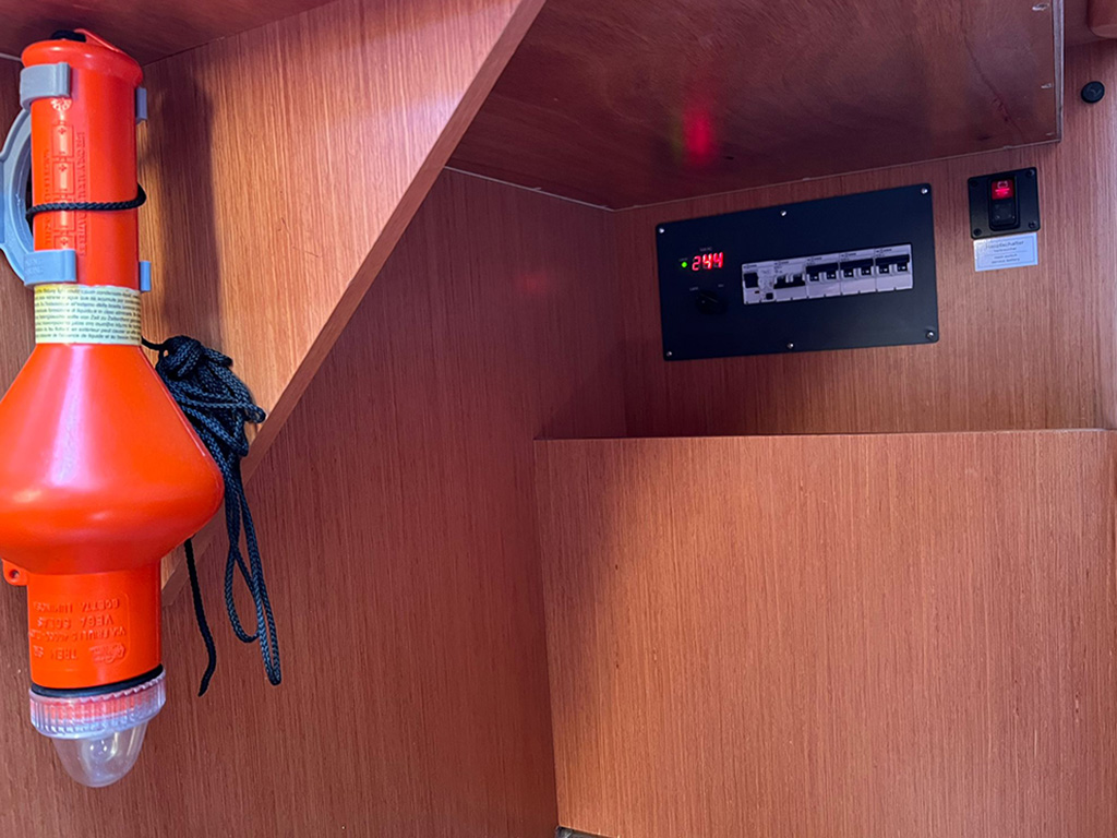 | Safety | First aid kit, Tools, Bowthruster, Solid life vests, Manual bilge pump, Navigational lights, Fog horn, Emergency tiller, Distress signals, Rescue collar, Torchlight, VHF Radio |