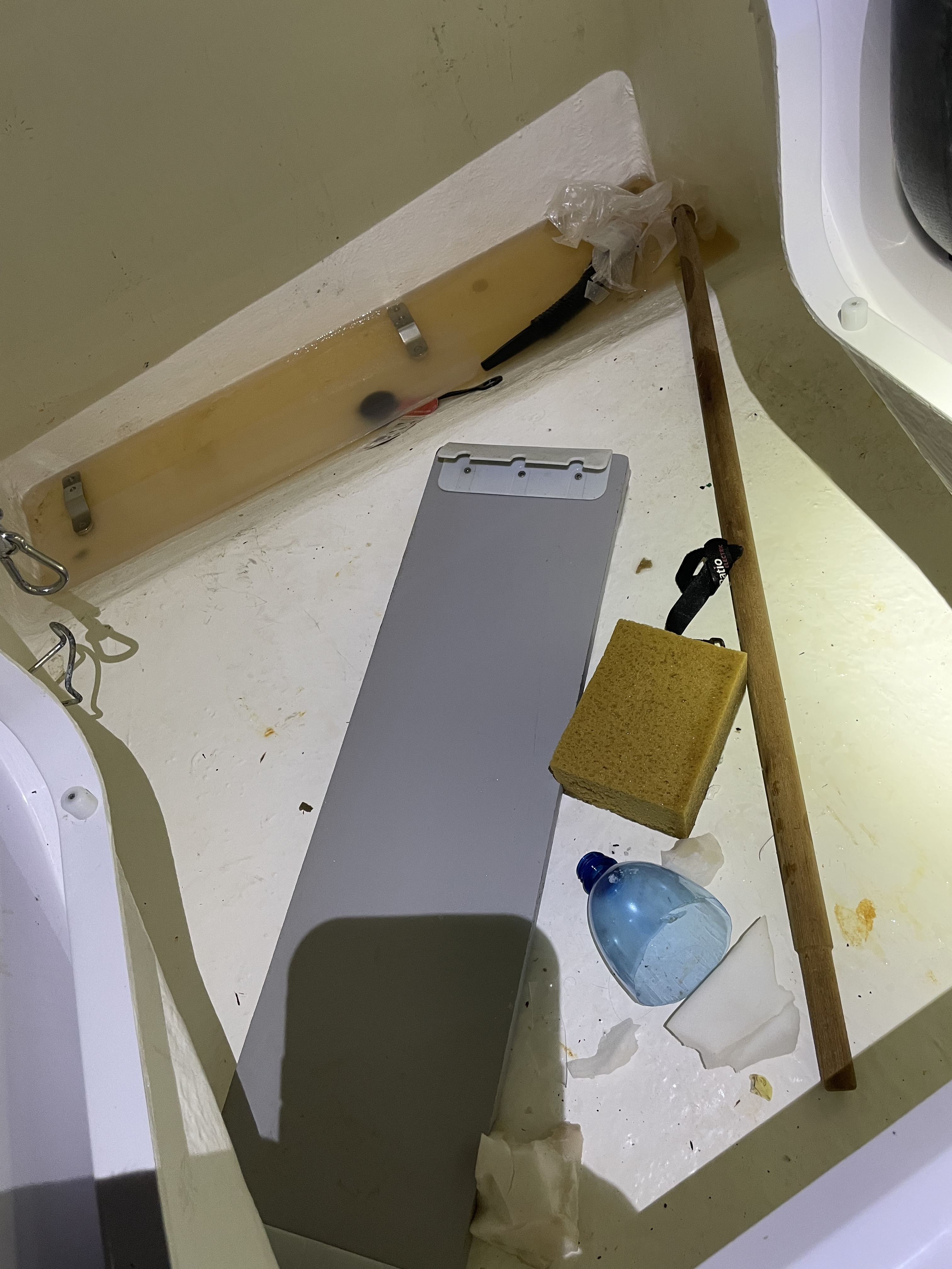 Bei der Übernahme gab es einen negativ Punkt, die Backskiste war mit Benzin Wasser Gemisch geflutet, der übliche Inhalt mit etwas Müll und Glasscherben war darin eingelegt. Auf die Frage was damit passiert, erhielt ich die Antwort, er wäre nur für die Übergabe zuständig . Ich habe selbst für Ortnung und Sauberkeit gesorgt.