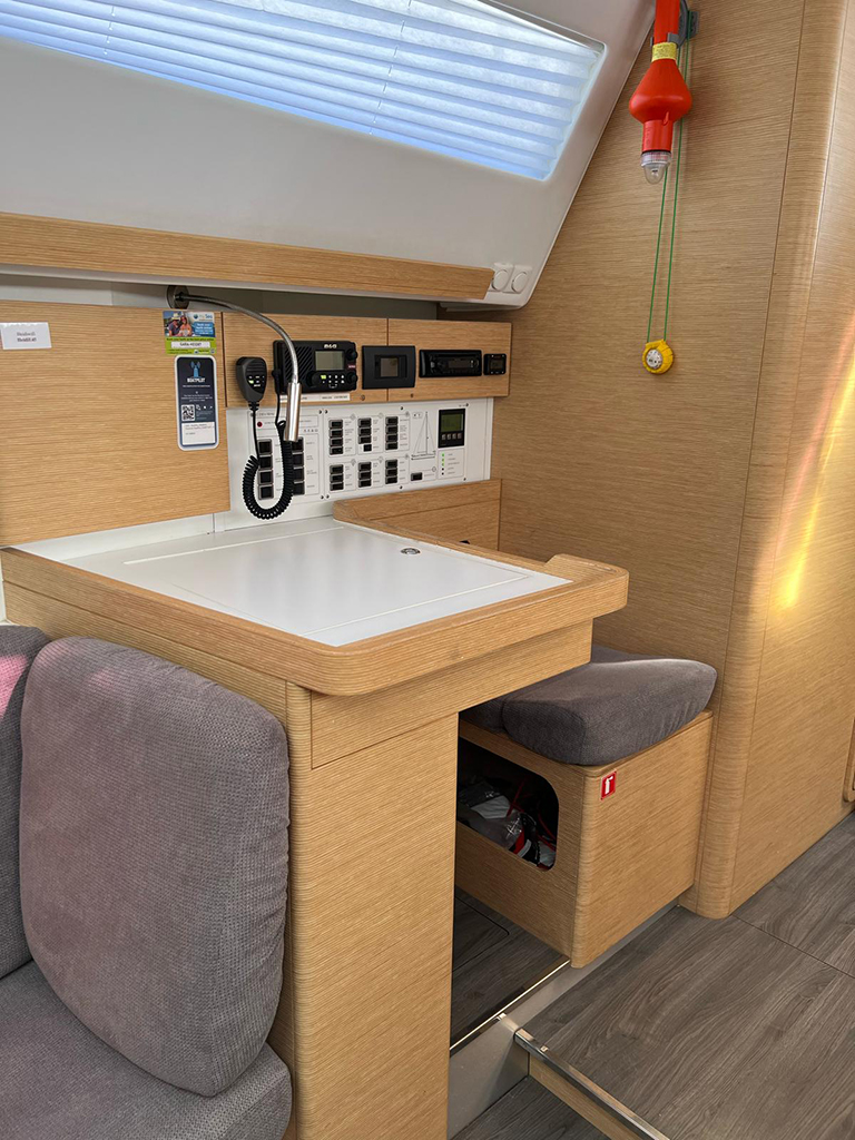 | Safety | Autopilot, First aid kit, Tools, Bowthruster, Solid life vests, Manual bilge pump, Navigational lights, Fog horn, Emergency tiller, Distress signals, Life raft, Rescue collar, Torchlight, VHF Radio |