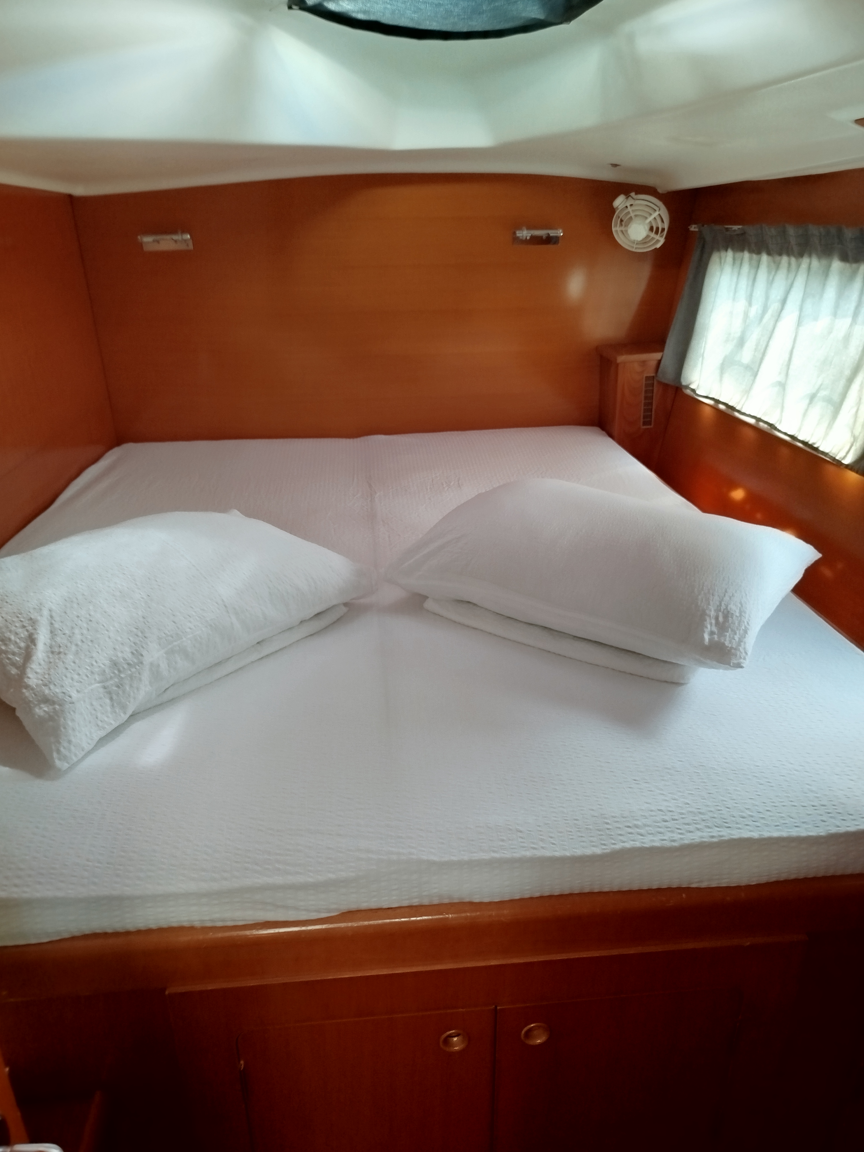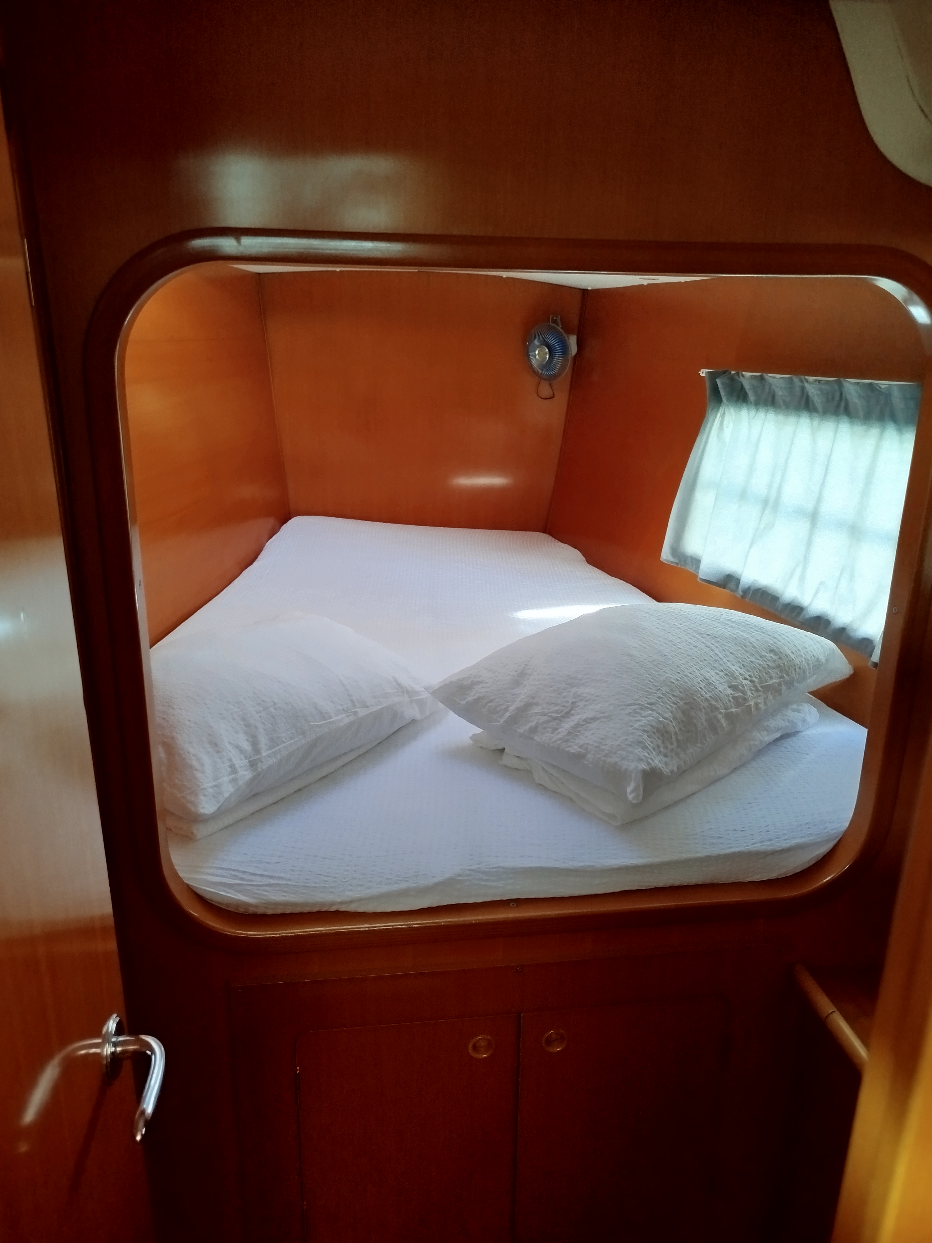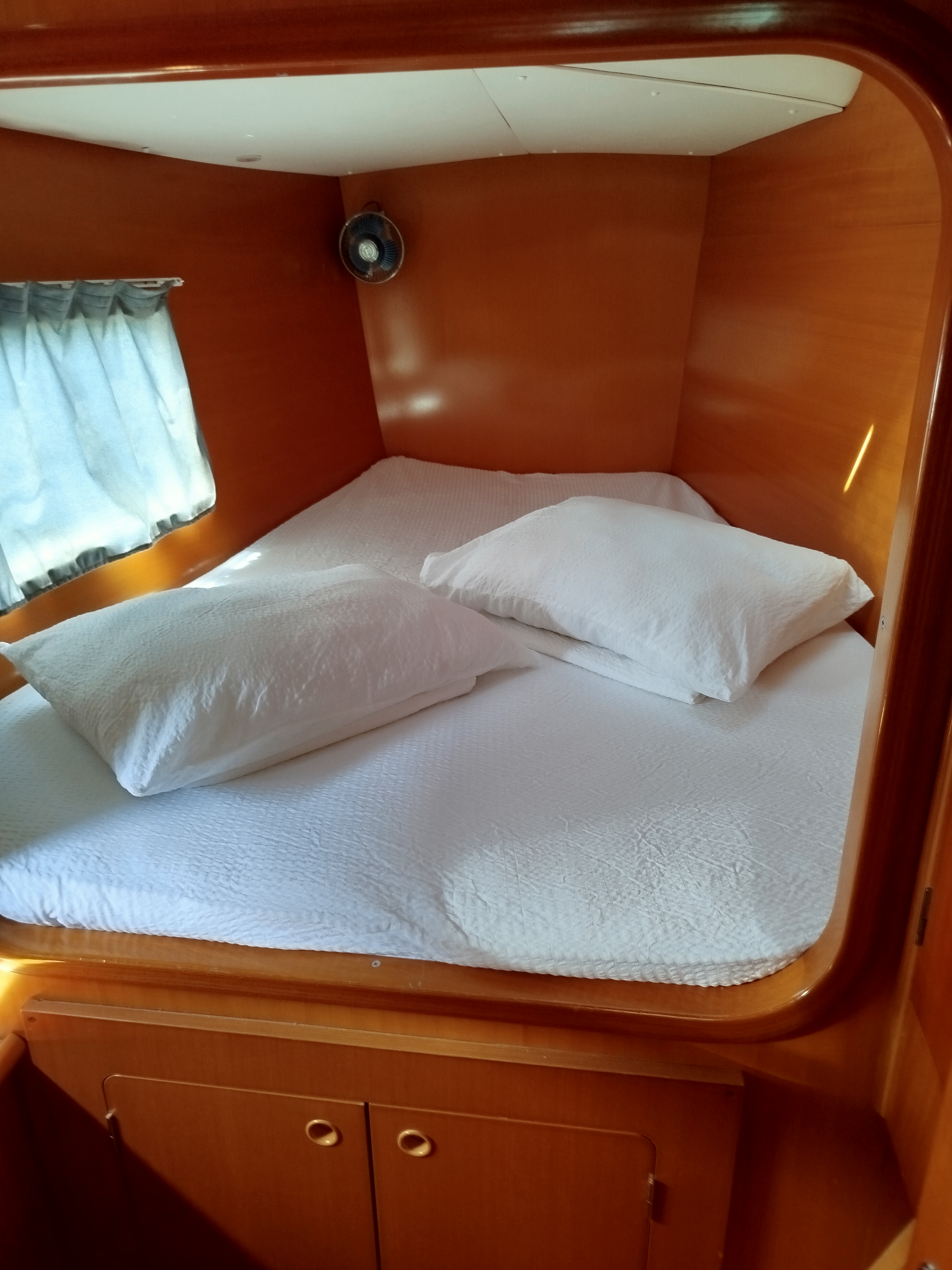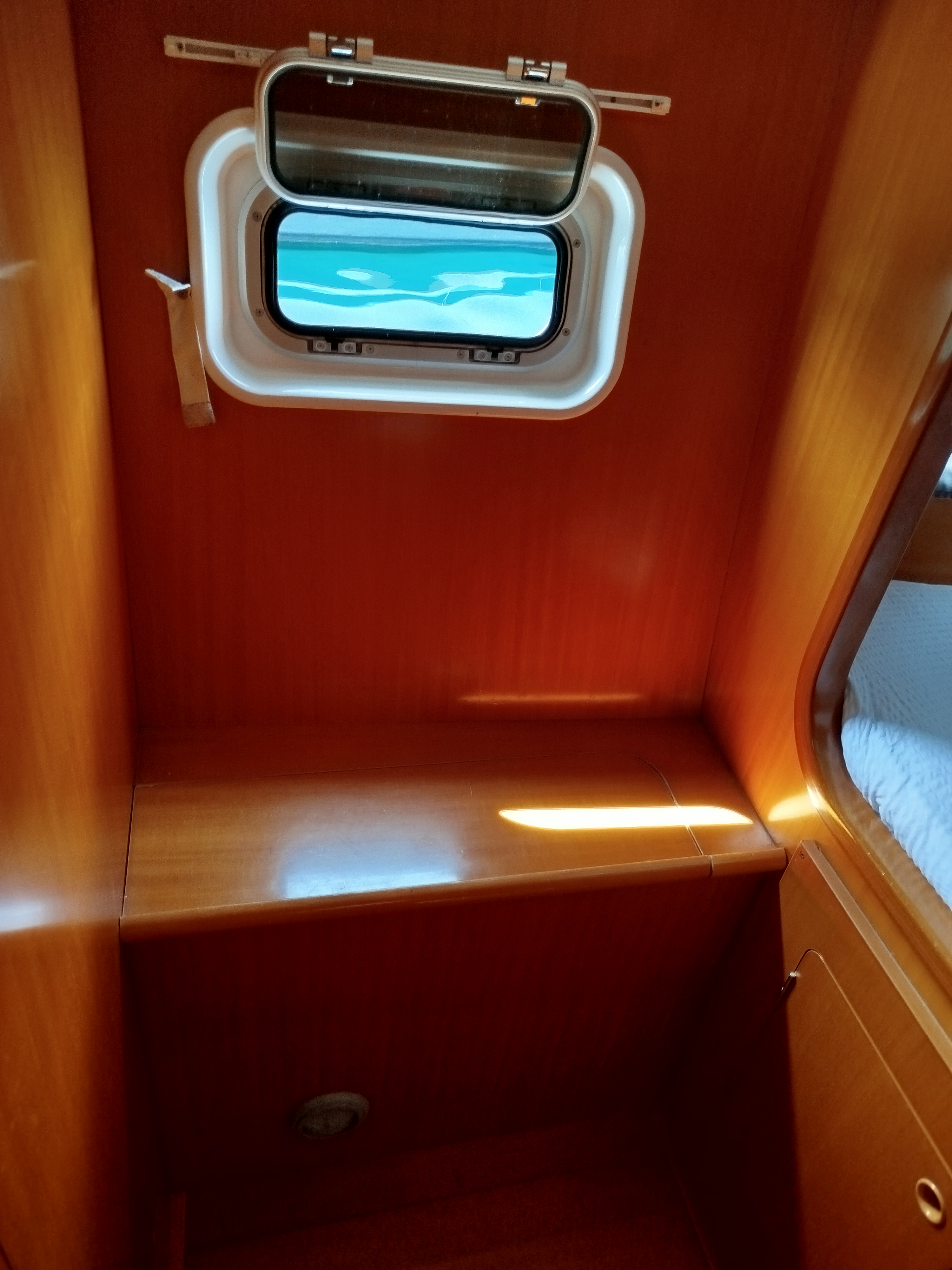 Die Yacht ist für ihr Baujahr sehr gut in Schuss. Der Eigner hat ein Refit durchgeführt. Das Deck ist neu. Es gibt ausreichend USB Lademöglichkeiten im Salon und außen am Steuerstand mit USB-A und USB-C. Kartenplotter muss neu kalibriert werden, als erfahrener Segler ist das aber akzeptabel. Wasserschlauch vergessen - passiert mal. 😉