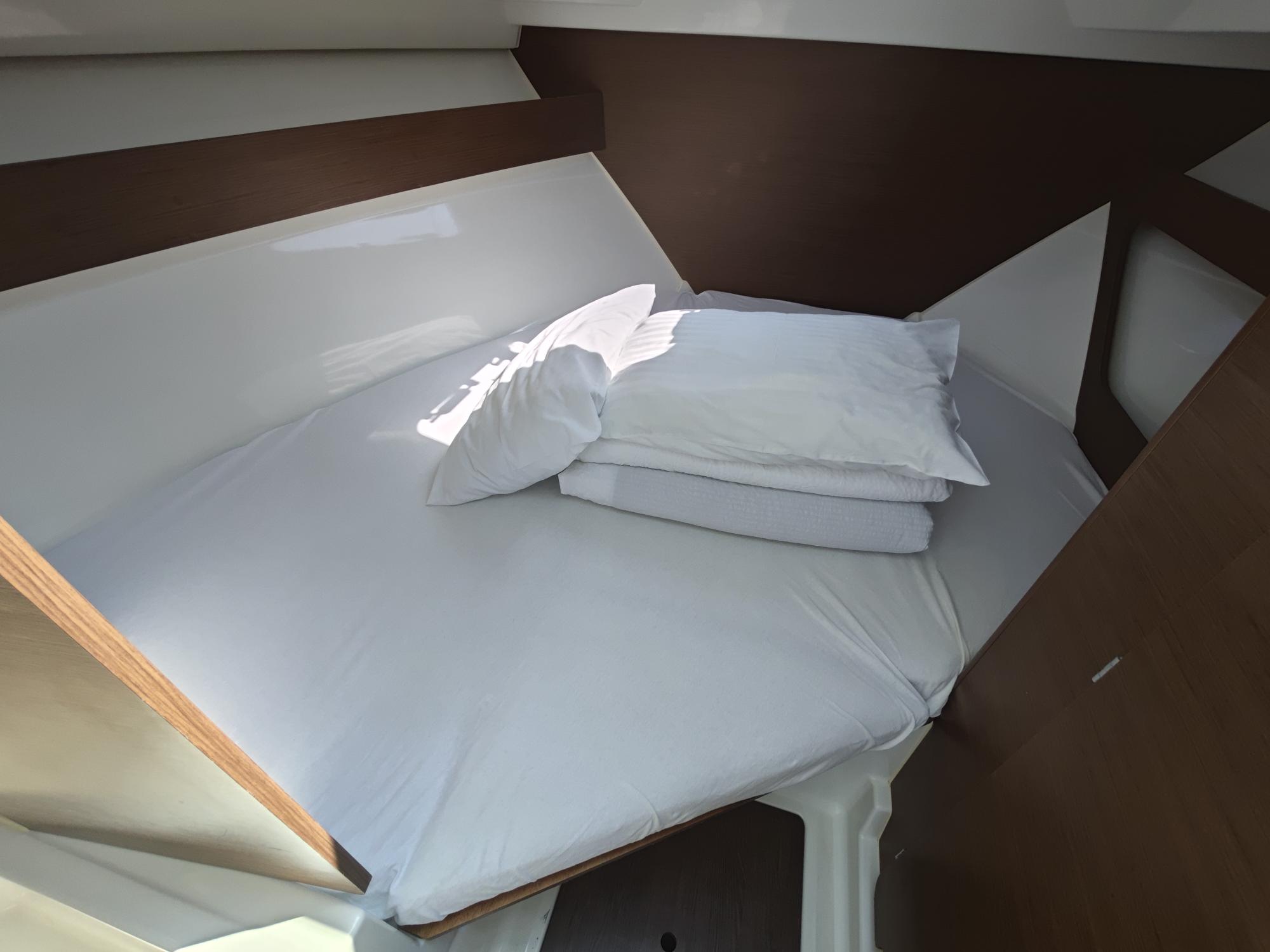 | Outside | 220V shore connection, Anchor with chain, Bimini top, Boat hook, Cockpit shower, Cockpit speakers, Cockpit cushions, Delta anchor, Electr. anchor windlass, Fender, Mooring lines, Solar panels, Sun deck, LED submarine lights |