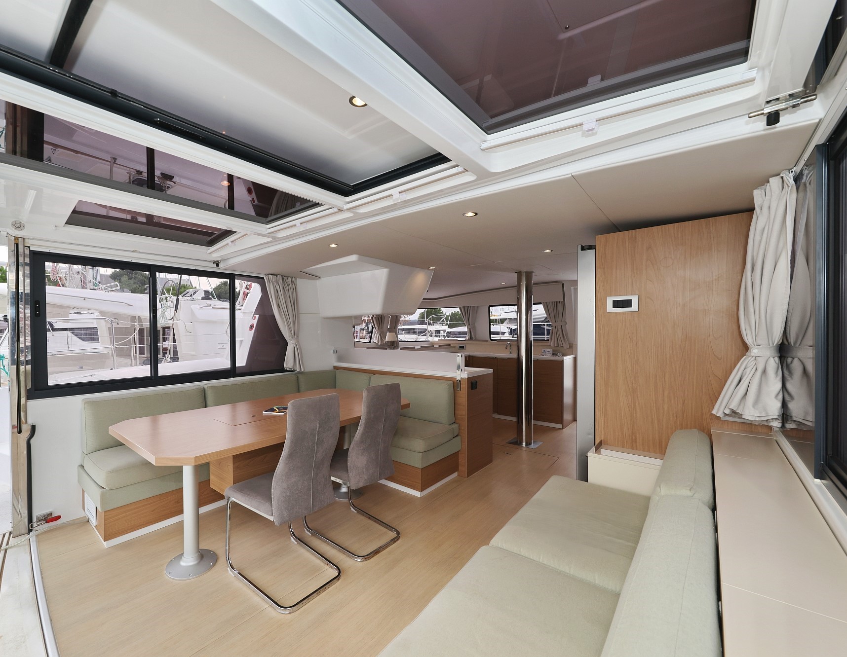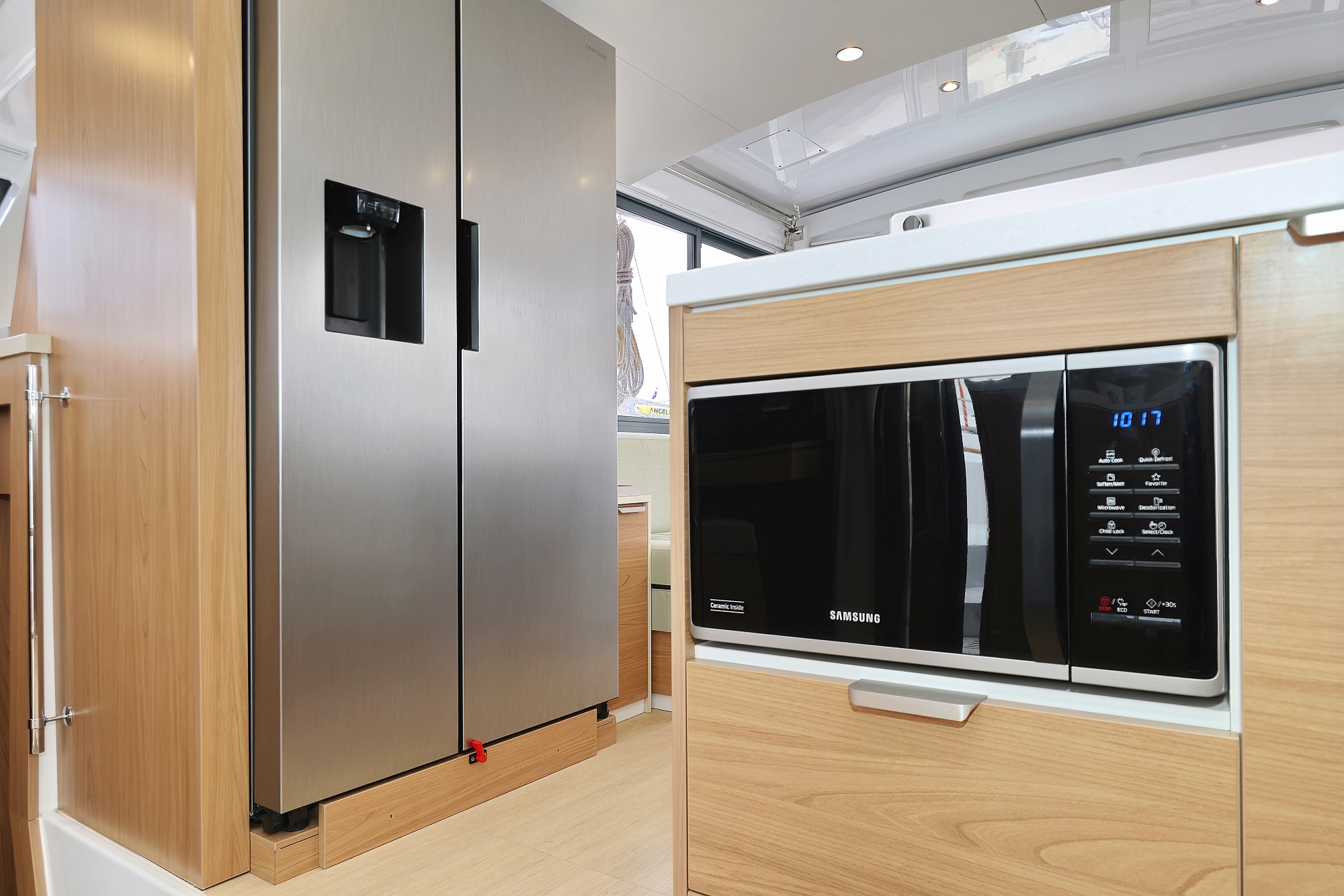 | Inside | 220V sockets, Oven, Black water tank, Gas oven, Generator, Heating, Inverter 12V/220V, Airconditioning (independent from shore power), Refrigerator, Battery charger, Microwave oven, Moka pot, Mosquito nets, Radio, Kettle, WC (electr.) |