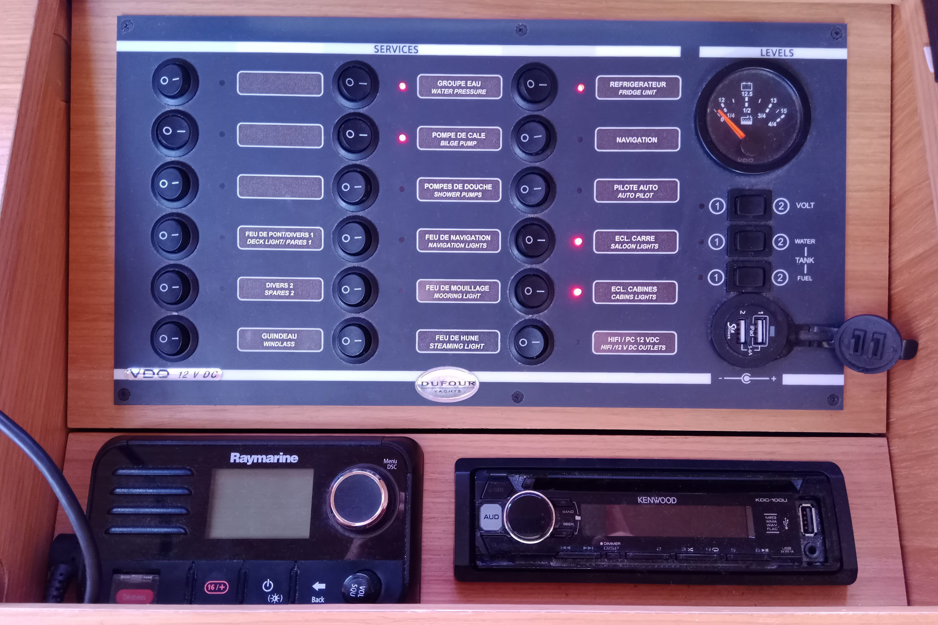 | Navigation | Barometer, Binoculars, GPS Chart Plotter, GPS with chart plotter in cockpit, Harbour books, Hand bearing compass, Compass, Navigation set, Nautical charts, Tridata (Log, Echosounder, Windm.), Anemometer |