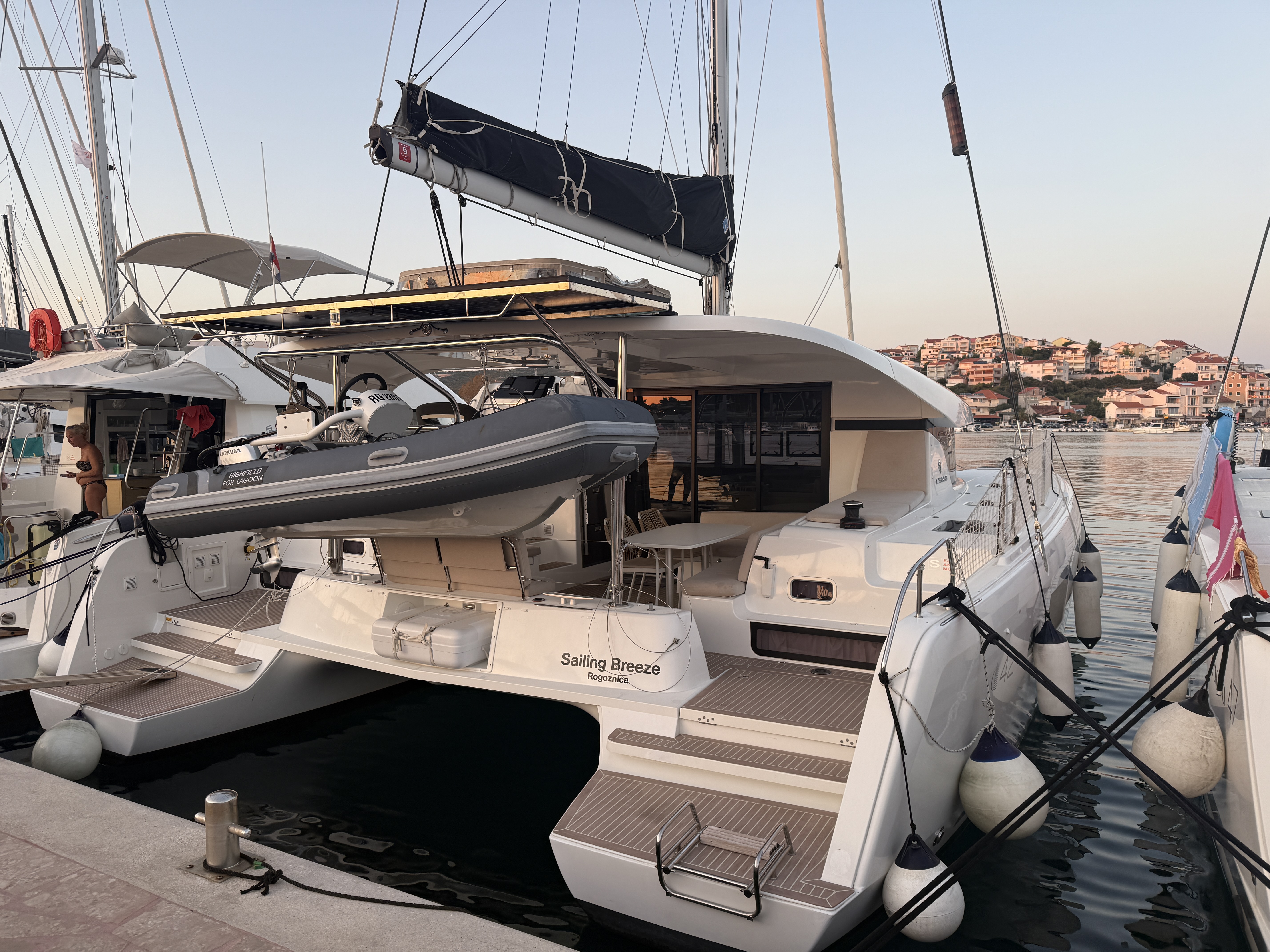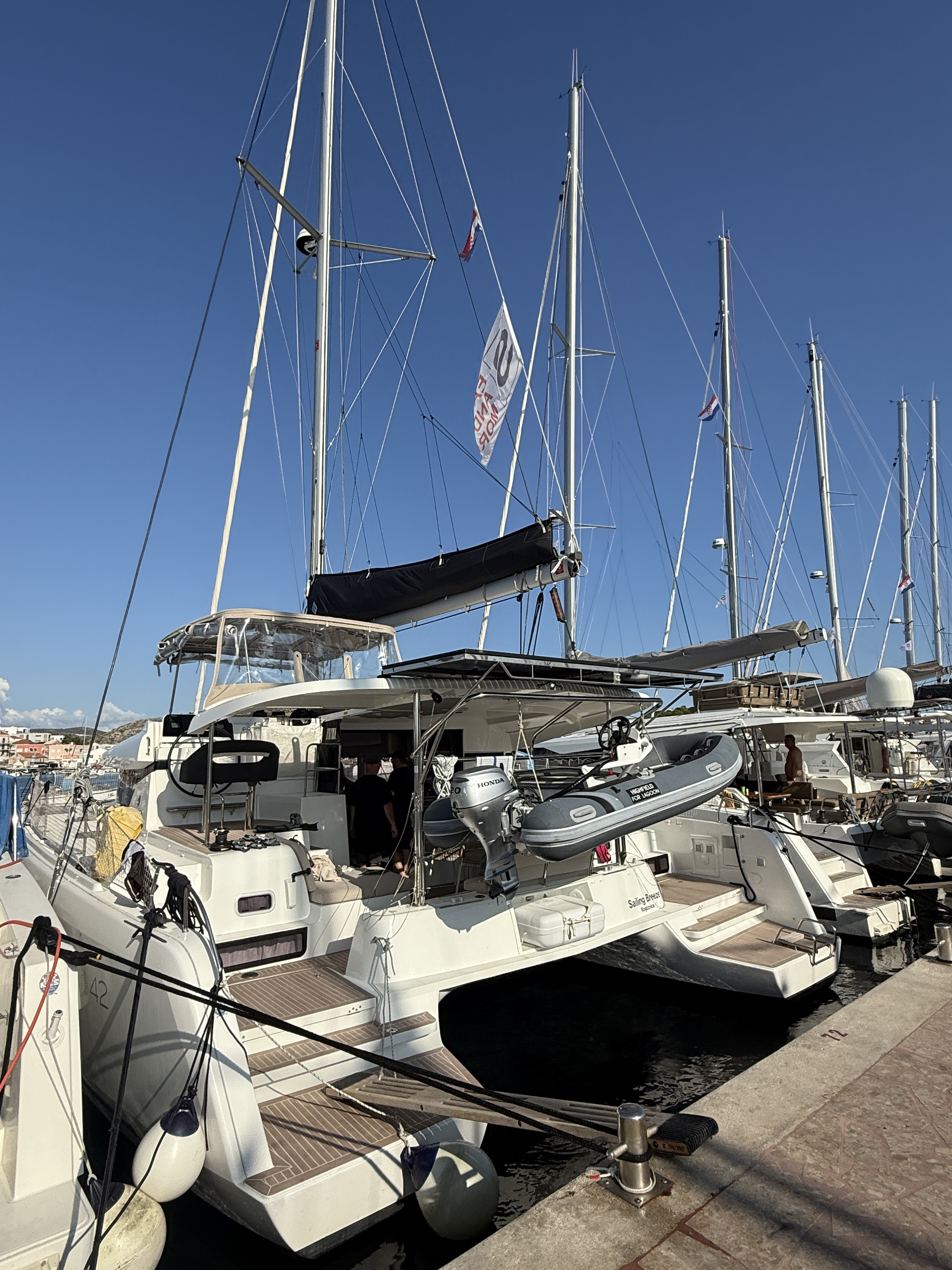 Der Katamaran war sehr gut erhalten für seine 2 Jahre. Ein sehr freundlicher Empfang in der Marina, sowie eine gute und freundliche Einweisung in das Boot runden alles ab. Auch gab es vorweg einen direkten Kontakt für eventuell auftretende Probleme. Parkgebühren für 6 Nächte waren 60€. Auch erträglich.