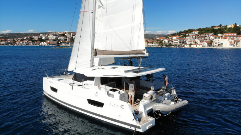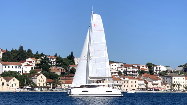 Sehr gute Ausstattung, segelt gut bei raumen Wind, einfach zu bedienen, Wendemanöwer etwas träge, gut zu steuern mit Motor in Marinas.