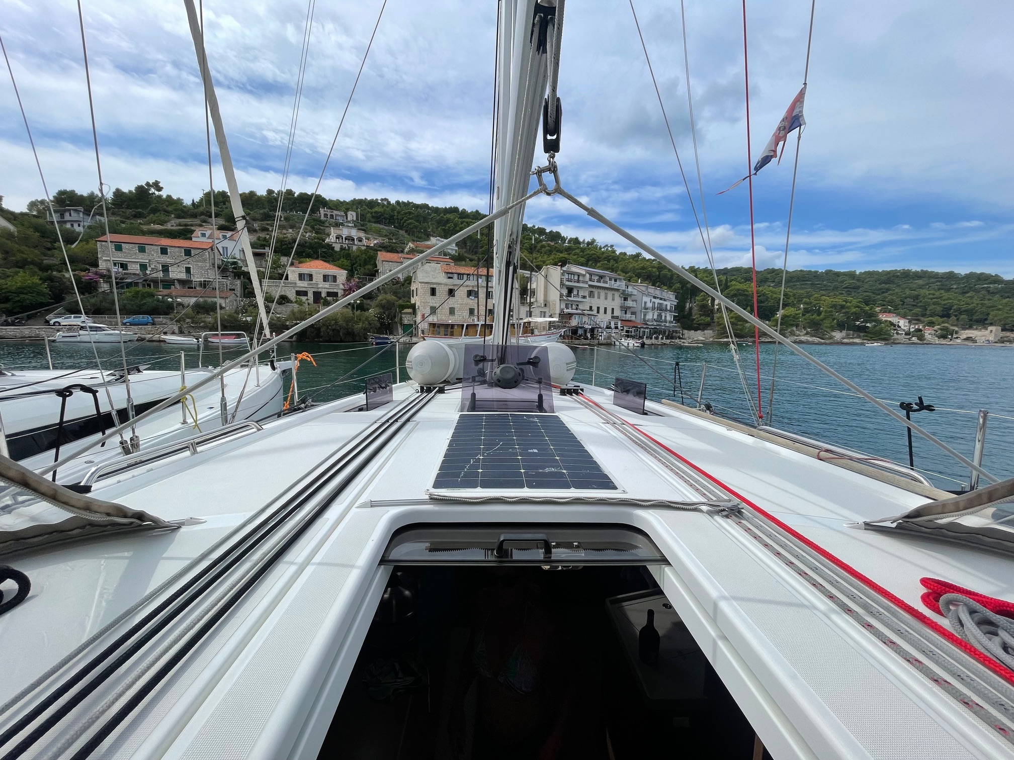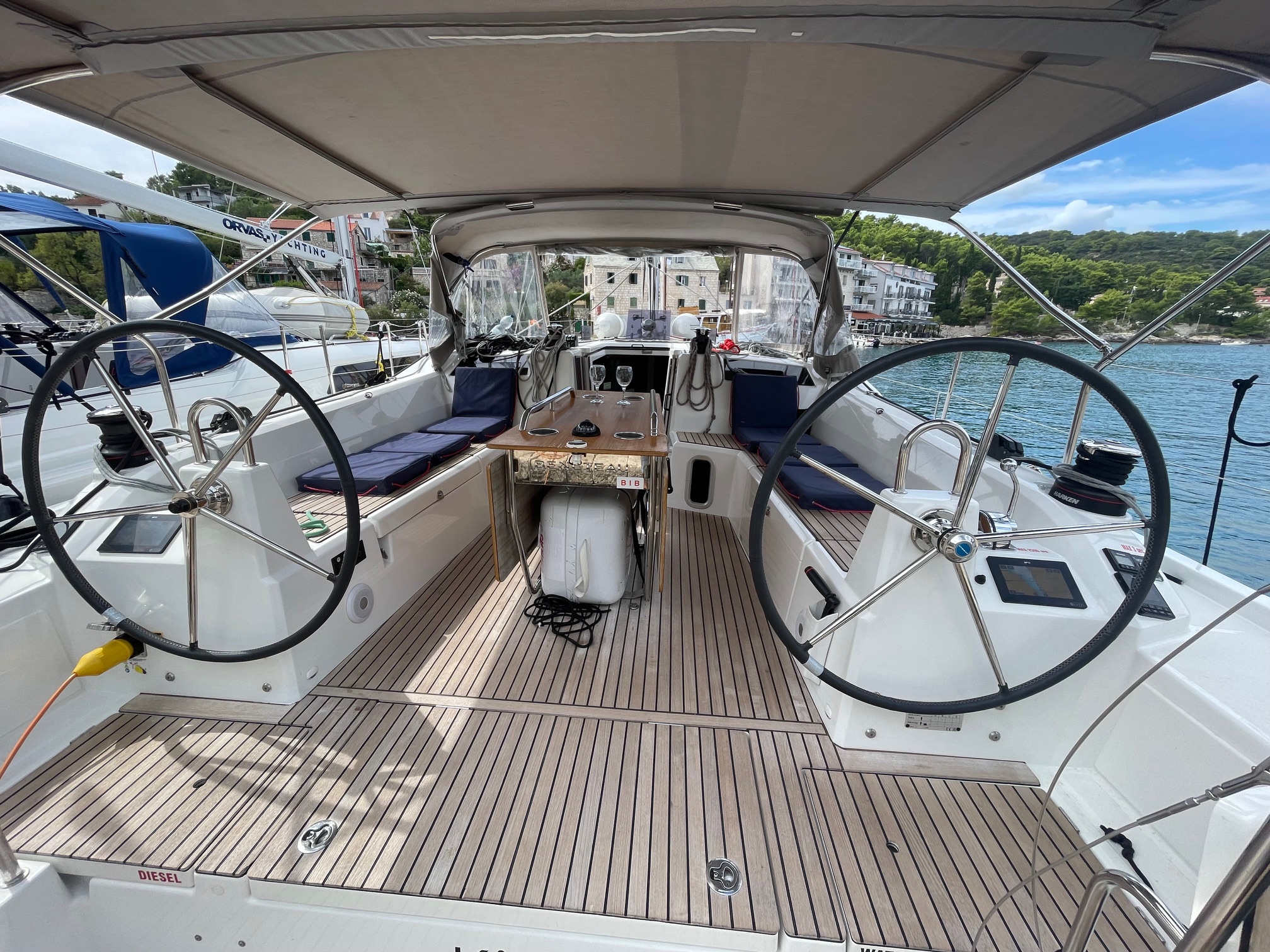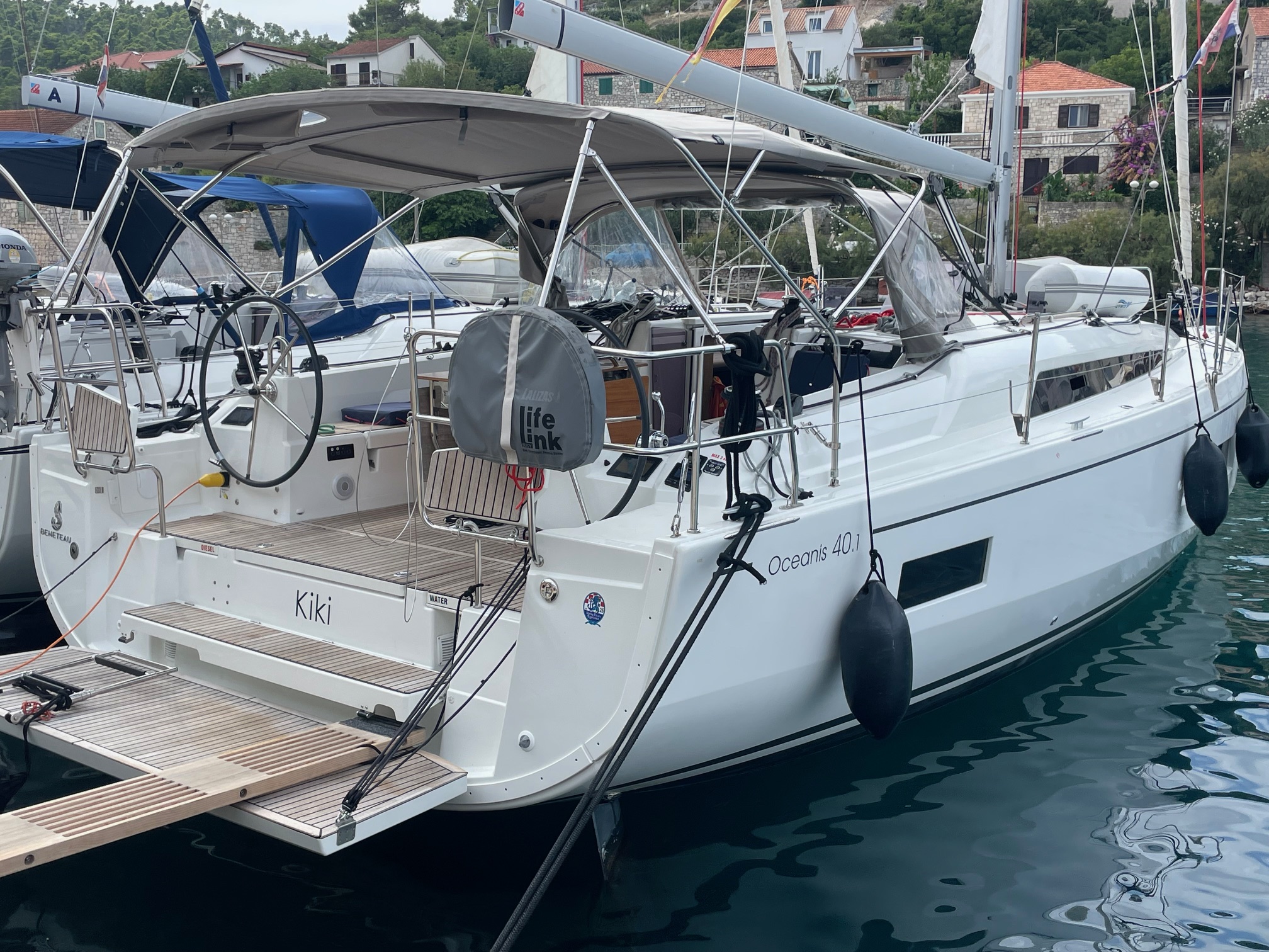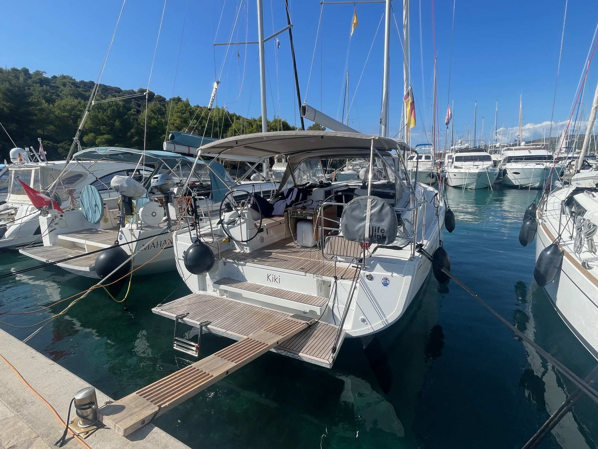 | Safety | AIS receiver, Anchor light, Automatic life jackets, Autopilot, Sailor's knife, Bosun's chair, First aid kit, Tools, Bowthruster, Electr. bilge pump, Fire extinguisher, Lifebelts, Engine spare parts , Navigational lights, Fog horn, Emergency tiller, Distress signals, Radar reflector, Life raft, Torchlight, VHF Radio |
