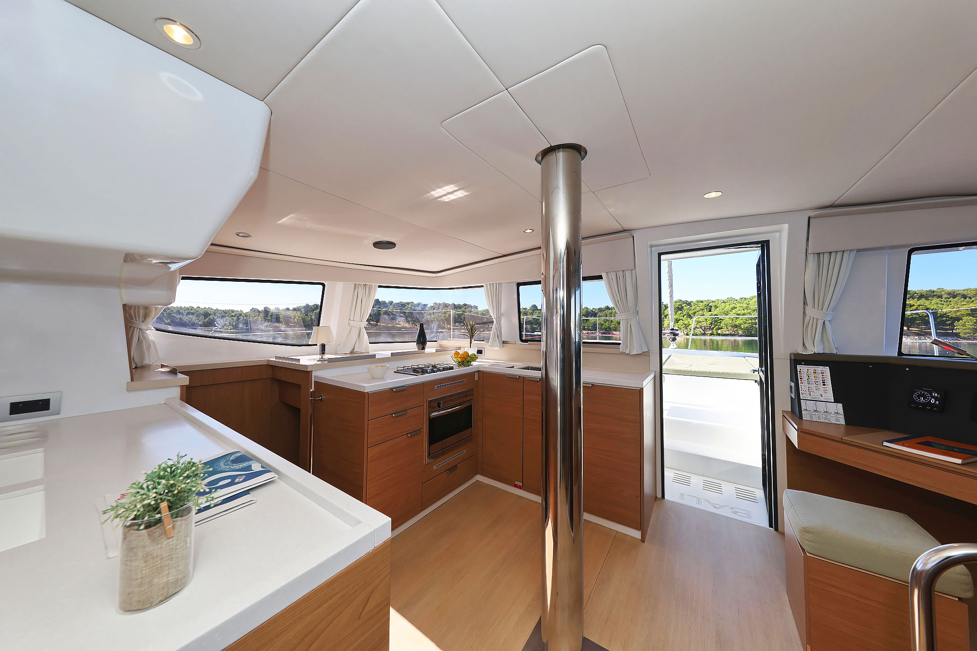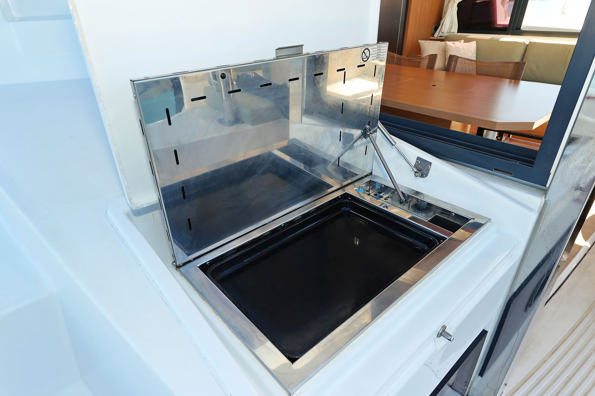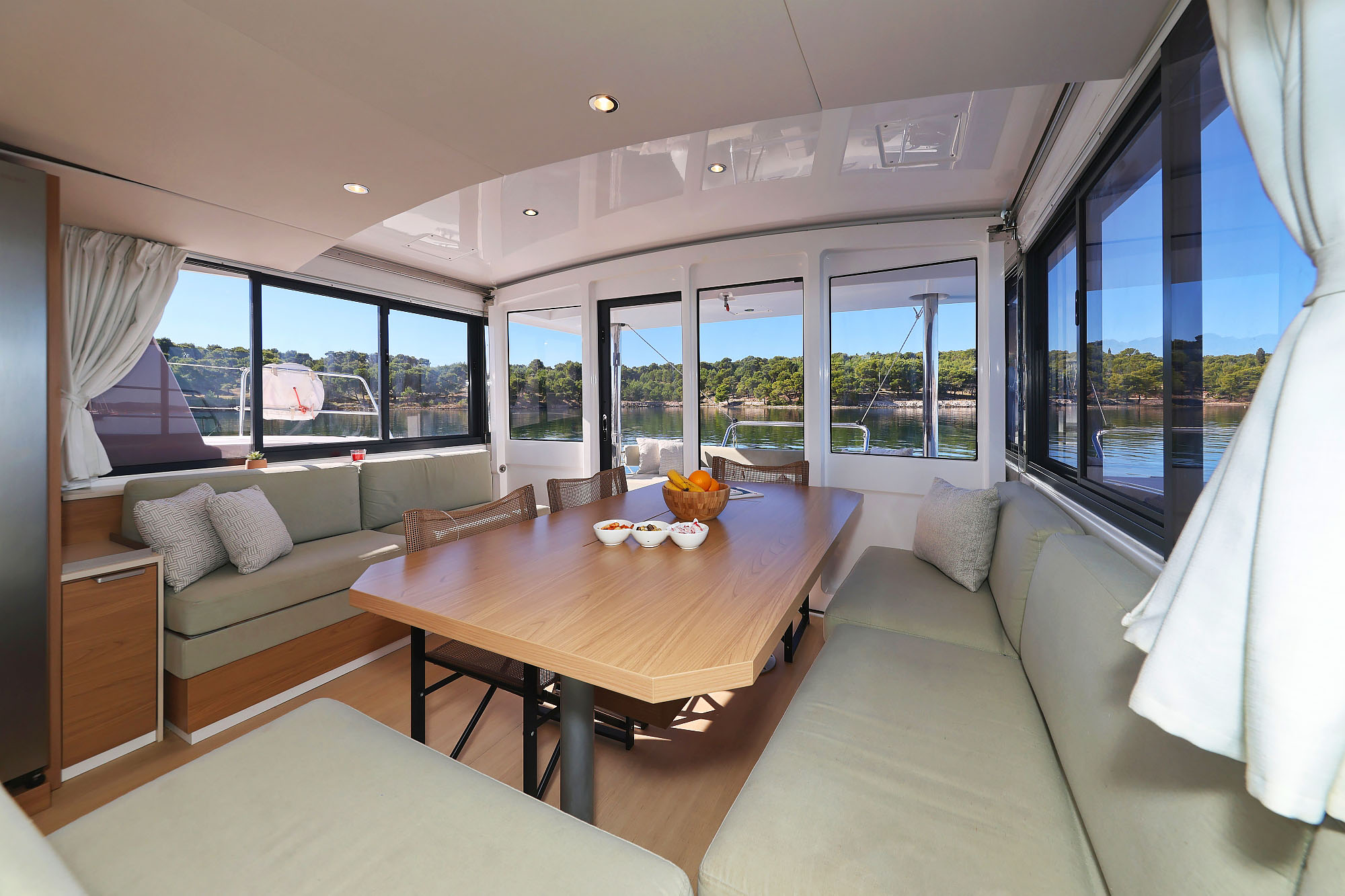 | Inside | Fusion sound system , Gas stove with oven, Freezer, Generator, Heating, Inverter 12V/220V, Airconditioning (independent from shore power), Refrigerator, Pantry equipment |