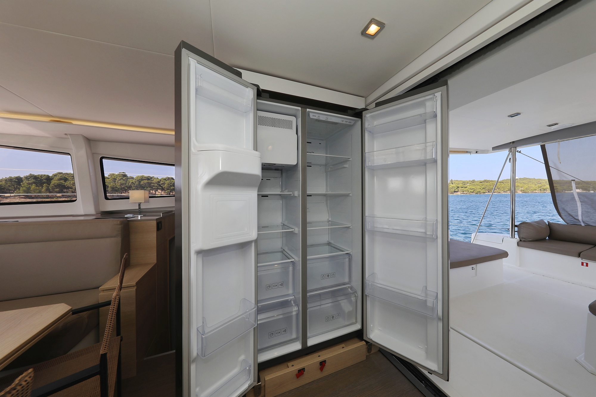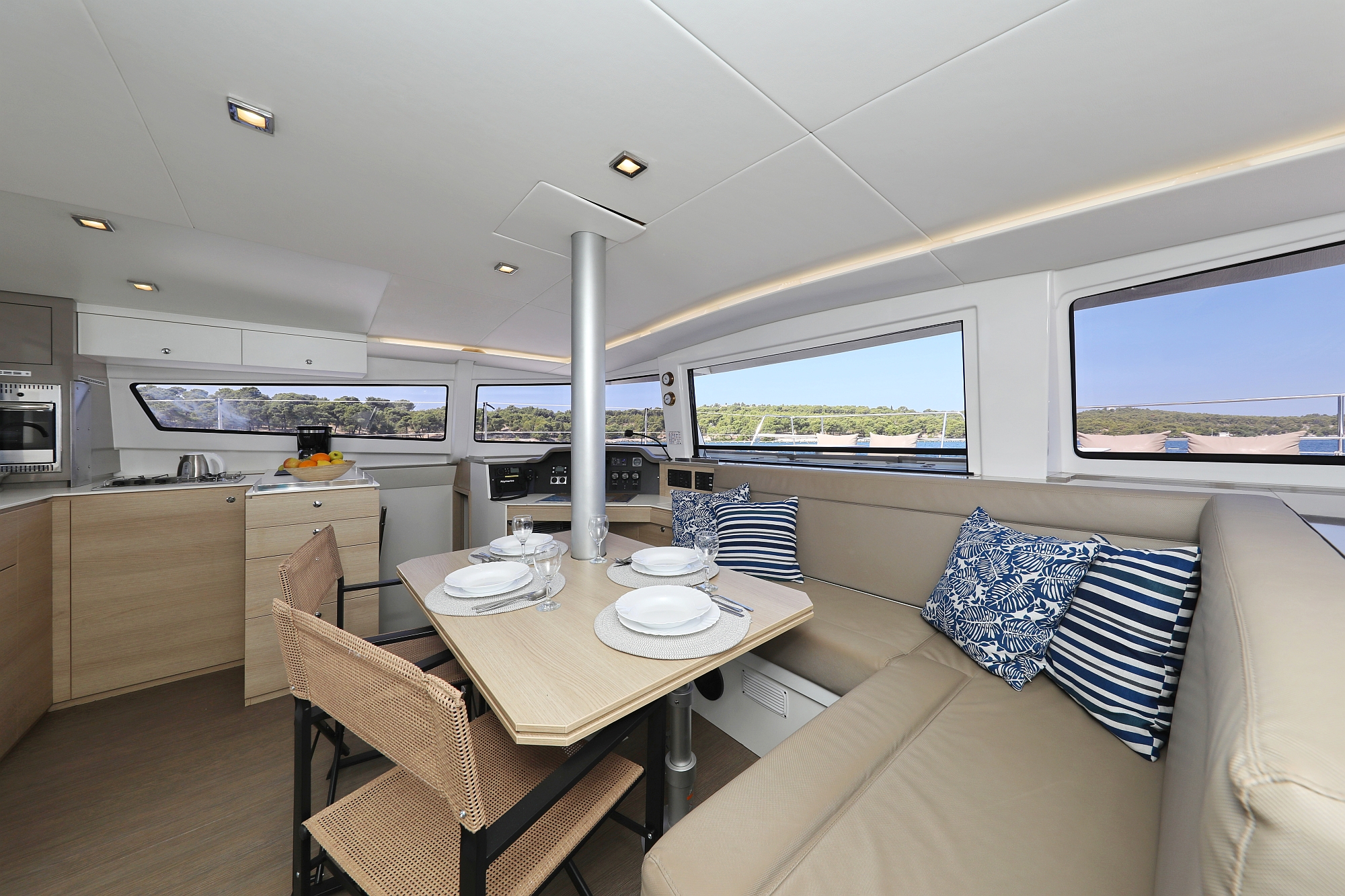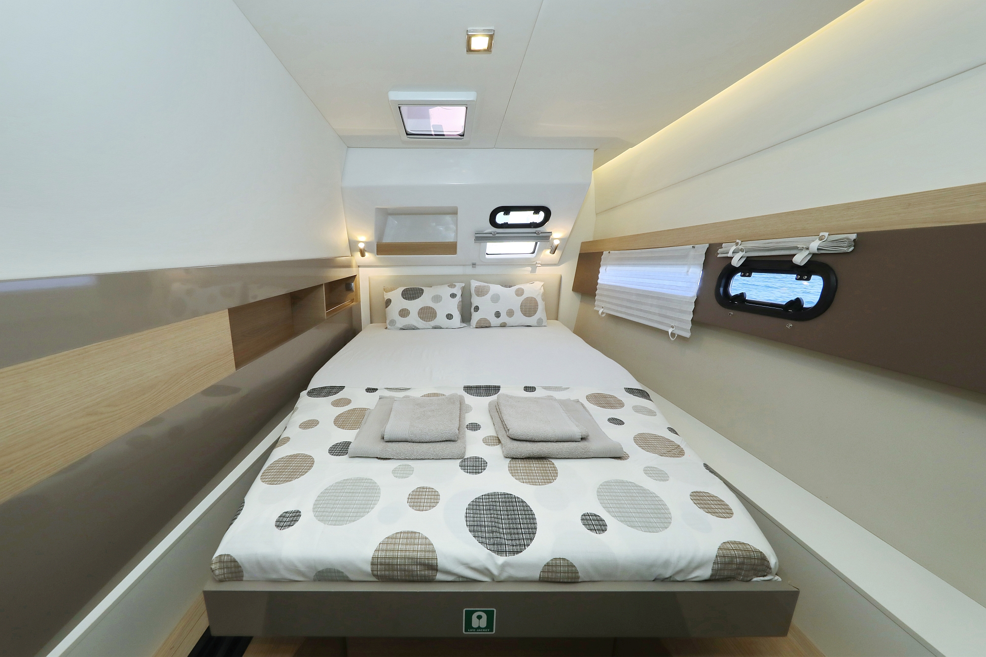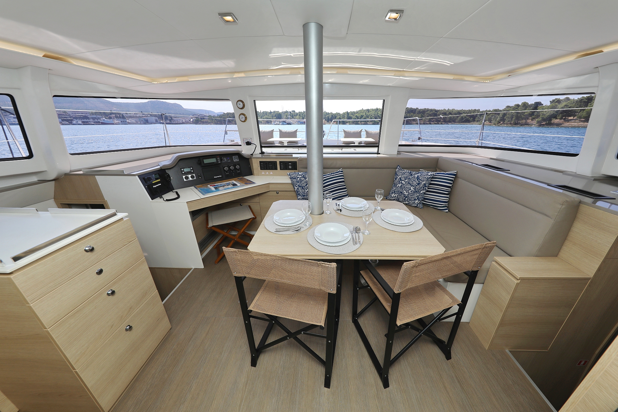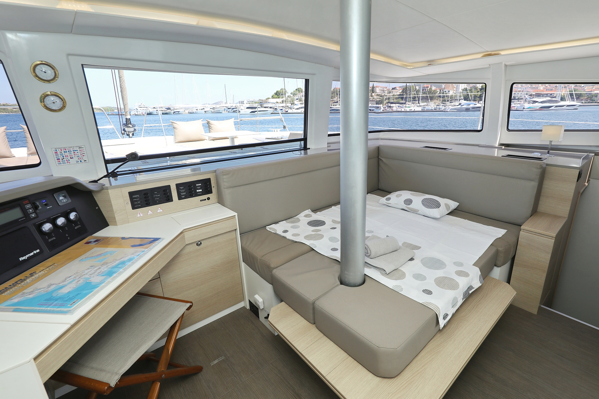| Safety | Autopilot, Lightning buoy, First aid kit, Solid life vests, Fire extinguisher, Lifebelts, Dan Buoy, Distress signals, Life raft, Floating line, Second anchor |