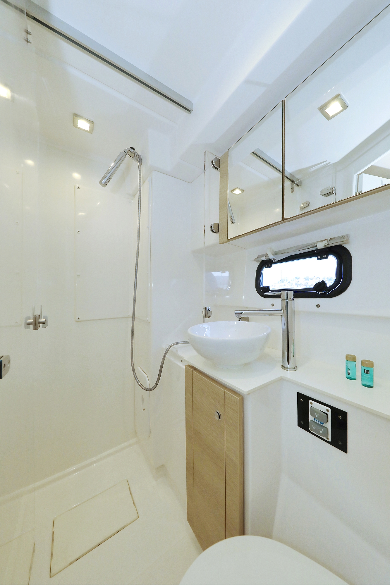 | Outside | 220V shore connection, Anchor with chain, Bimini top, Cockpit shower, Cockpit canopy, Electr. anchor windlass, BBQ, Solar panels |