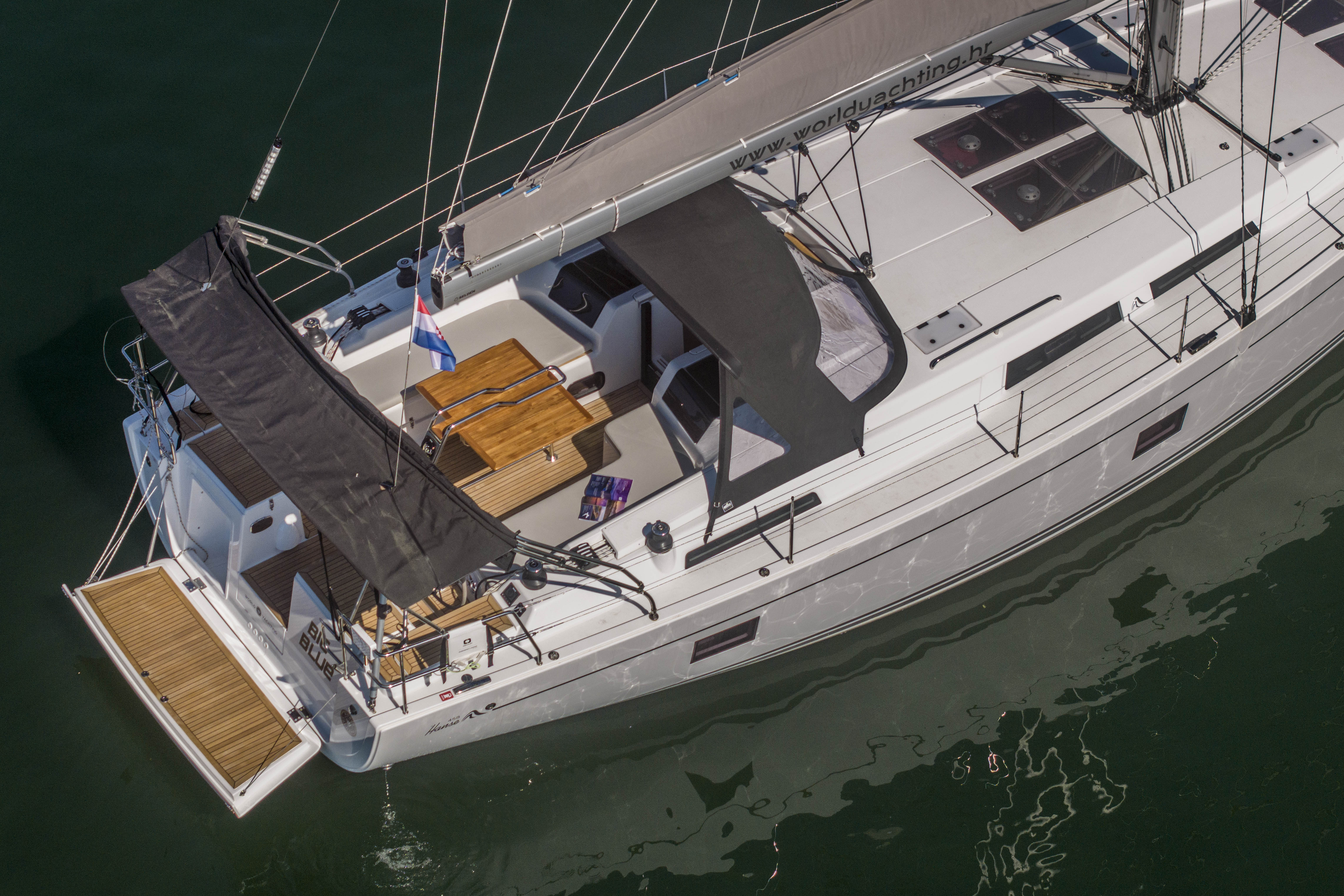 | Outside | Bimini top, Cockpit shower, Cockpit speakers, Cockpit table, Electr. anchor windlass, Sprayhood, Teak in cockpit |