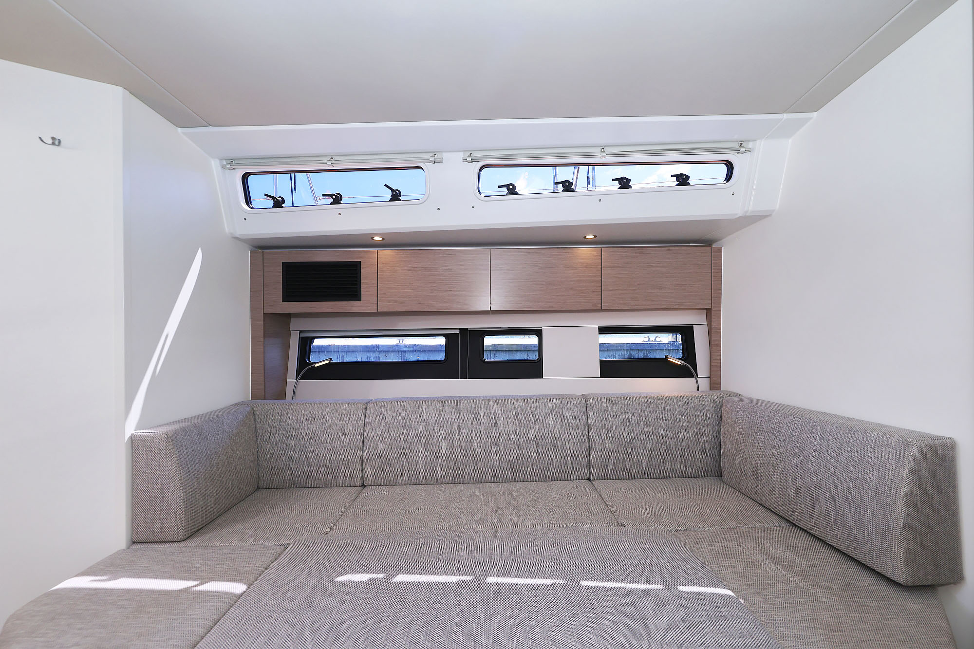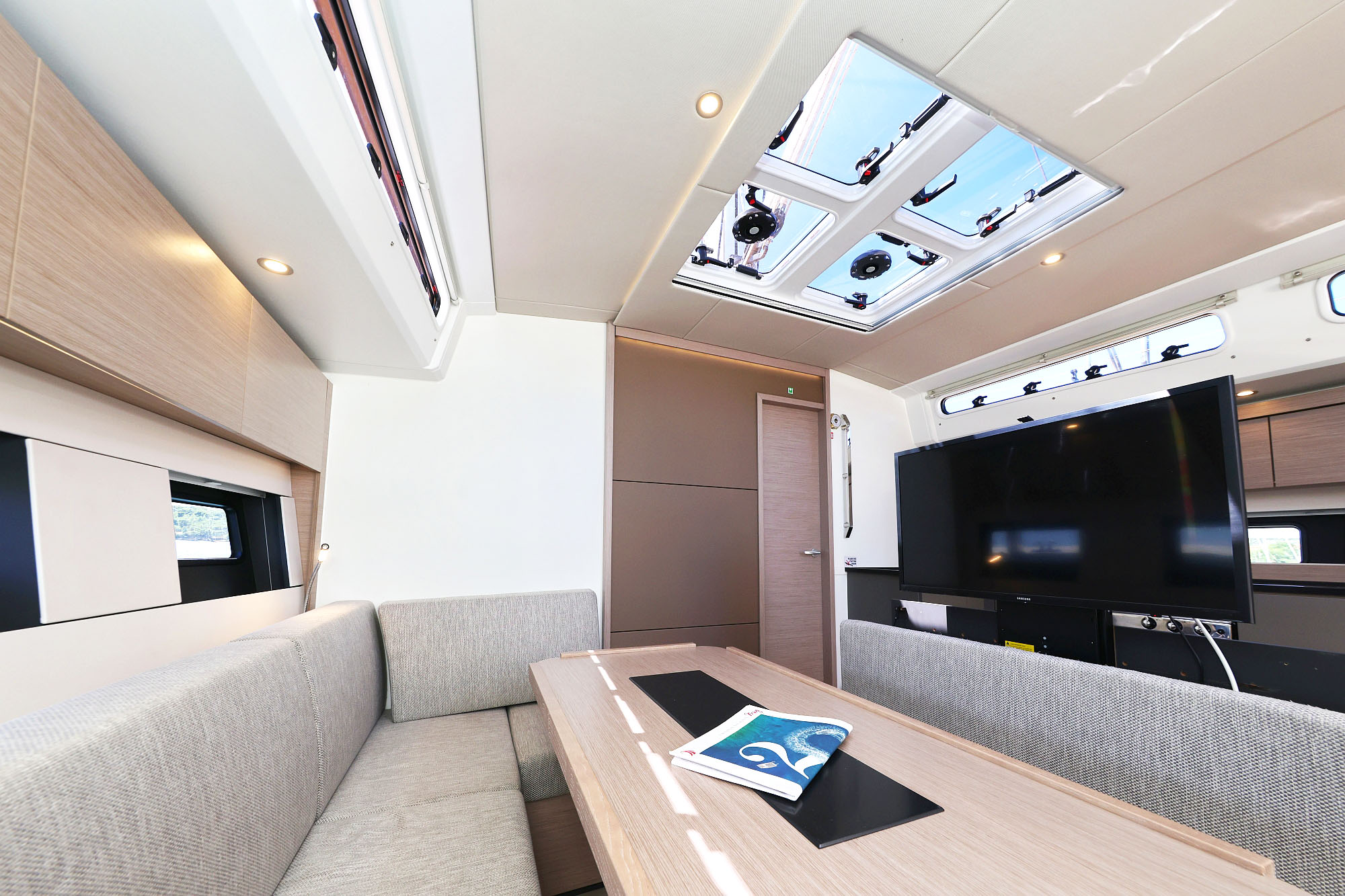| Outside | Electrical swimming platform, Cockpit shower, Refrigerator in cockpit, Cockpit speakers, Cockpit cushions, Cockpit table, Deck cushions, Electr. main sail winch, BBQ, Hardtop, Sprayhood, Teak in cockpit, Teak deck, Wet bar |