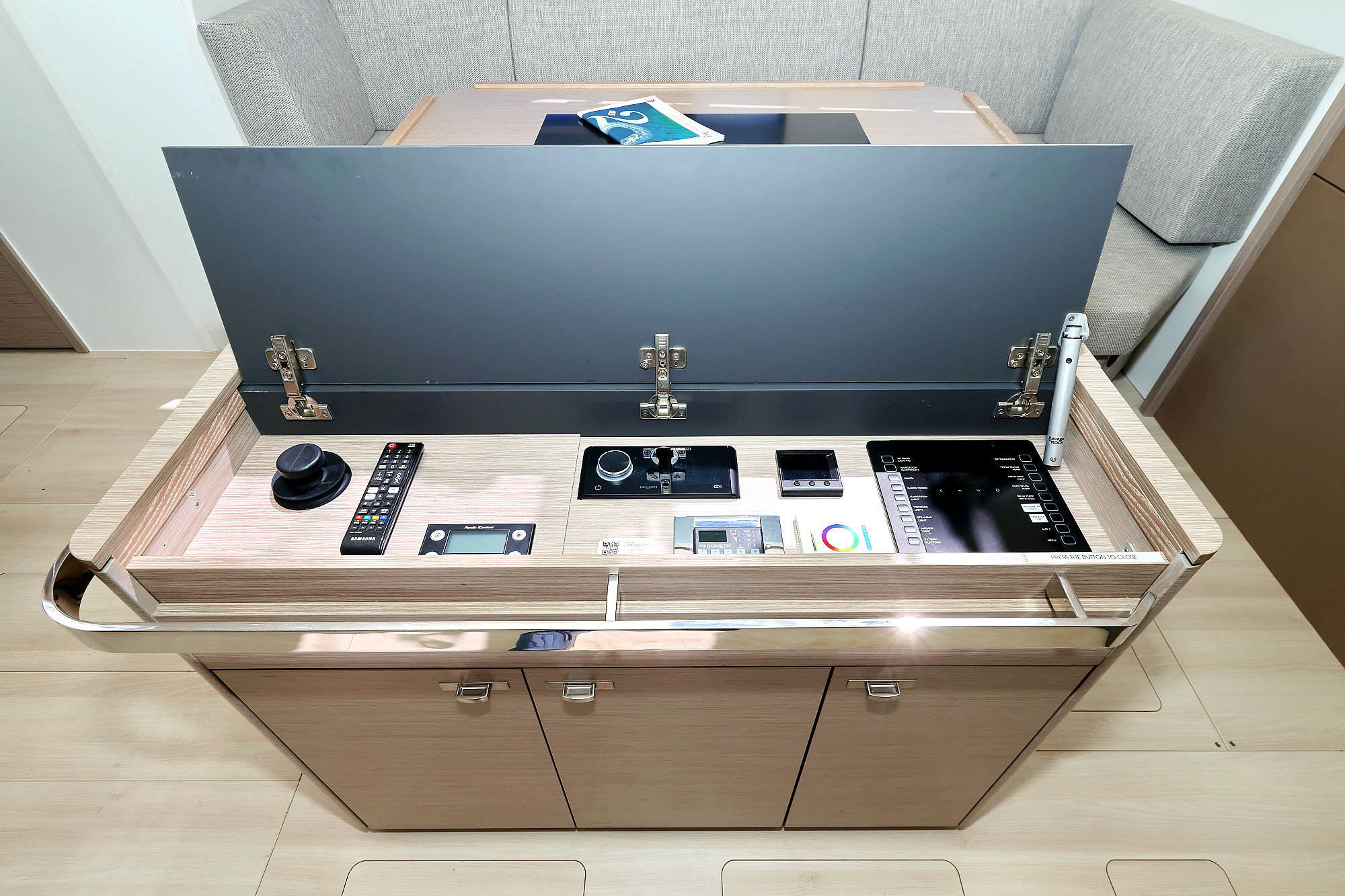 | Inside | Gas stove with oven, Freezer, Generator, Heating, Inverter 12V/220V, Airconditioning (independent from shore power), Refrigerator, Battery charger, Pantry equipment, Radio with CD player, TV, Warm water, WC (electr.) |