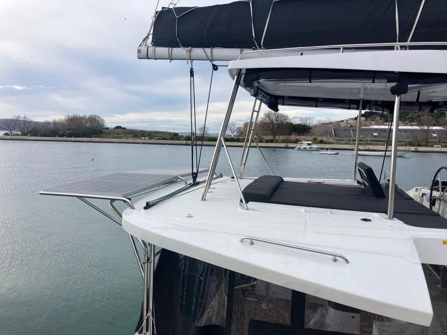 | Outside | 220V shore connection, Bathing ladder, Cockpit shower, Cockpit speakers, Cockpit cushions, Cockpit table, Davits, Electr. anchor windlass, electr. winch, Solar panels, Teak in cockpit |