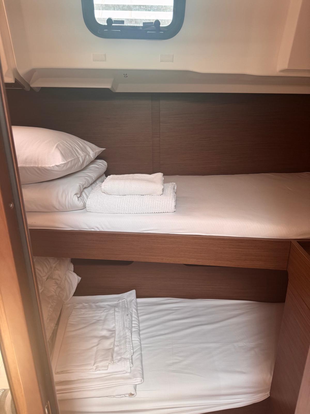 | Safety | Autopilot, First aid kit, Bowthruster, Solid life vests, Fire axe, Fire extinguisher, Lifebelts, Distress signals, VHF Radio, VHF Radio with DSC |