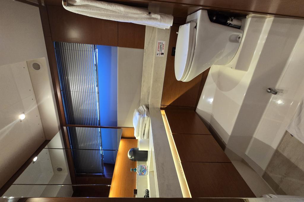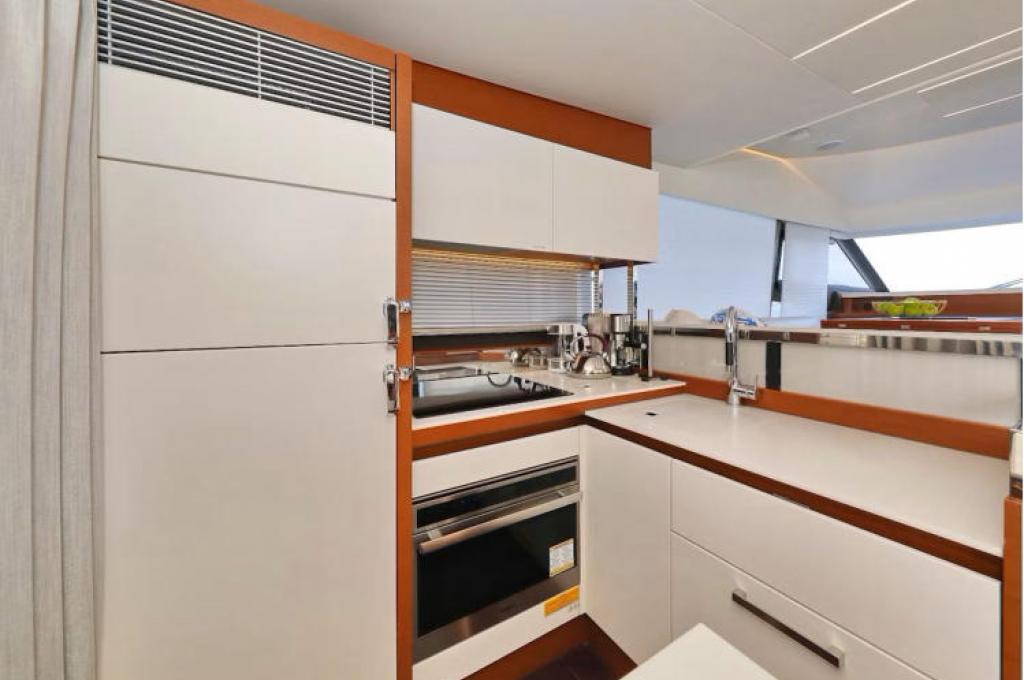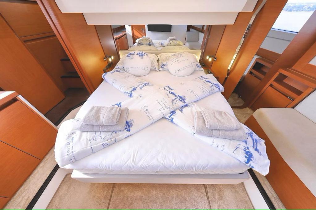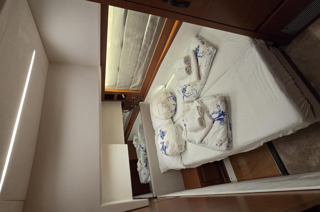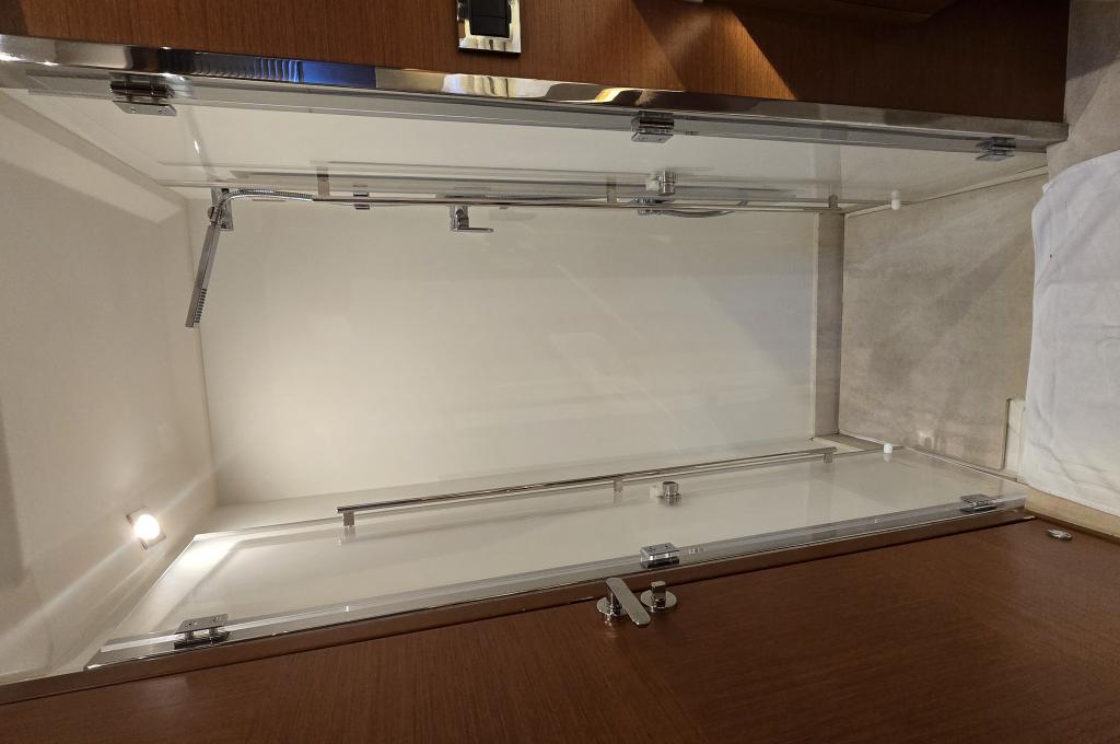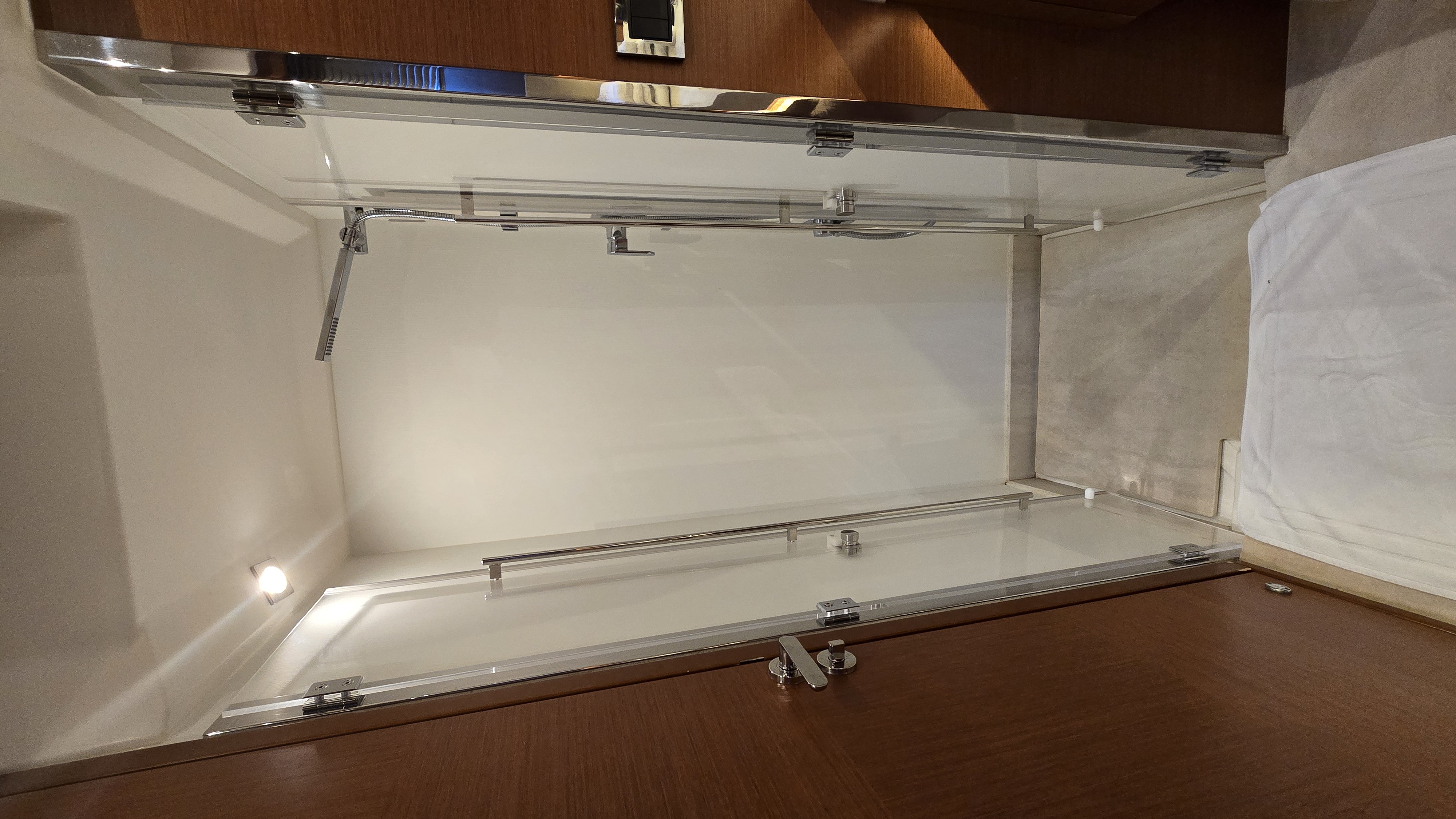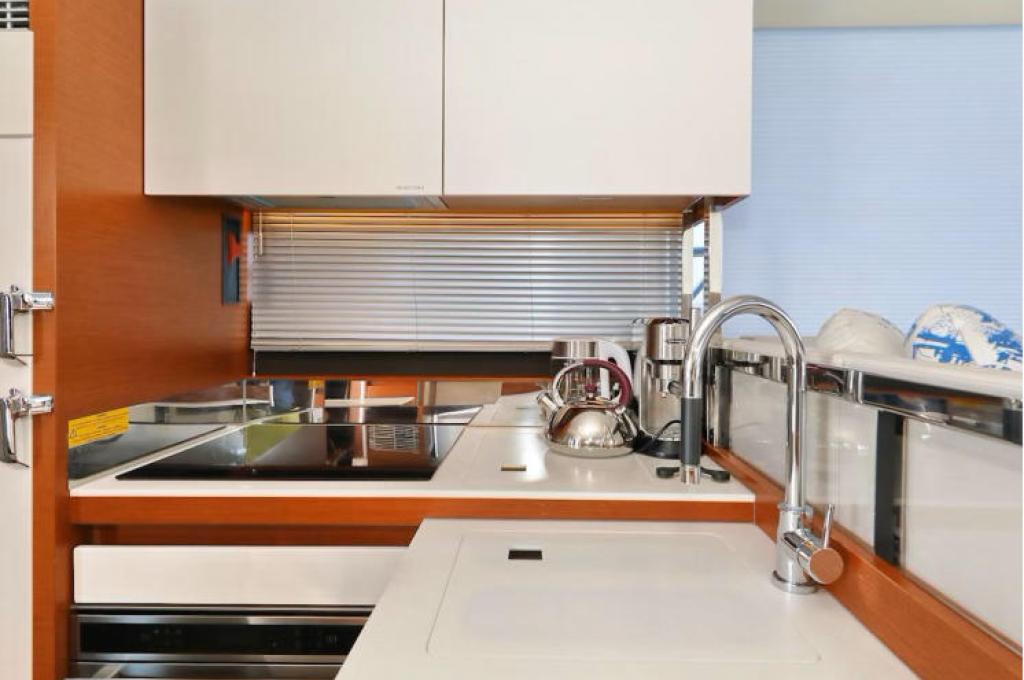 | Inside | Black water tank, Gas oven, Freezer, Generator, Dishwasher, Heating, Inverter 12V/220V, Coffee machine, Airconditioning (independent from shore power), Speakers in saloon, Microwave oven, Radio with bluetooth, Convertible salon table, Carpet, Dryer, TV, Warm water, Washing machine, Watermaker |