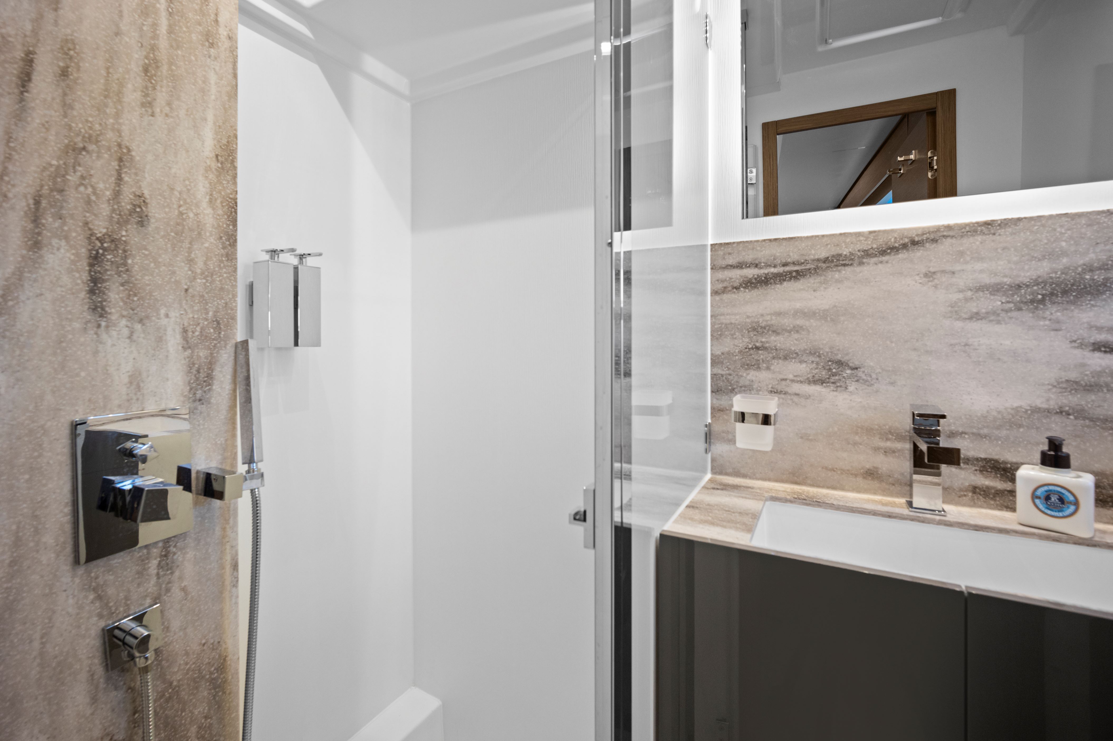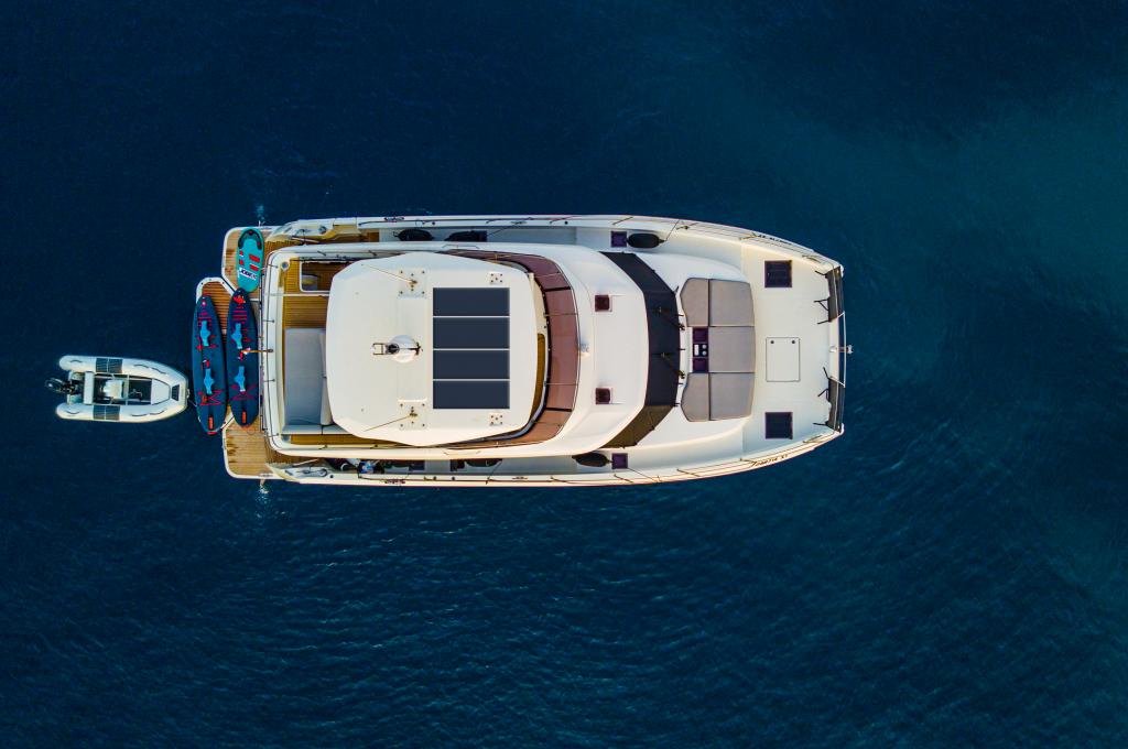 | Inside | Ice cube machine, Generator, Dishwasher, Inverter 12V/220V, Airconditioning (independent from shore power), Shore power cable, Speakers in saloon, Freshwater treatment plant, TV, Washing machine |