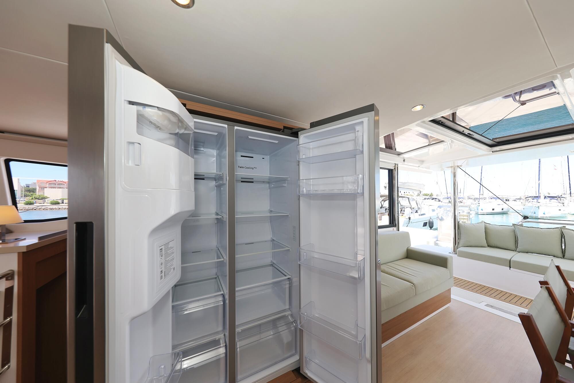 | Inside | Oven, Gas oven, Freezer, Generator, Heating, Inverter 12V/220V, Coffee machine, Airconditioning (independent from shore power), Refrigerator, Battery charger, Microwave oven, Pantry equipment, Radio with CD player, Radio with MP3, Convertible salon table, TV, fans in cabins, Warm water, WC (electr.) |