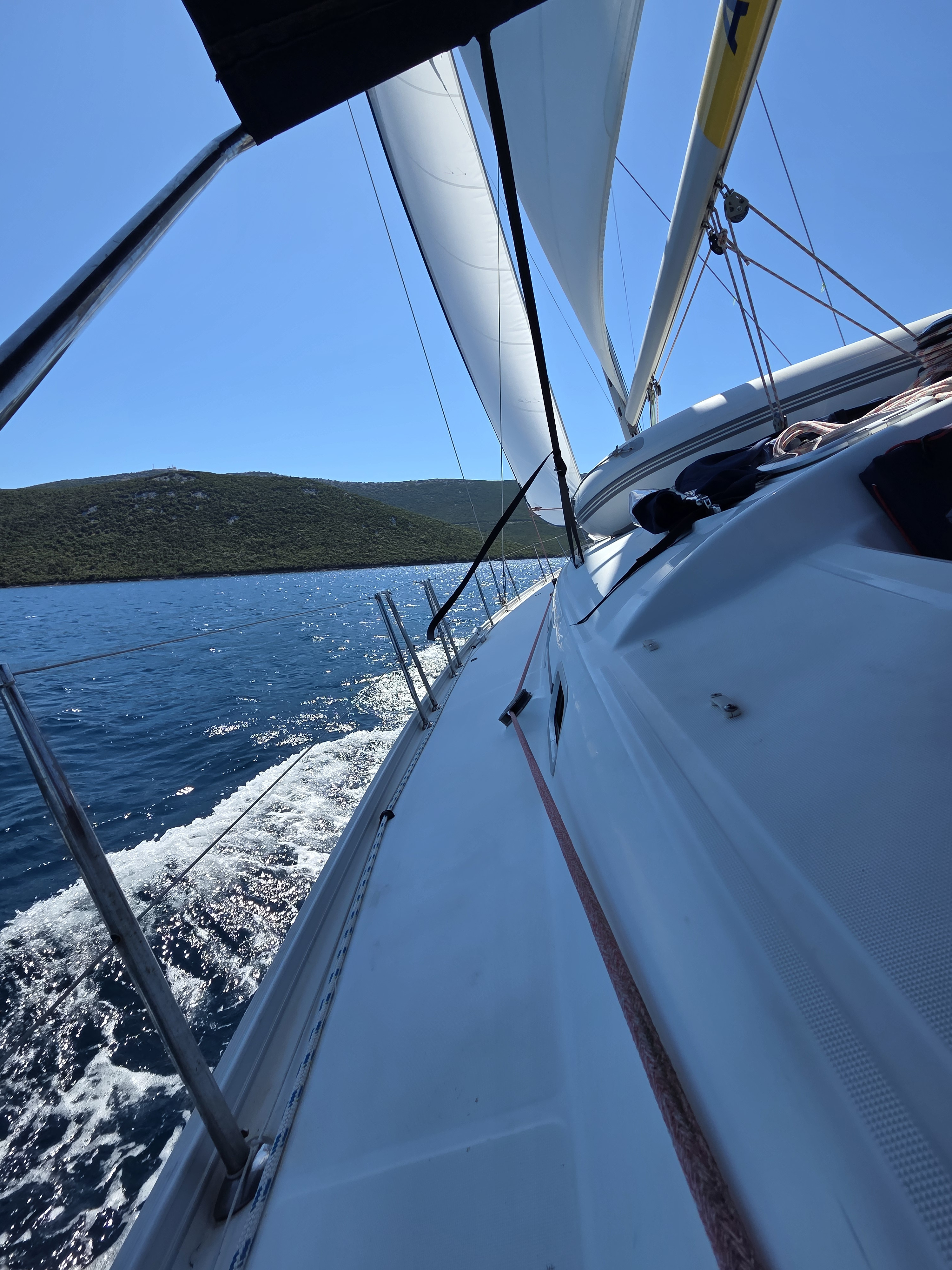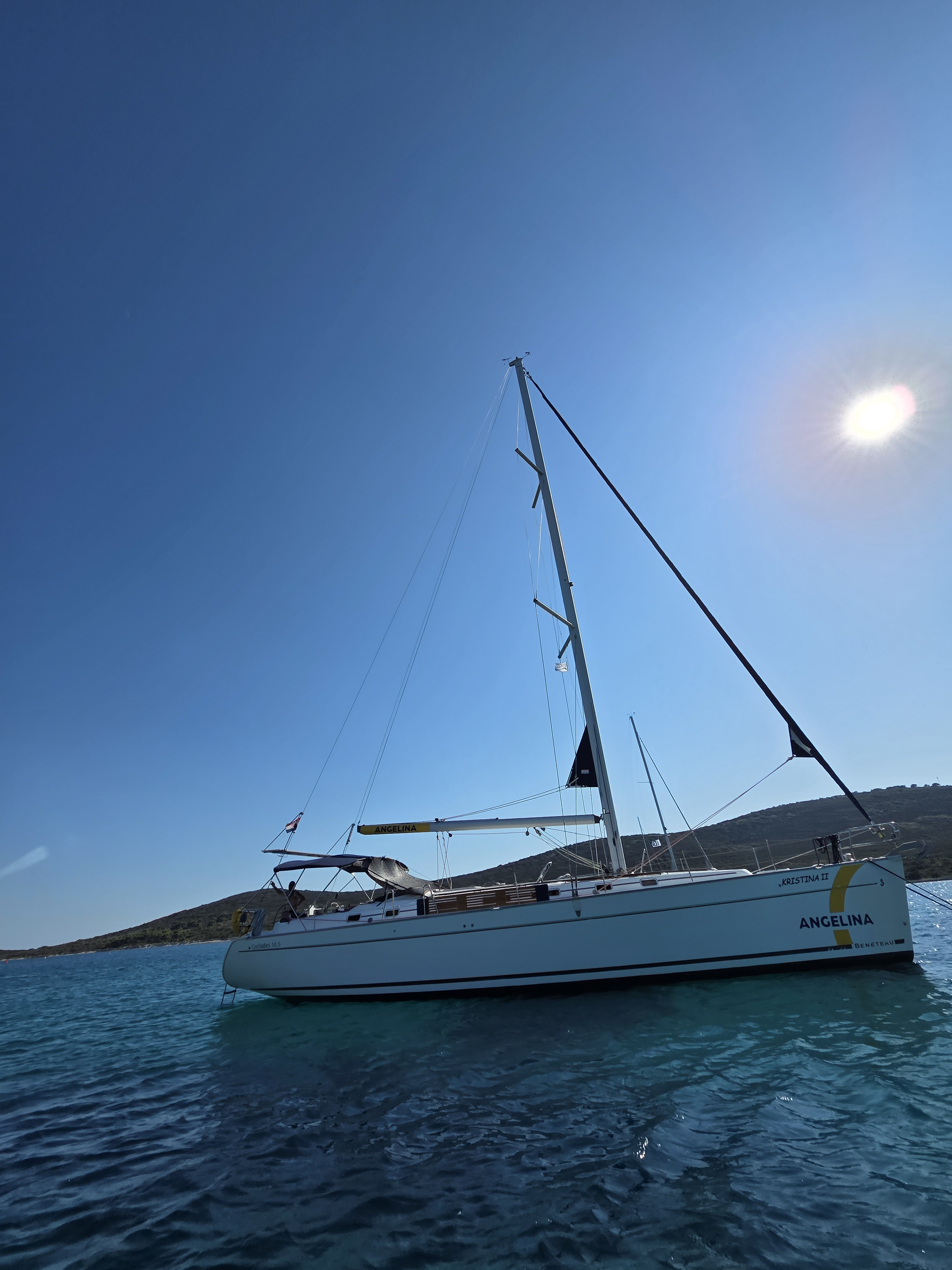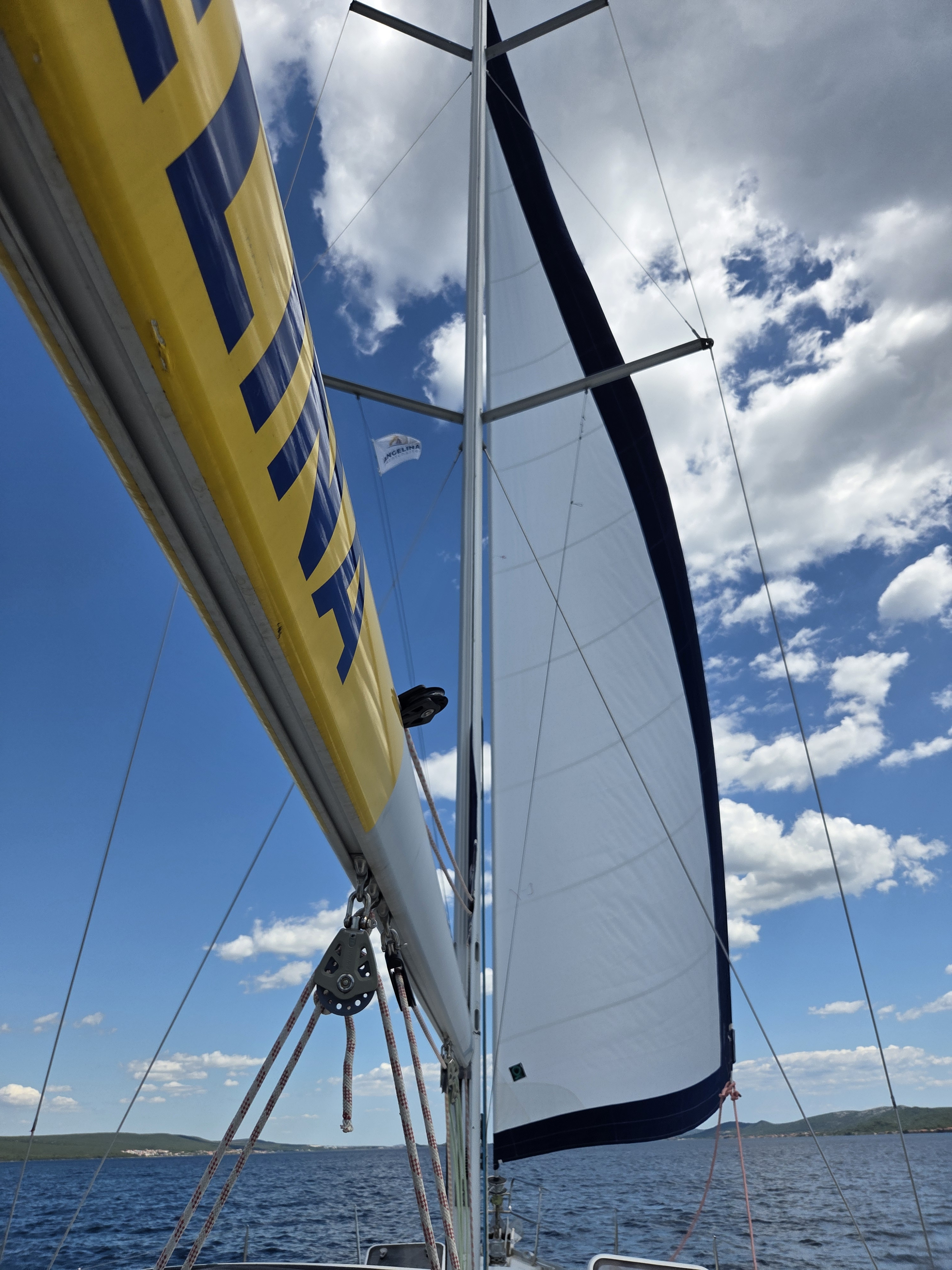 Die Yacht hat unmittlebar nach unserem Törn ein neues Hauptsegel erhalten. Das Angelina-Team in Sukosan war supernett. Das Boot ist sehr geräumig, trockenste und sauberste Bilge ever. Lediglich ein paar winzige Kleinigkeiten wie üblich, aber alles in allem sehr sehr gut.