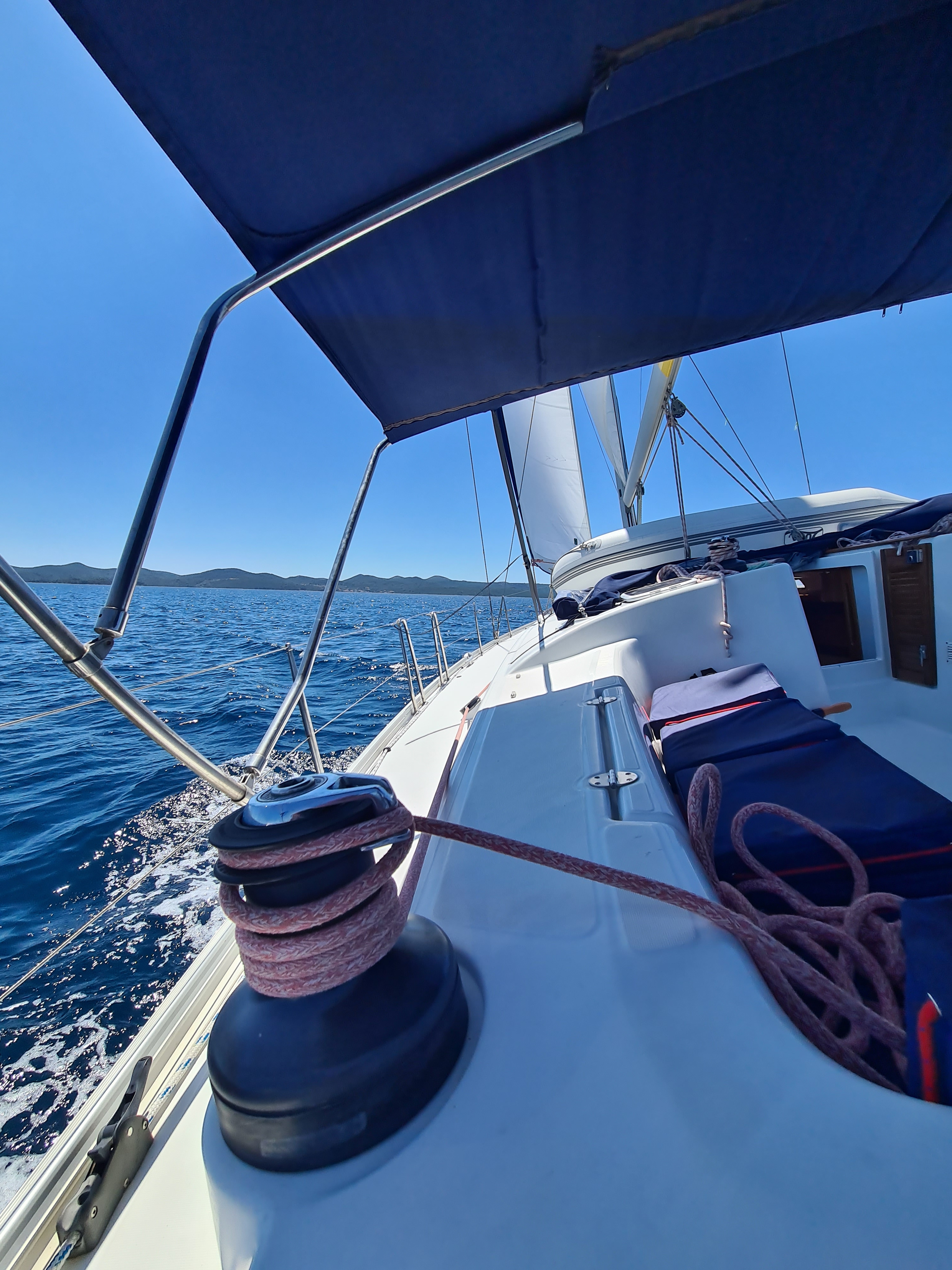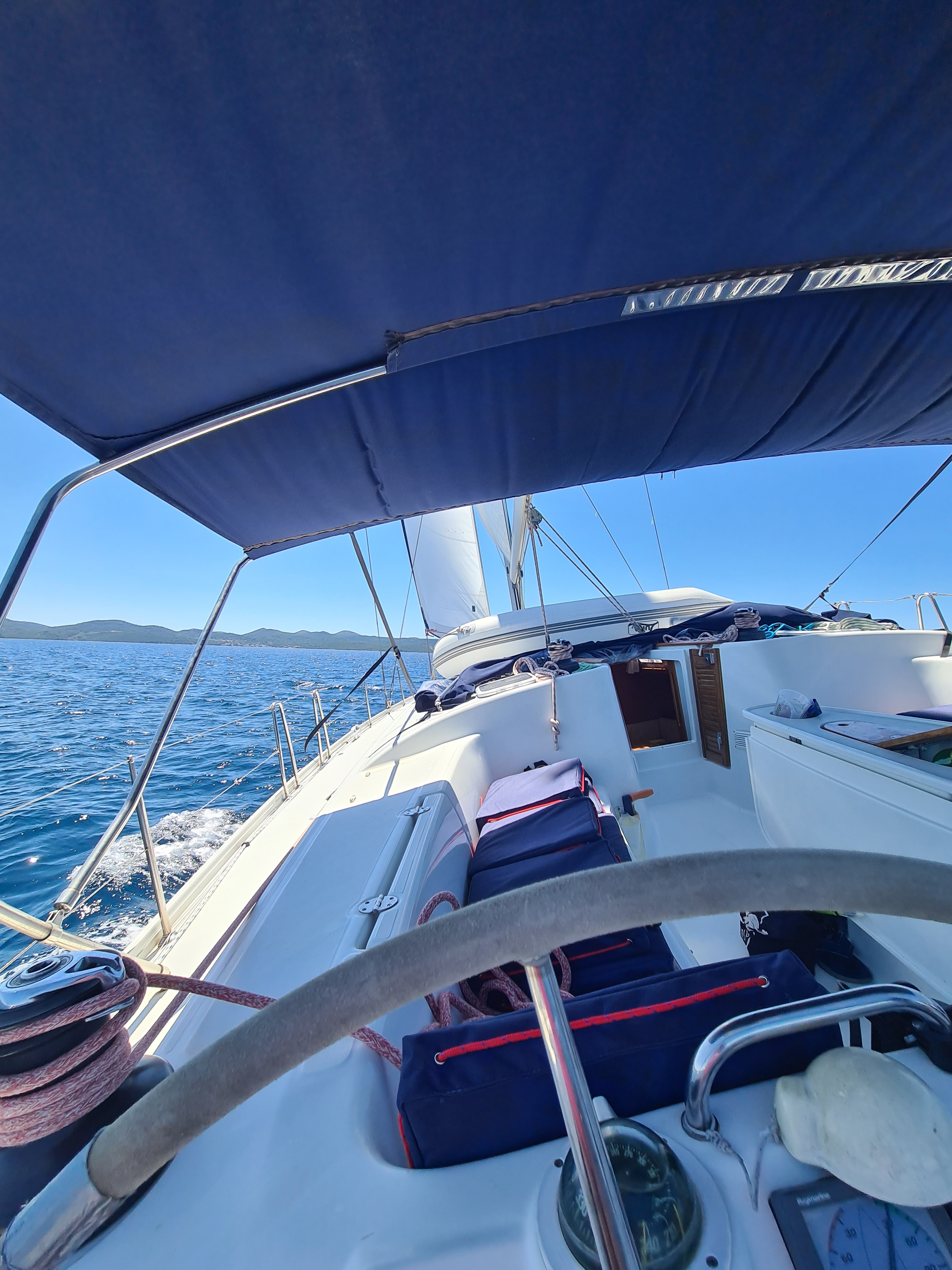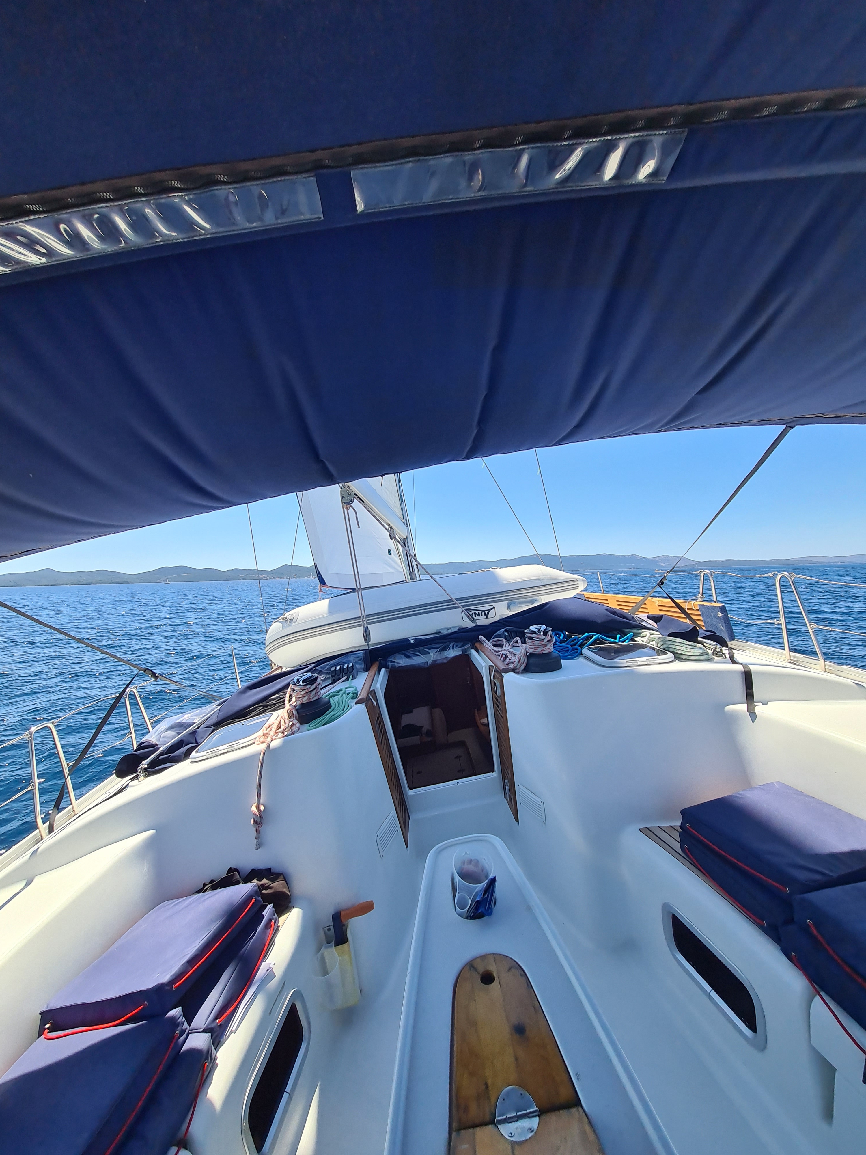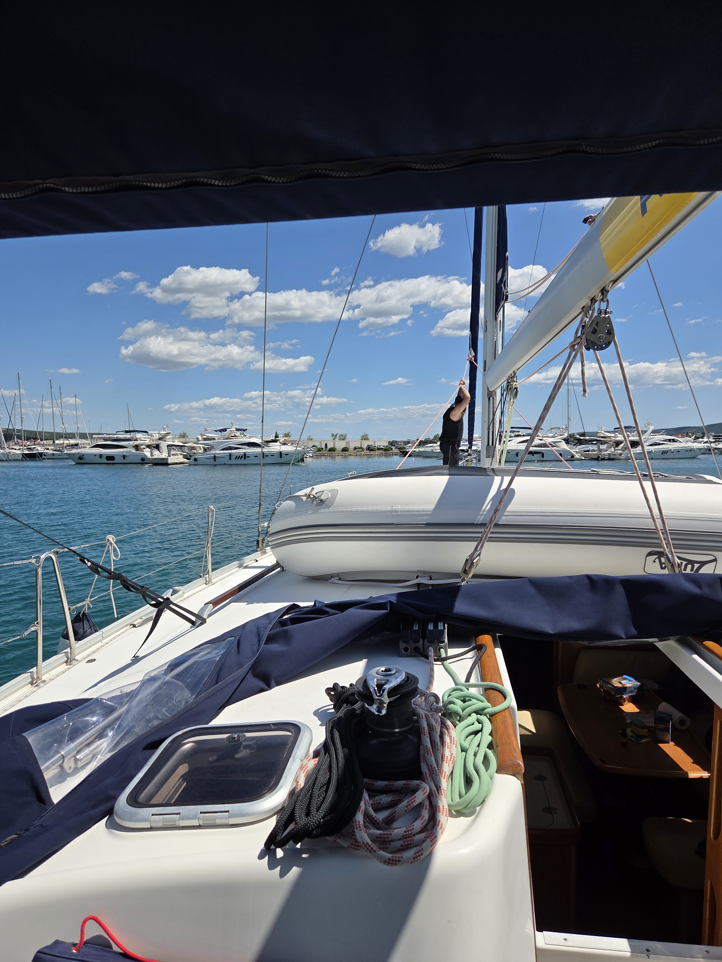 Die Yacht hat unmittlebar nach unserem Törn ein neues Hauptsegel erhalten. Das Angelina-Team in Sukosan war supernett. Das Boot ist sehr geräumig, trockenste und sauberste Bilge ever. Lediglich ein paar winzige Kleinigkeiten wie üblich, aber alles in allem sehr sehr gut.