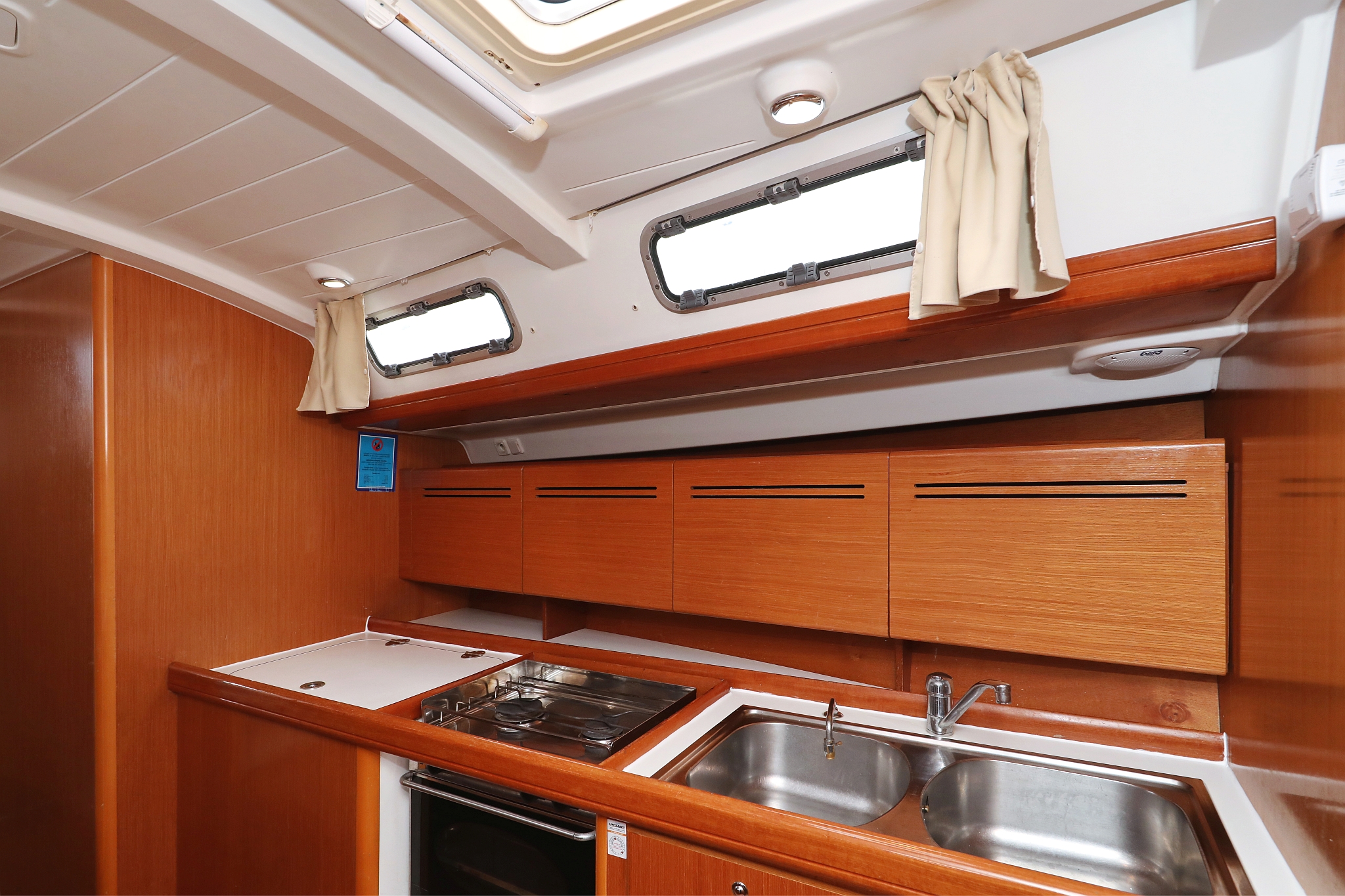 Das Boot war bis auf ein paar Kleinigkeiten (Füllstandssensoren der Tanks, hierauf wurde aber vorher hingewiesen) in technisch gutem Zustand. Verdeck, Dinghy, Batterien und einige Leinen nagelneu. Sehr gute Ankerwinde - easy zu manövieren - kein unnötiger Schnickschnack. Sehr viel Stauraum an Bord.