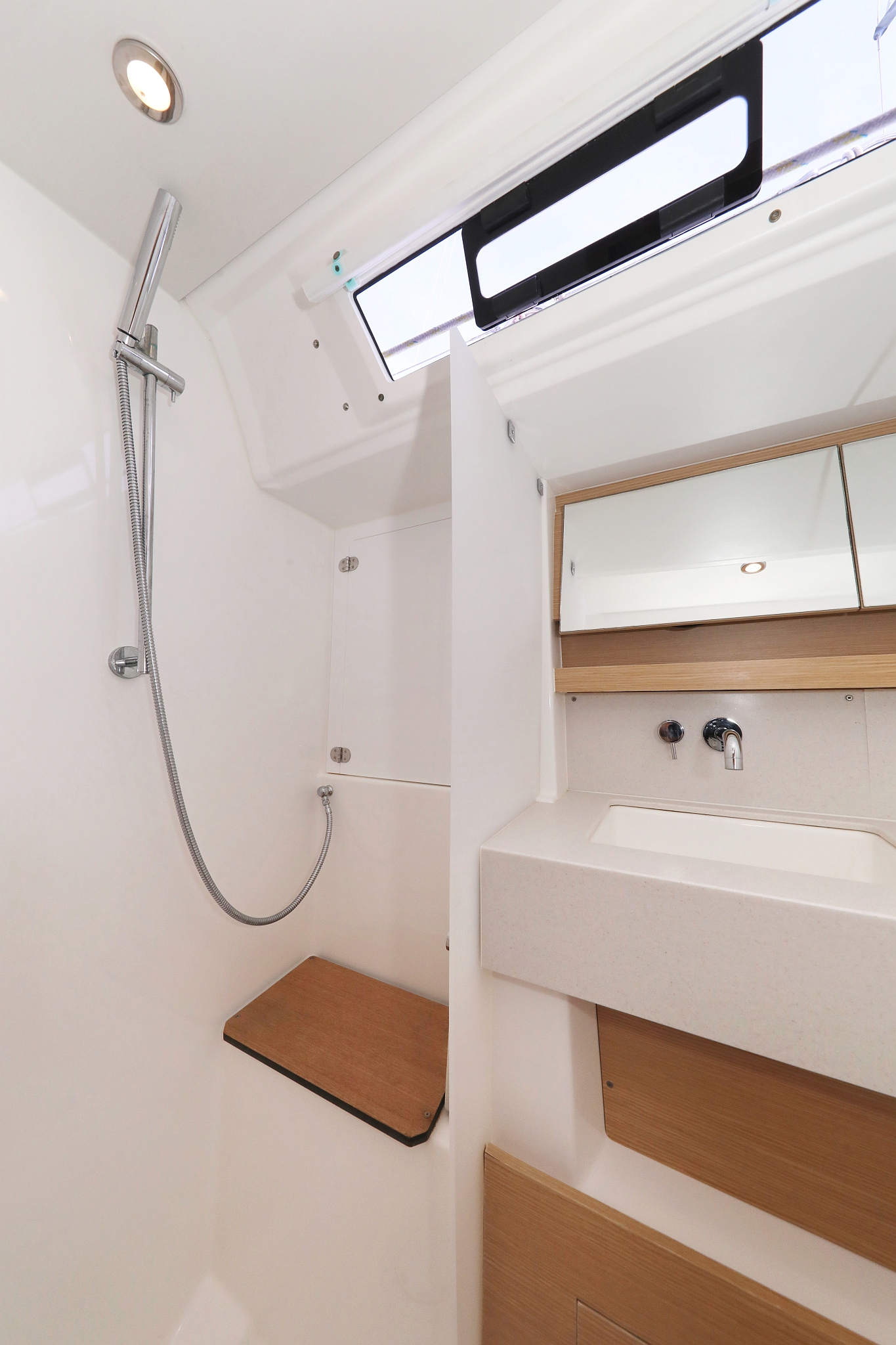 | Outside | 220V shore connection, Anchor with chain, Bathing platform, Bimini top, Boat hook, Cockpit shower hot/cold, Cockpit speakers, Cockpit cushions, Cockpit table, Electr. anchor windlass, Fender, Mooring lines, Gangway, BBQ, Sprayhood, Water hose, Winches |