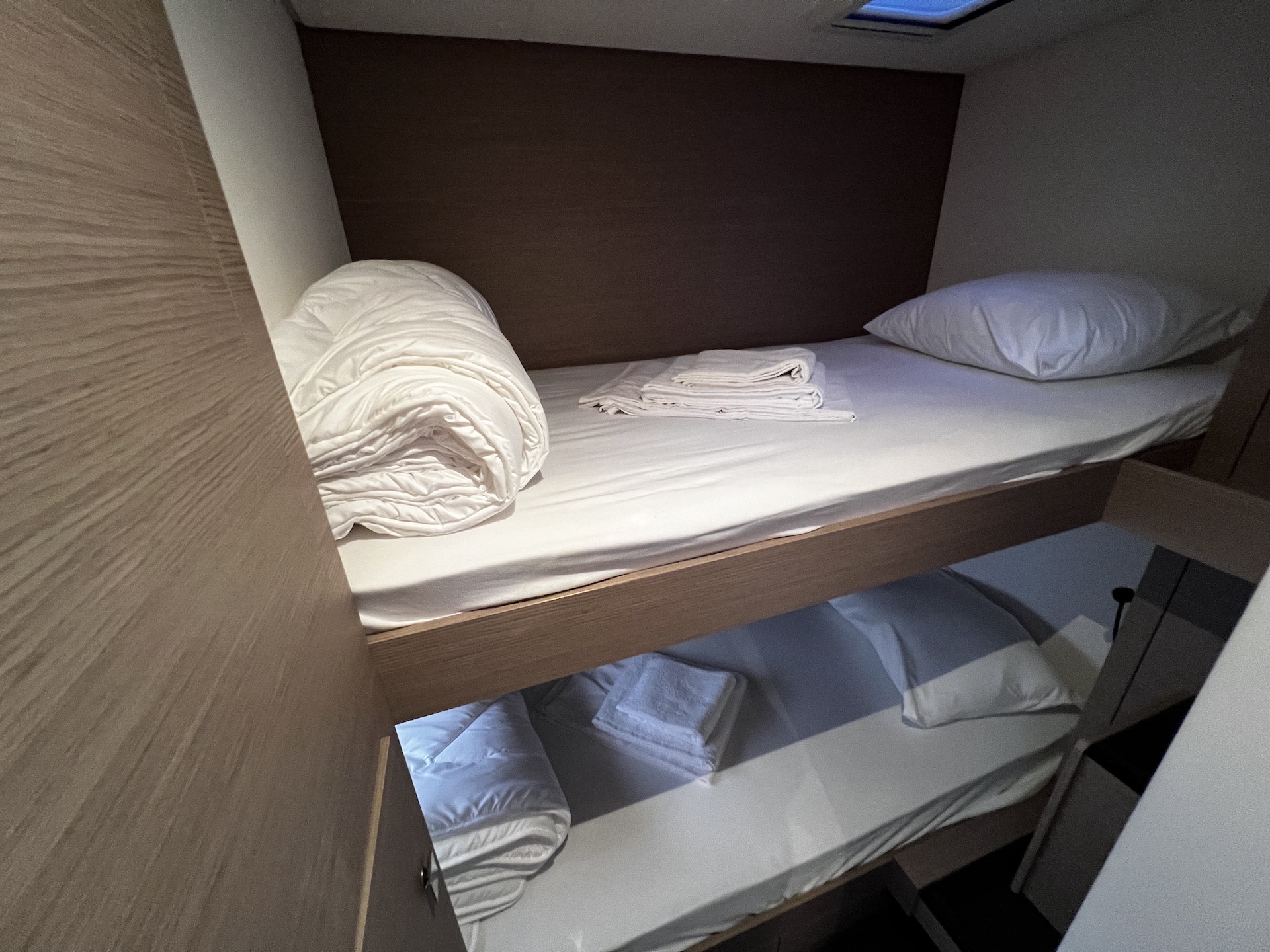 | Inside | Ice cube machine, Espresso machine, Gas stove with oven, Generator, Inverter 12V/220V, Coffee machine, Dock A/C 220V (cool&heat), Refrigerator, Radio with USB and Bluetooth, Convertible salon table, Warm water, Watermaker, WC (electr.) |