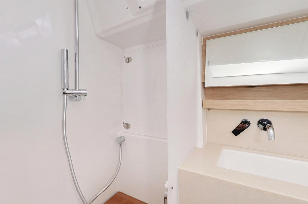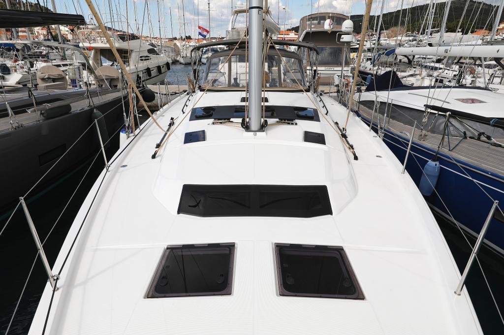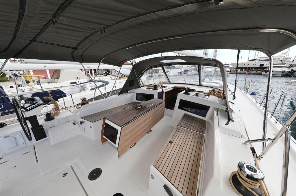 | Outside | 220V shore connection, Anchor with chain, Bathing platform, Bimini top, Boat hook, Cockpit shower, Cockpit speakers, Cockpit cushions, Cockpit table, Electr. anchor windlass, Fender, Mooring lines, Gangway, BBQ, Solar panels, Sprayhood, Teak in cockpit, Water hose, Windex, Winches |