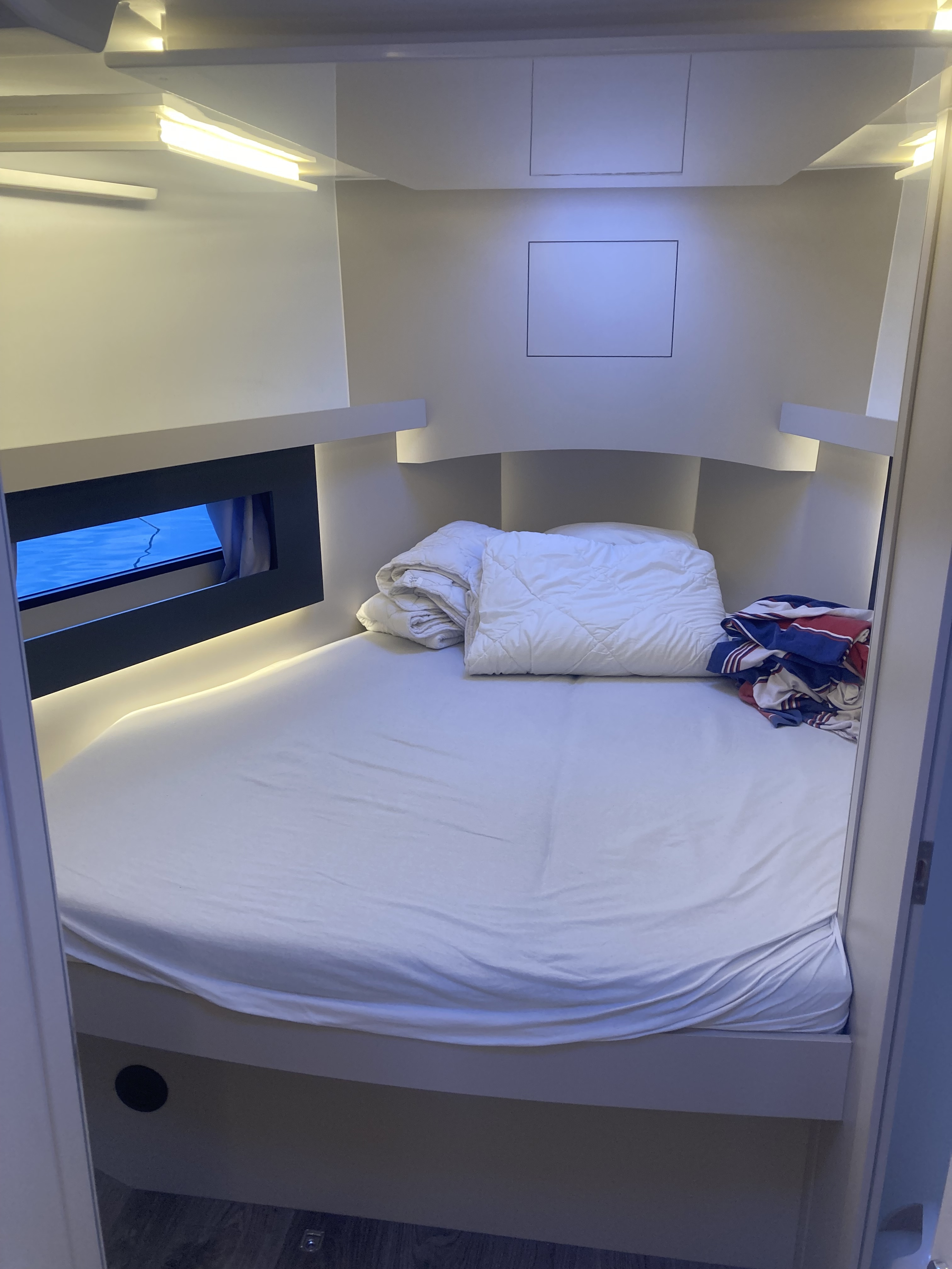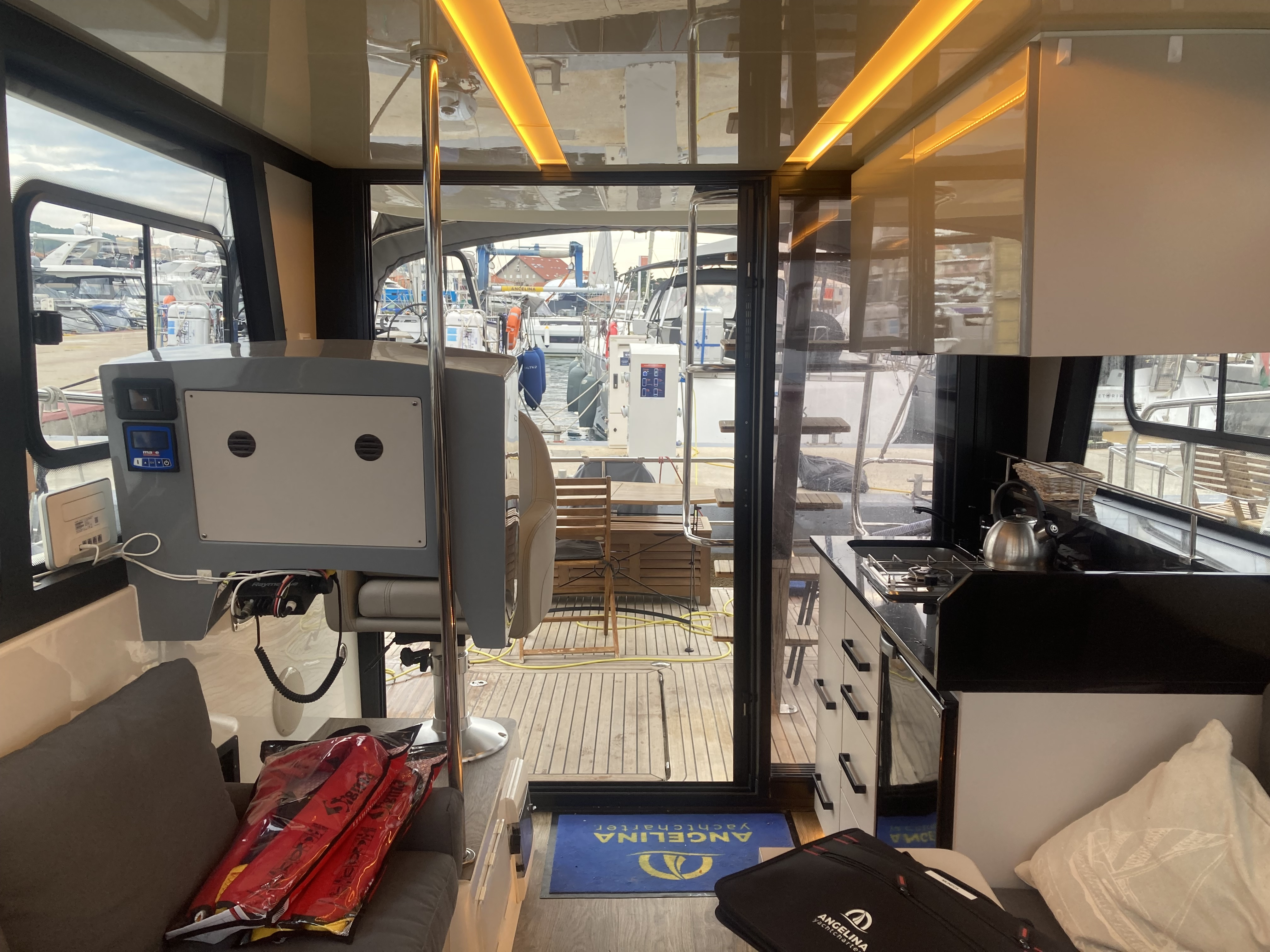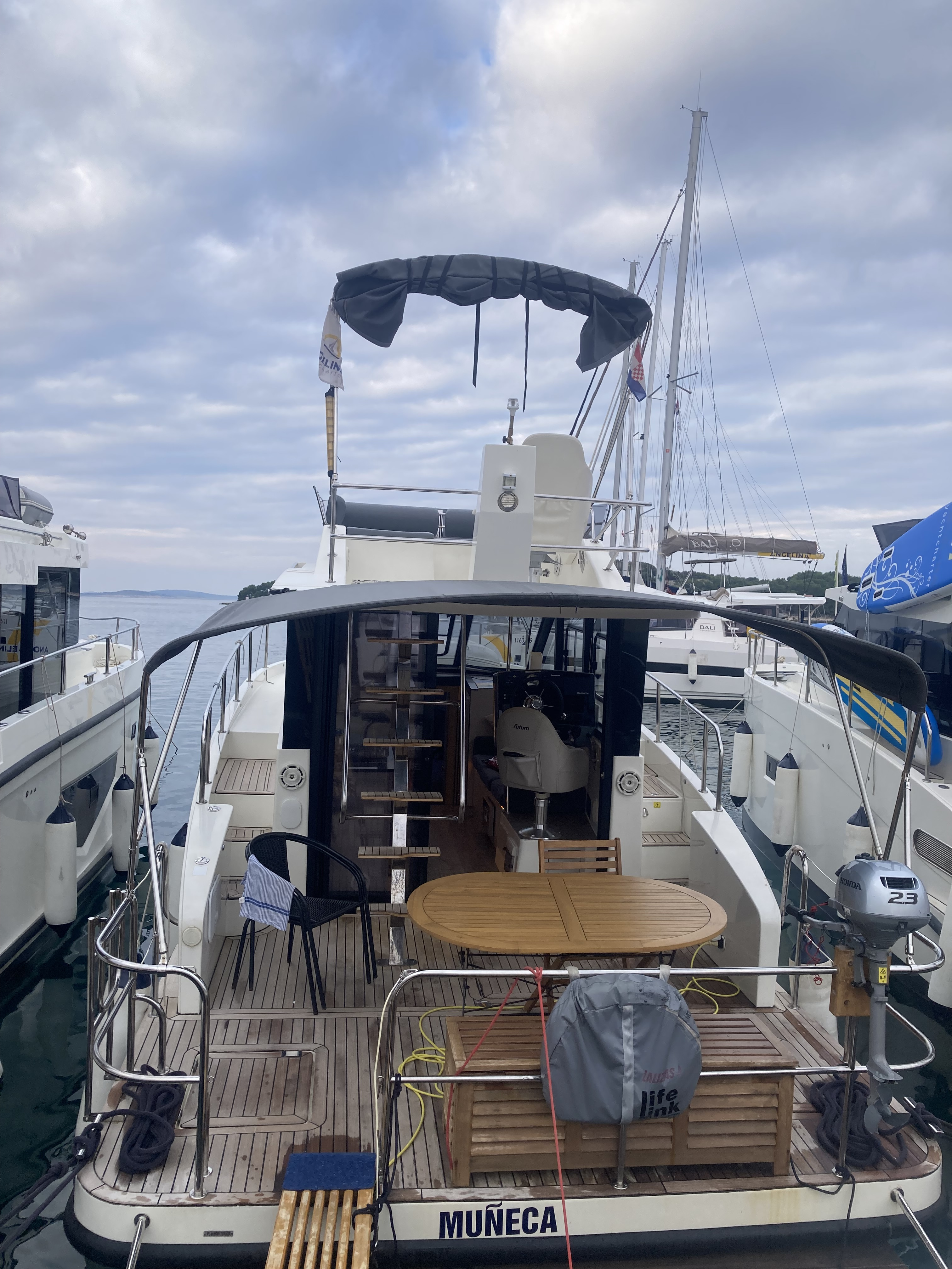 Gefahren ist die Yacht sehr gut. Durch die zusätzliche Badeplattform konnte man jedoch nicht wirklich schnell fahren. 6kn max sonst hätte man die sehr wahrscheinlich abgerissen…