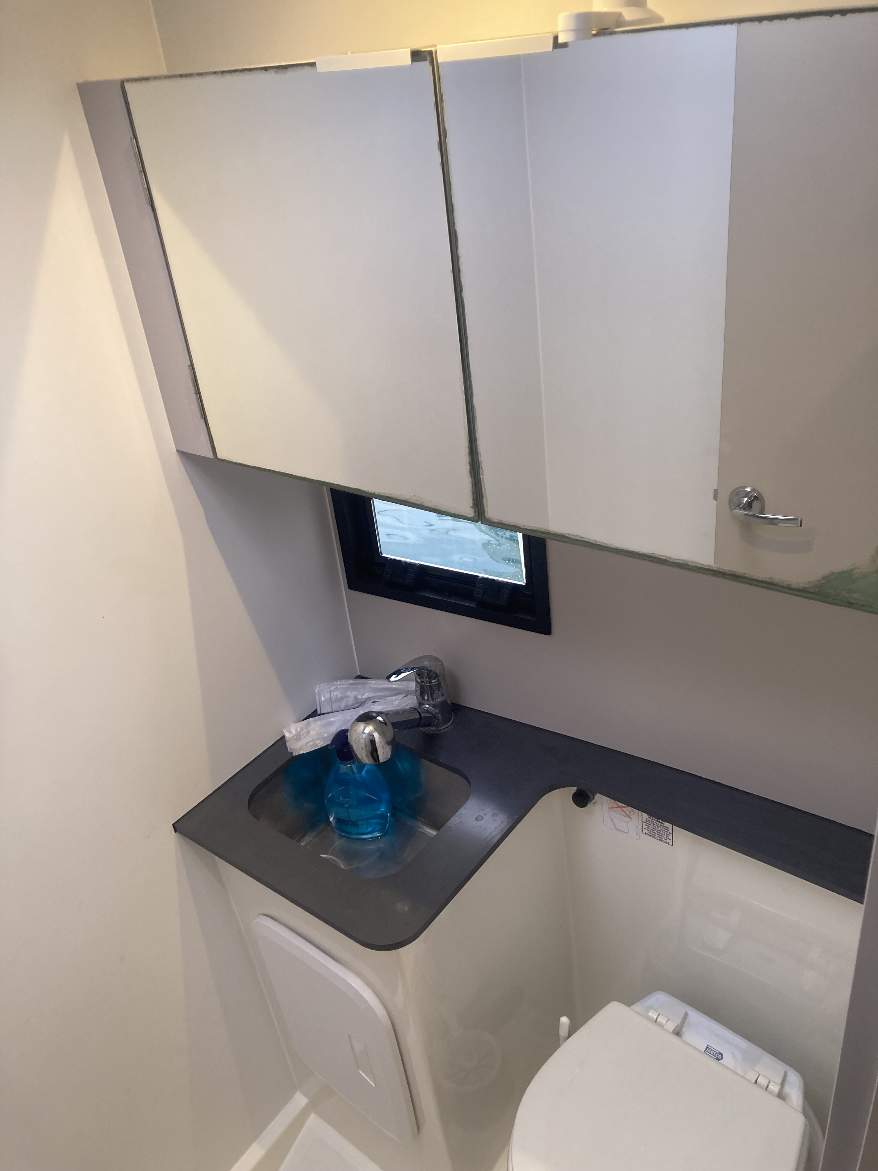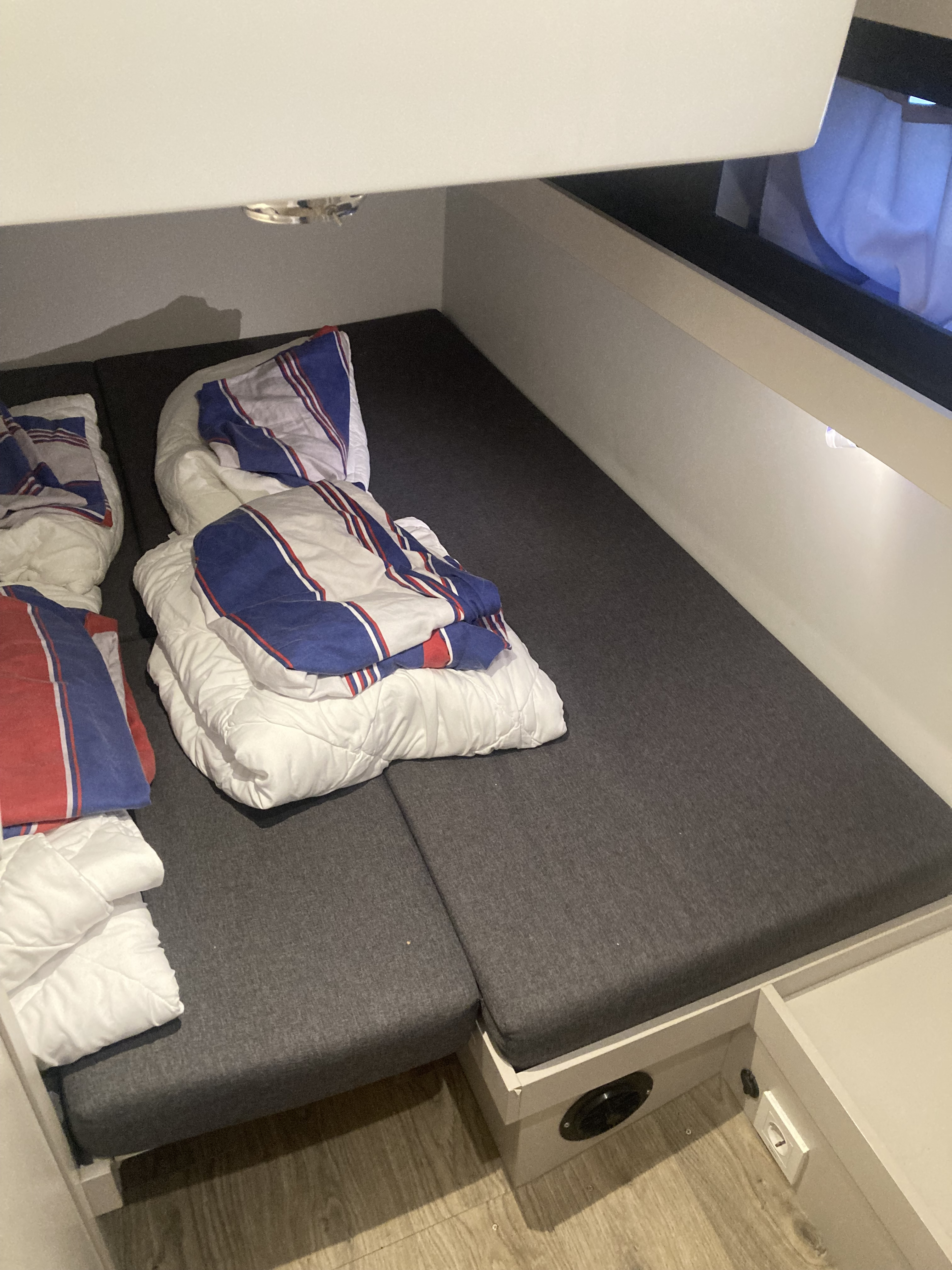 | Inside | 220V sockets, Black water tank, Gas oven, Generator, Heating, Airconditioning (independent from shore power), Refrigerator, Battery charger, Shore power cable, Moka pot, Pantry equipment, Radio, Sink, Warm water, Kettle, WC (electr.) |