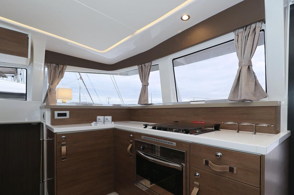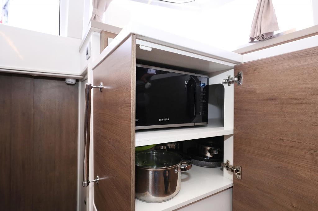| Inside | 220V sockets, Electrical filter coffee maker, Black water tank, Fusion sound system , Gas stove with oven, Heating, Inverter 12V/220V, Dock A/C 220V (cool&heat), fridge and freezer, Battery charger, Microwave oven, Moka pot, Pantry equipment, Radio with bluetooth, Sink, USB sockets in saloon and cabins, fans in cabins, Kettle, WC (electr.) |