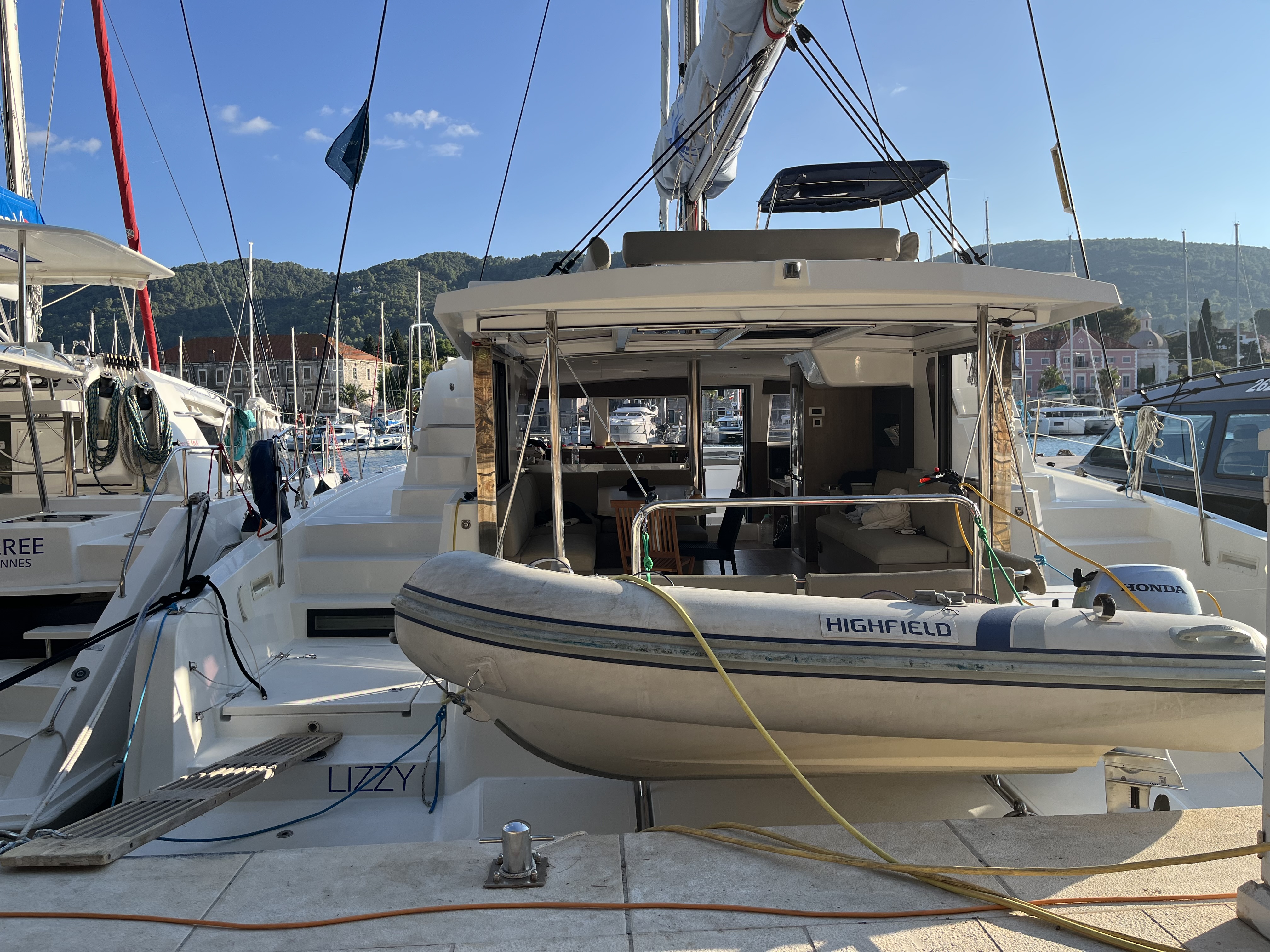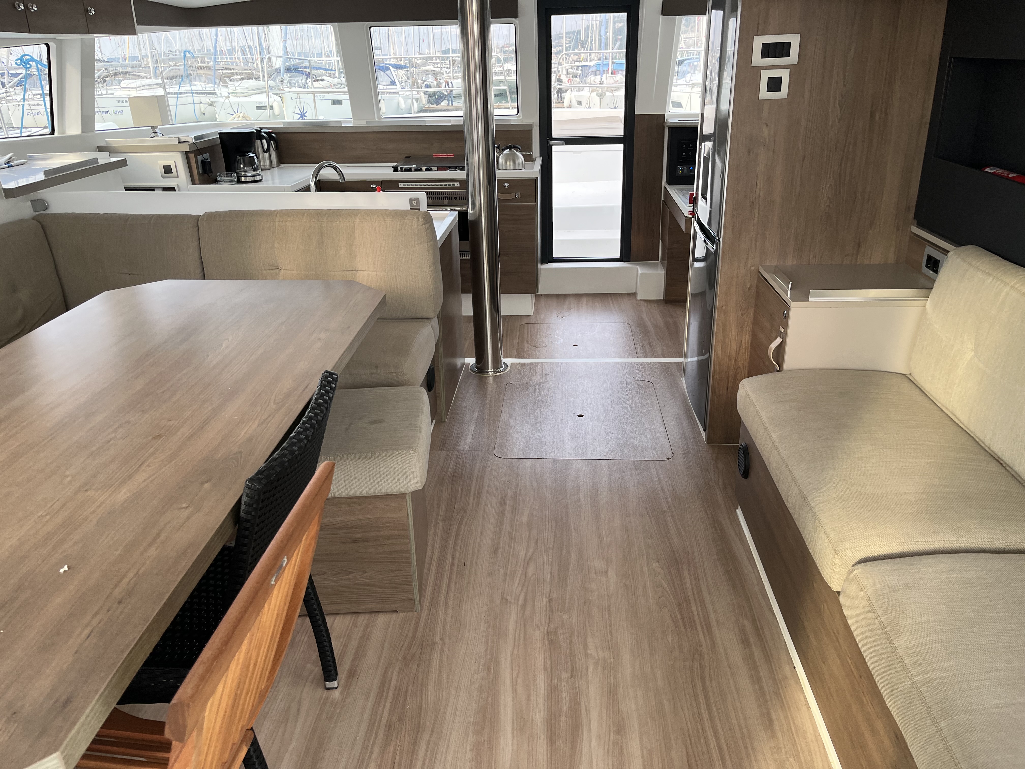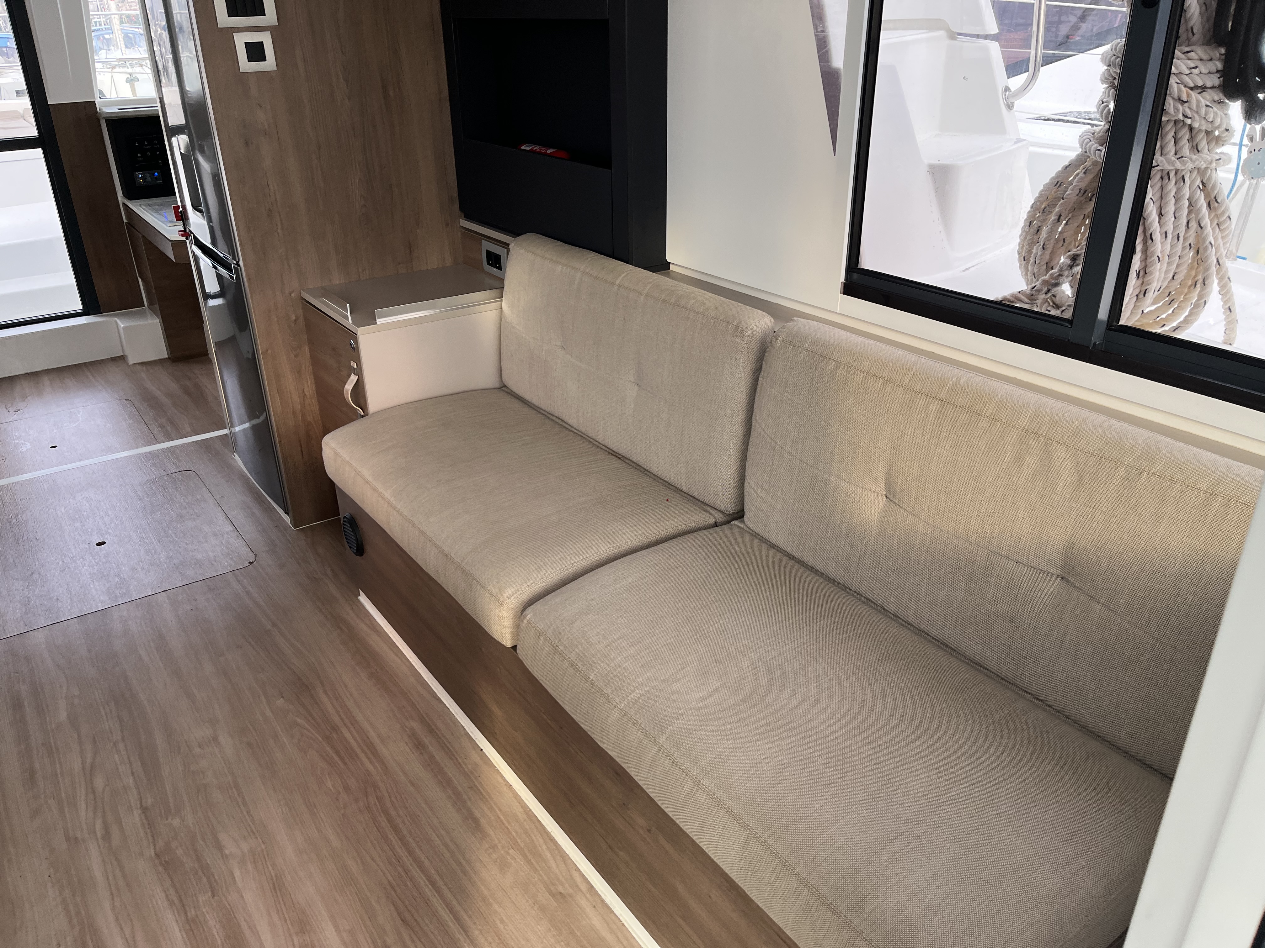 | Inside | Oven, Black water tank, Freshwater pump, Fusion sound system , Gas oven, Freezer, Heating, Inverter 12V/220V, Coat hangers, Toilet brush, Refrigerator, Shore power cable, Mosquito nets, Pantry equipment, Radio, USB Socket, fans in cabins, Kettle, WC pump |