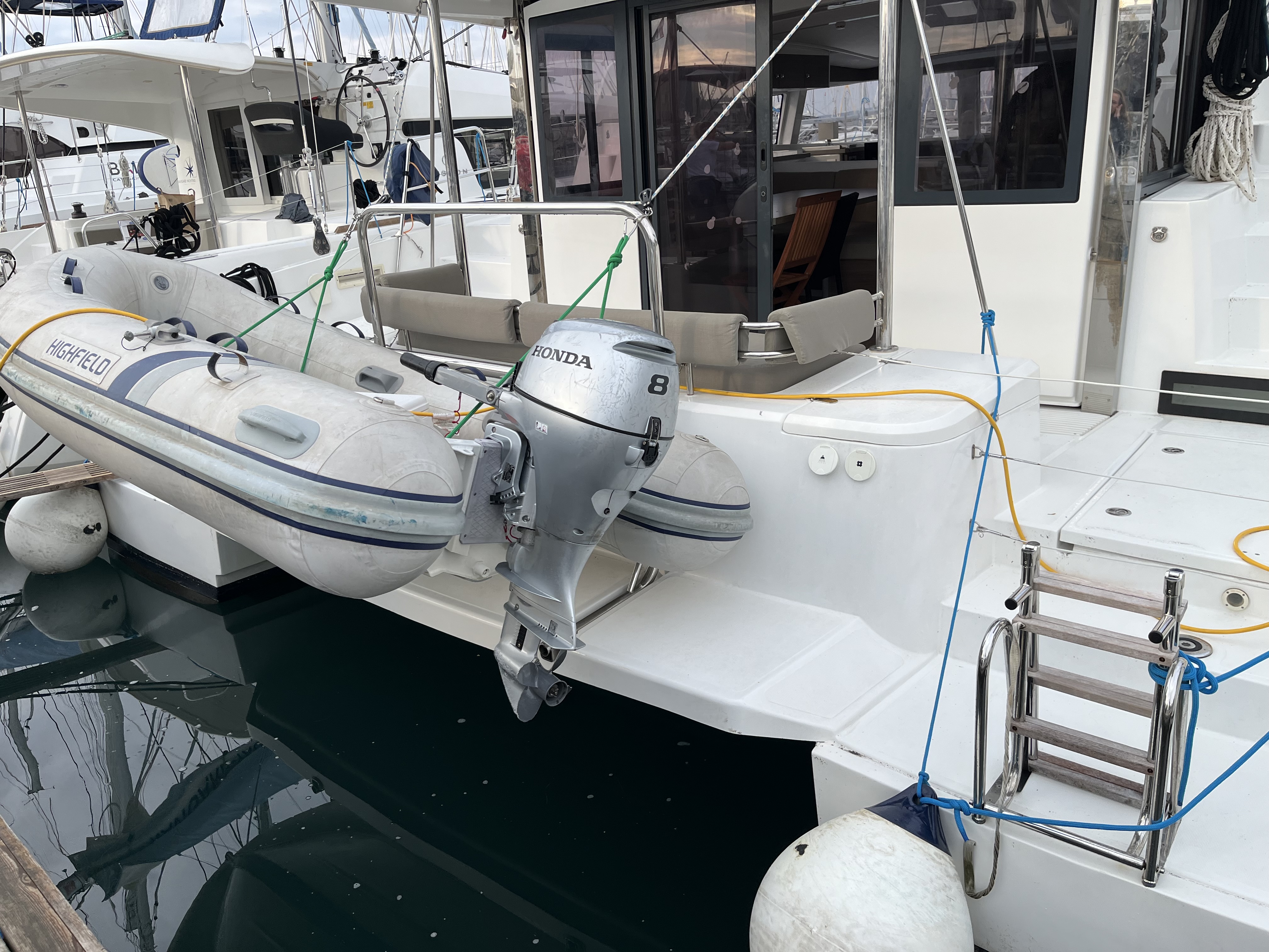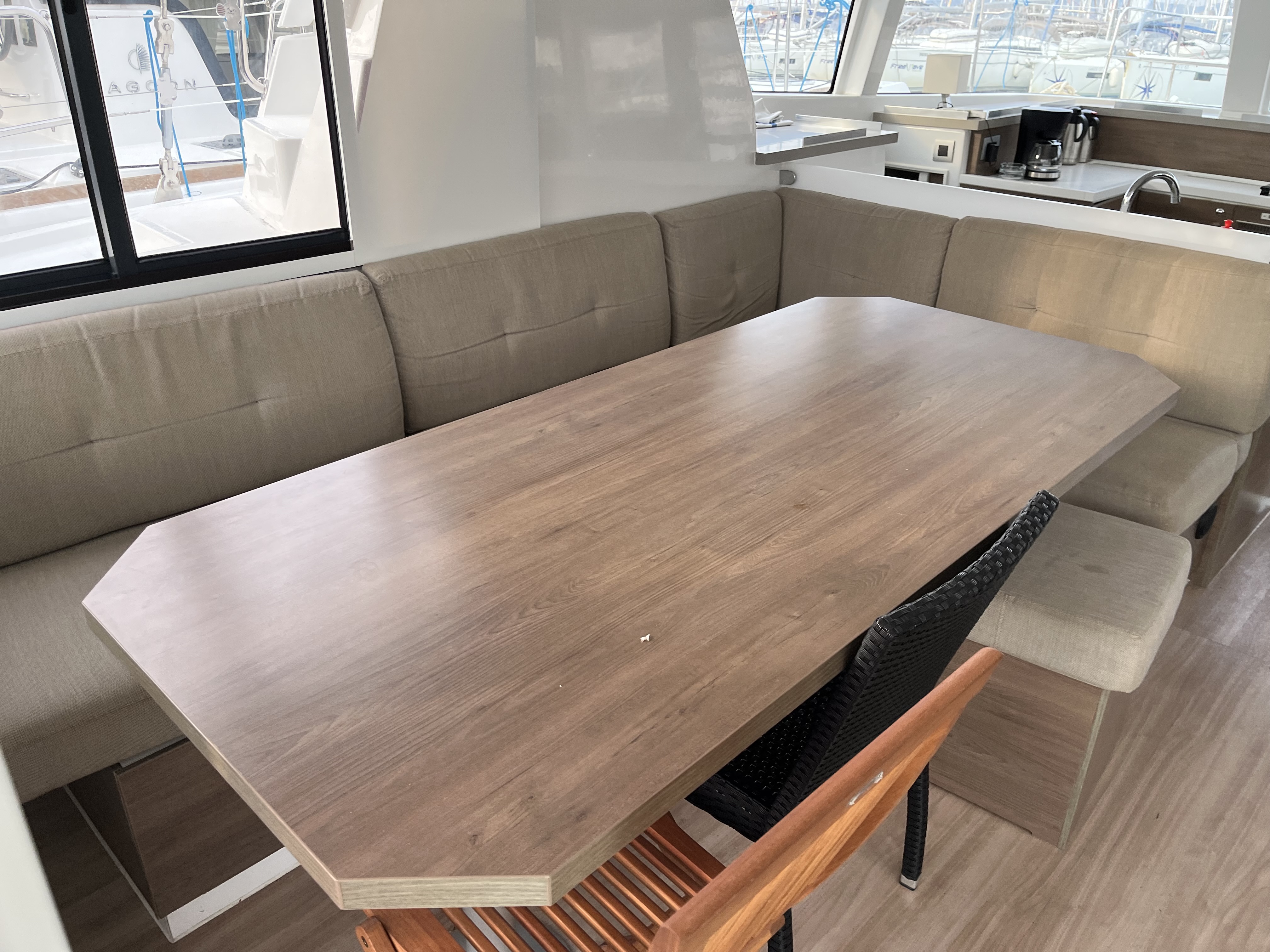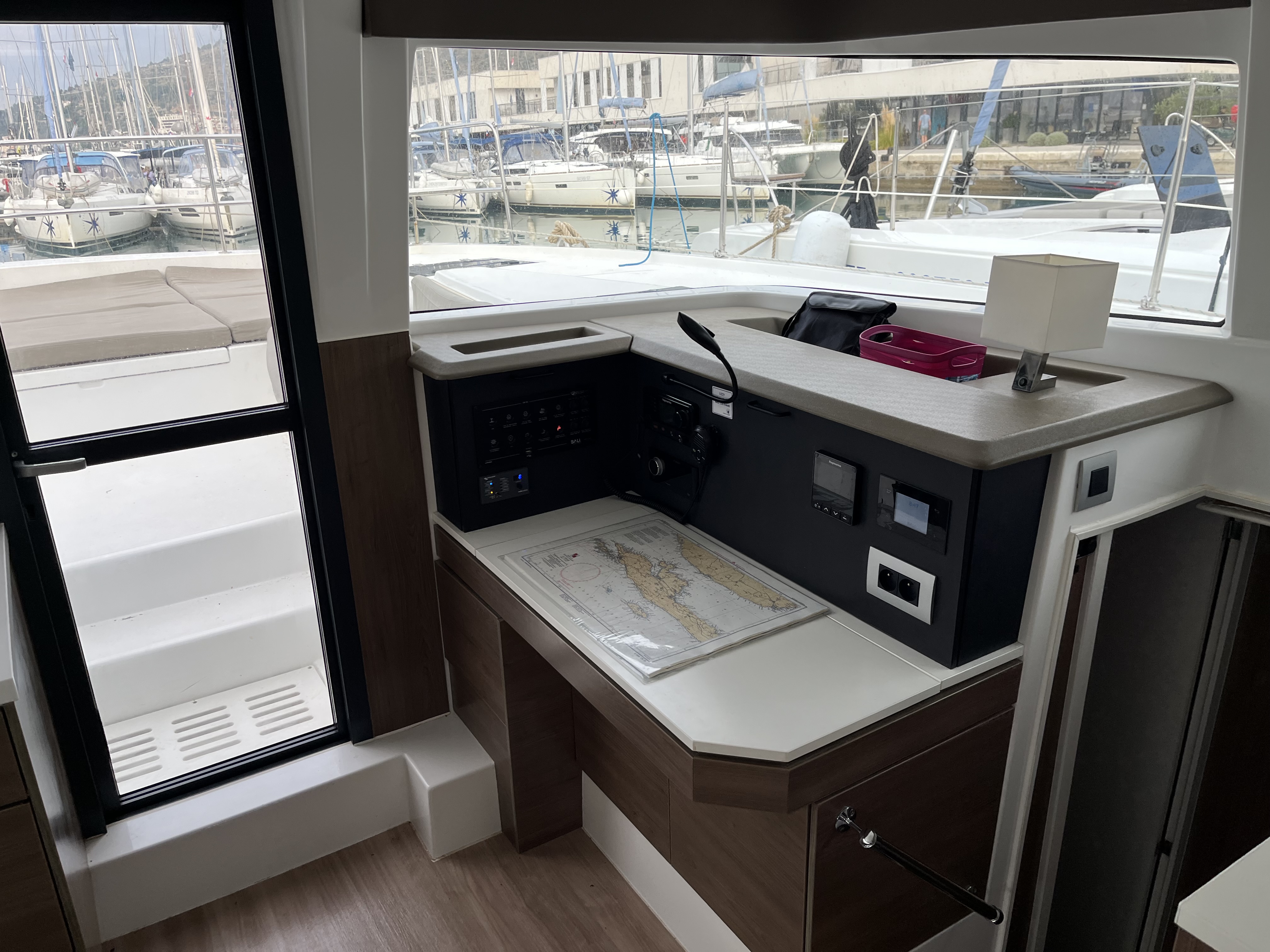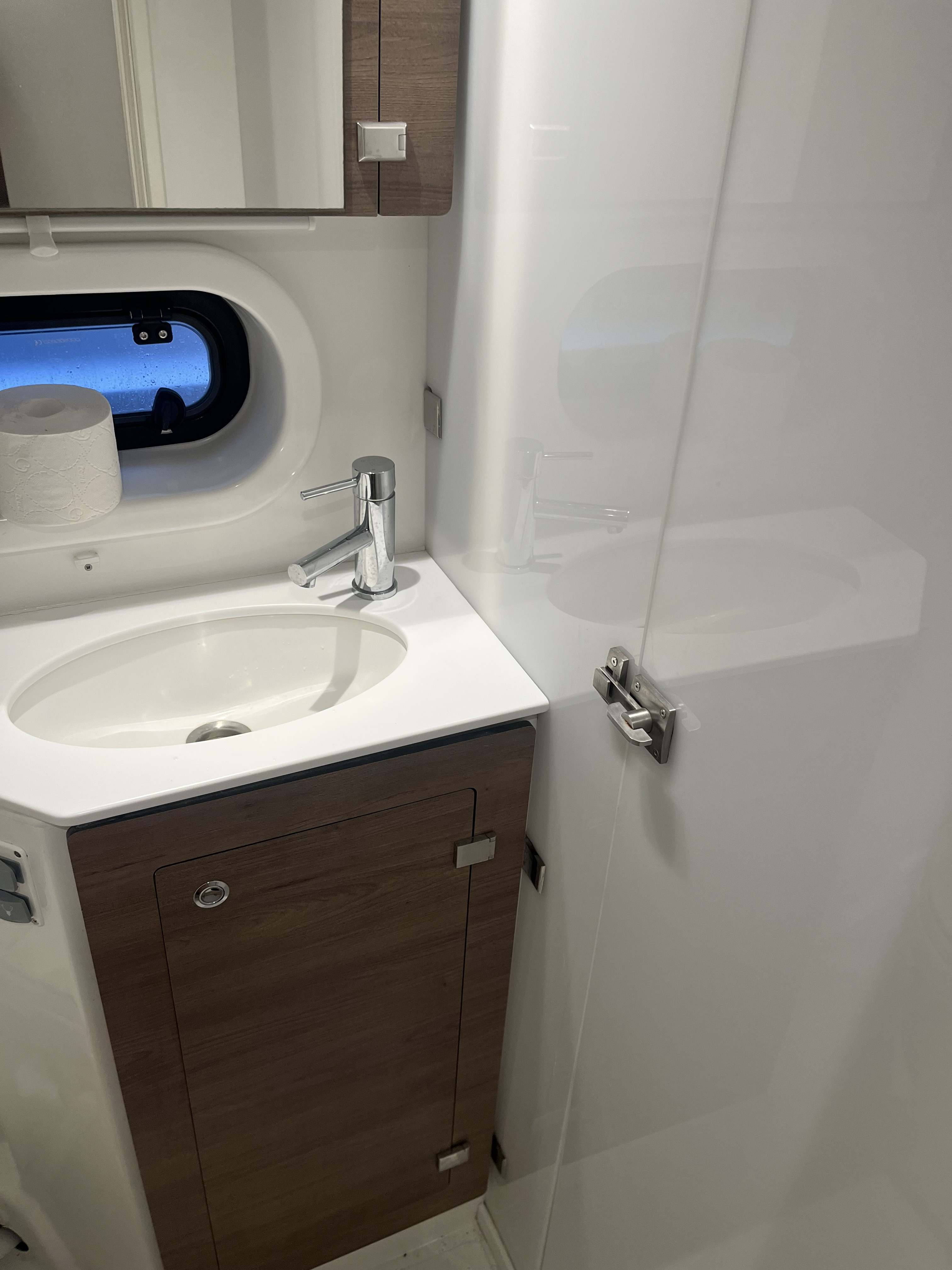 | Inside | Oven, Black water tank, Freshwater pump, Fusion sound system , Gas oven, Freezer, Heating, Inverter 12V/220V, Coat hangers, Toilet brush, Refrigerator, Shore power cable, Mosquito nets, Pantry equipment, Radio, USB Socket, fans in cabins, Kettle, WC pump |