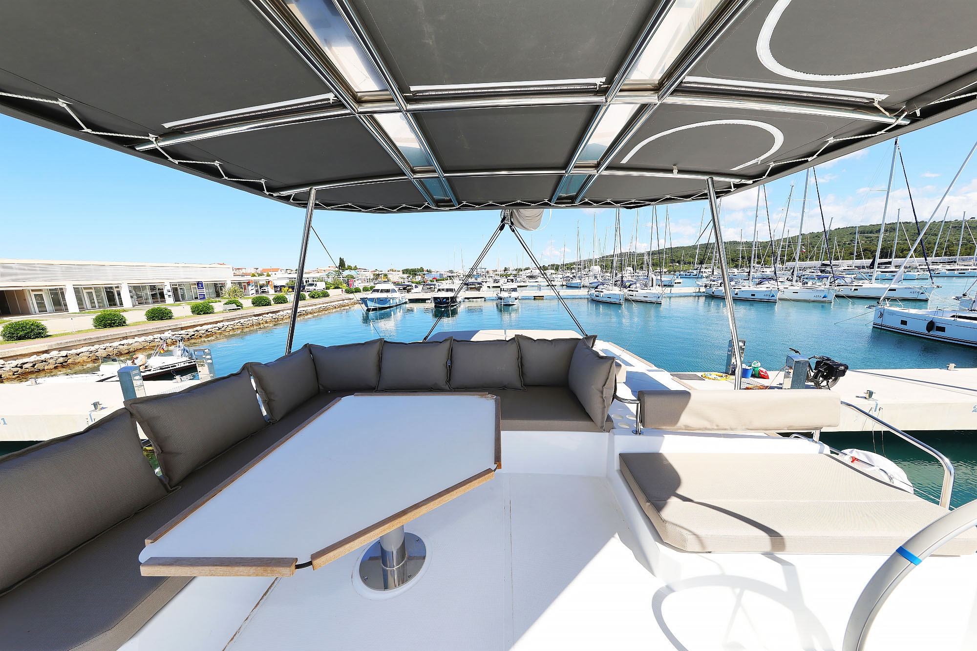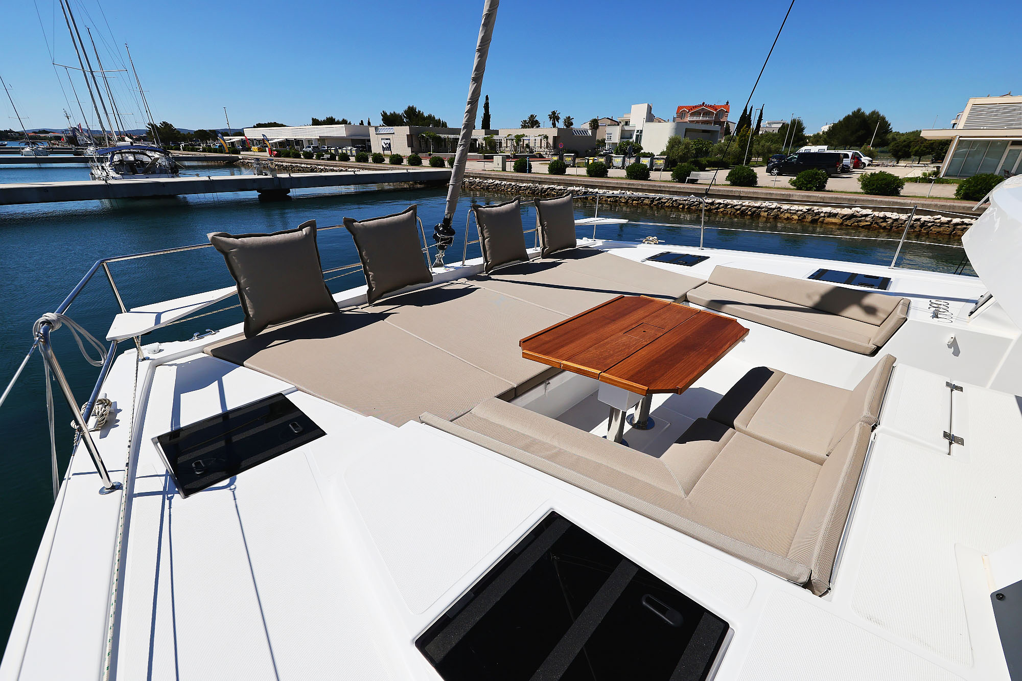| Outside | Bathing platform, Bimini top, Cockpit shower, Cockpit speakers, Cockpit cushions, Cockpit table, Deck cushions, BBQ, Solar panels, Sun deck, Teak in cockpit, LED submarine lights |