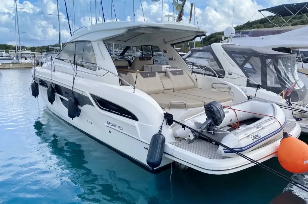 | Safety | Autopilot, First aid kit, Bowthruster, Electr. bilge pump, Fire extinguisher, Distress signals, Life jackets, Searchlight, VHF Radio |