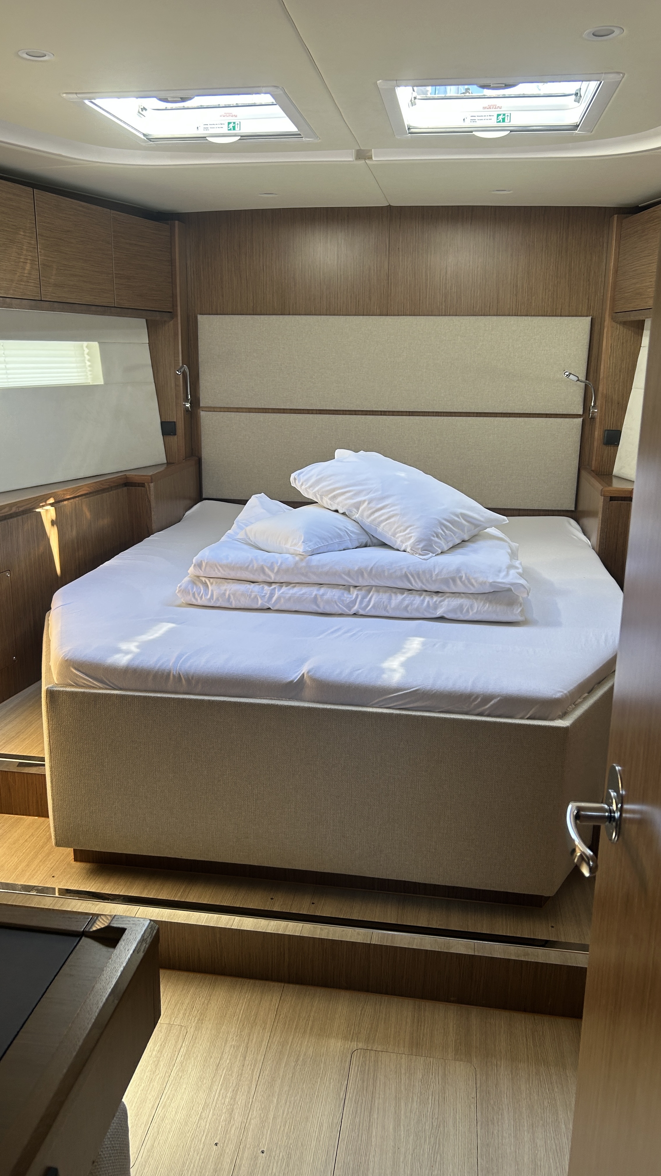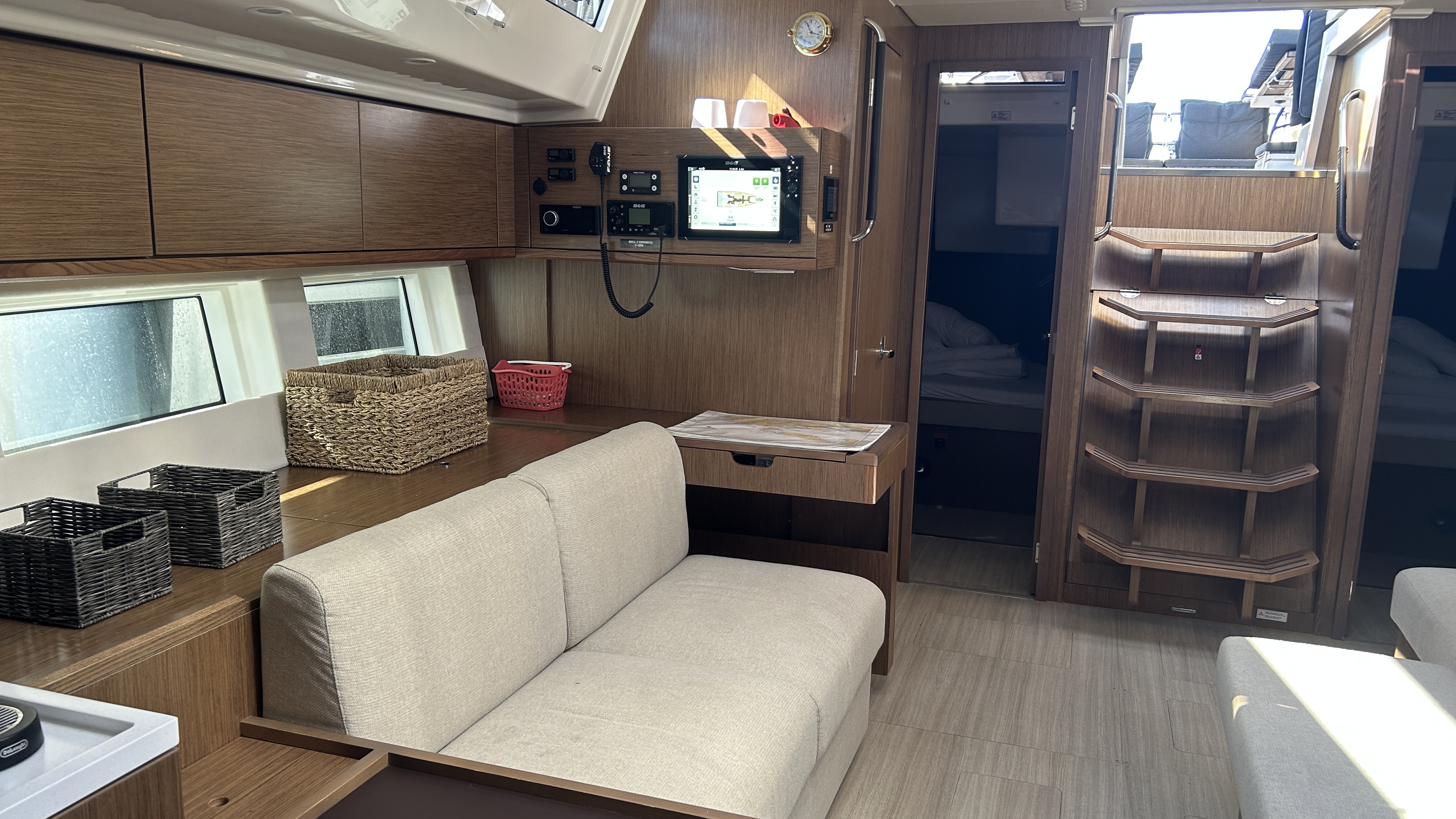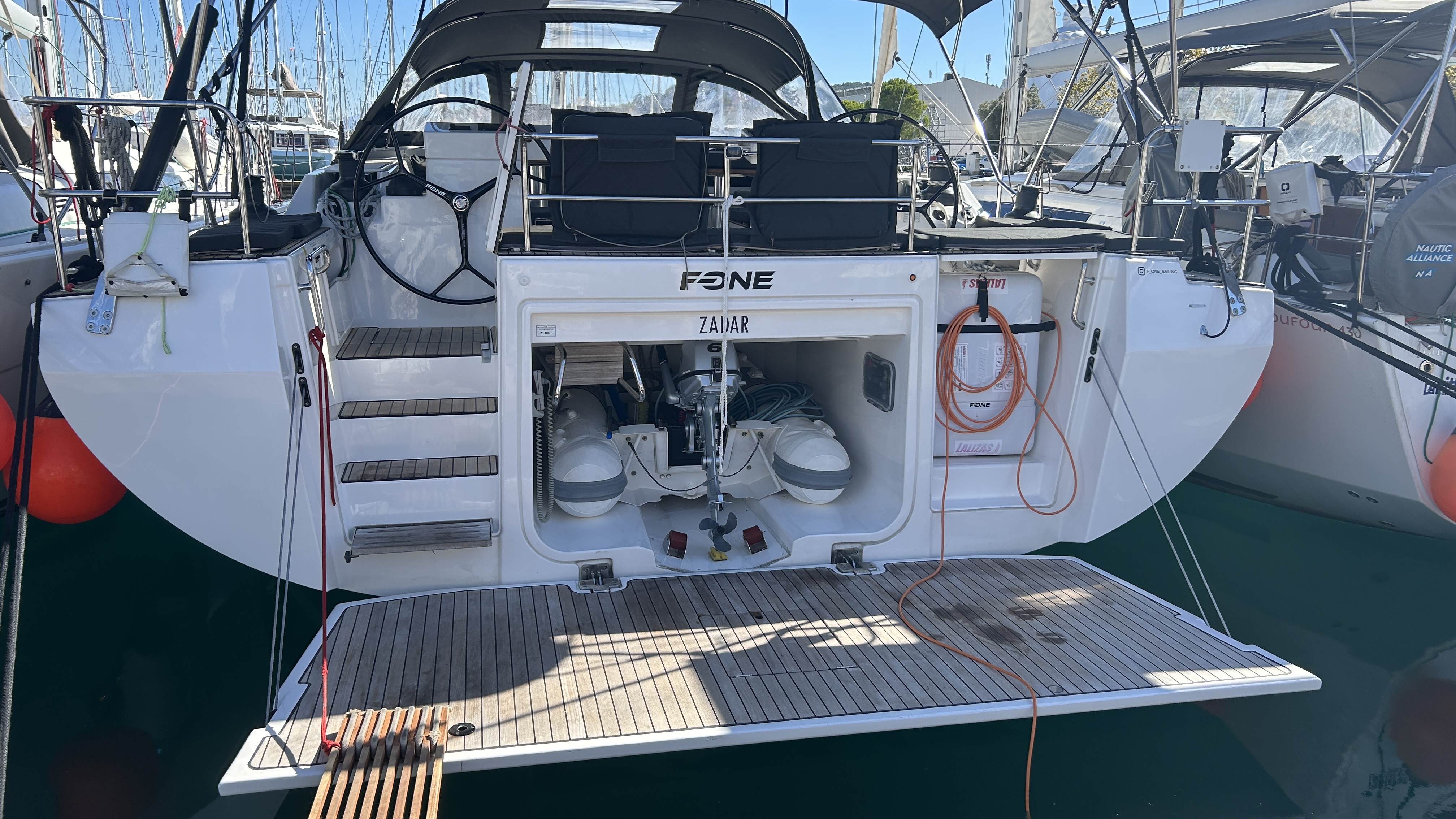 | Safety | AIS receiver, Automatic life jackets, Autopilot, Lightning buoy, Bosun's chair, First aid kit, Tools, Bowthruster, Fire extinguisher, Lifebelts, Engine spare parts , Fog horn, Distress signals, Radar reflector, Repair box for dinghy, Life raft, Searchlight, Torchlight, VHF with AIS, Second anchor |