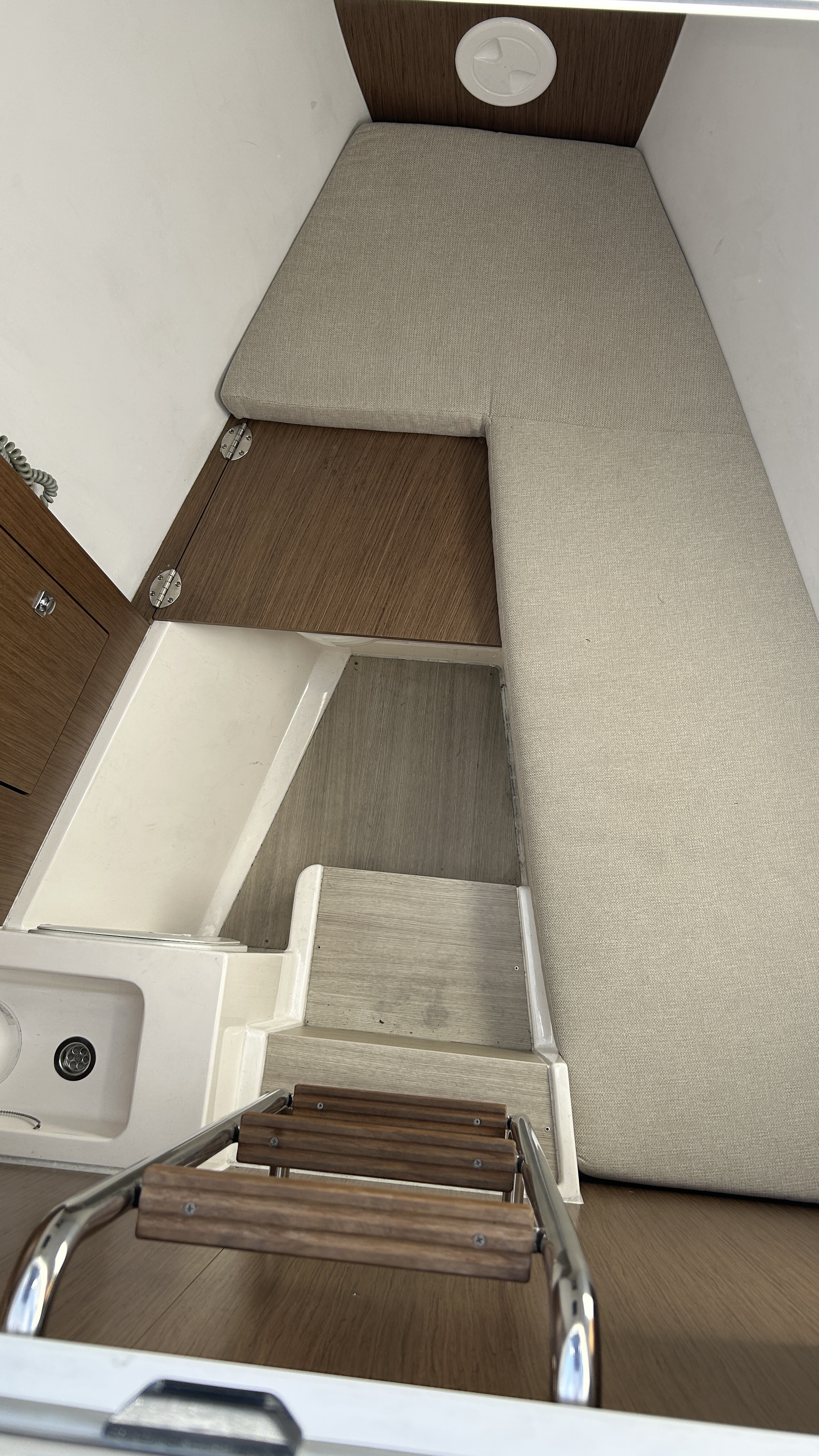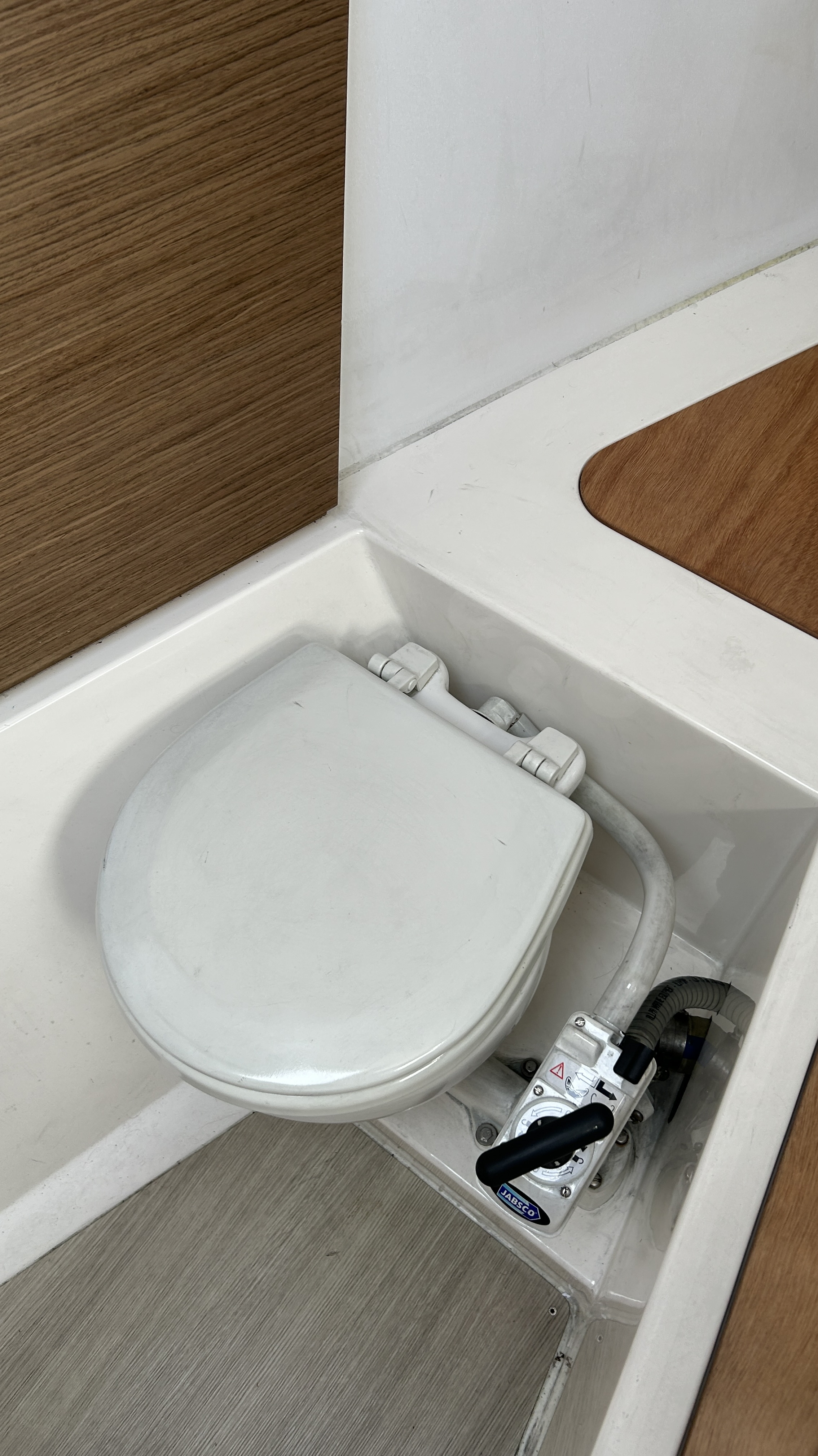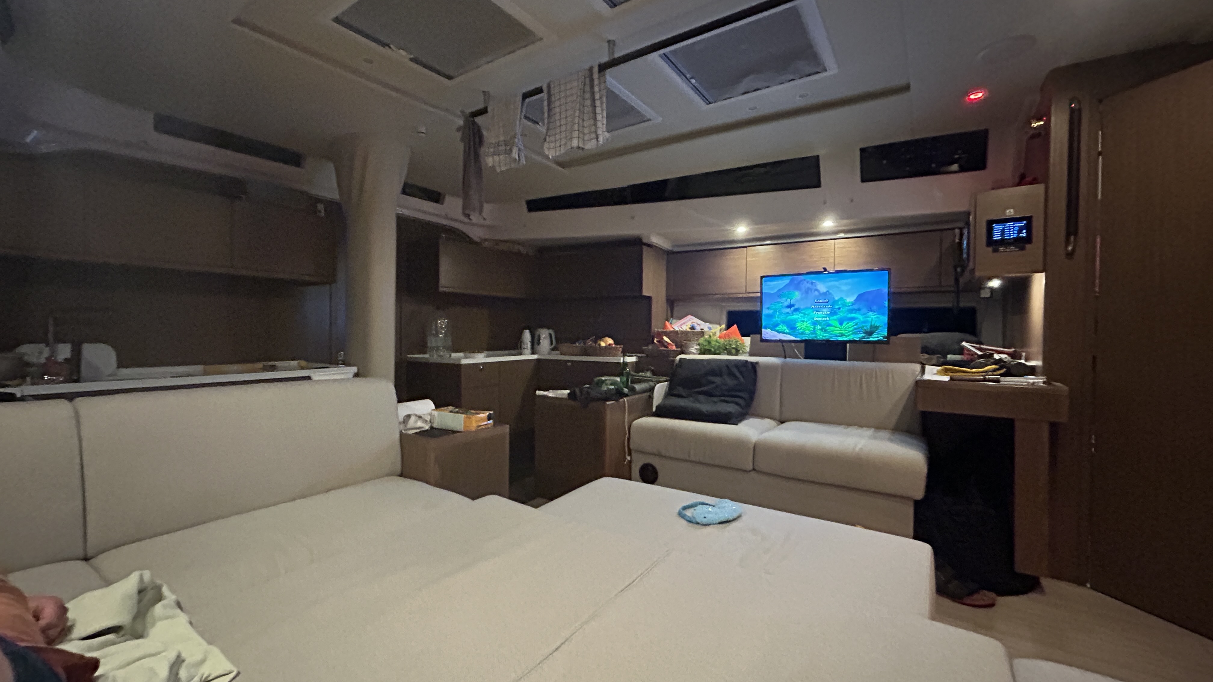 | Inside | 2nd refrigerator, Clock, Fusion sound system , Generator, Dishwasher, Heating, Inverter 12V/220V, Coffee machine, Airconditioning (independent from shore power), Refrigerator, Battery charger, Dinghy (byboat) pump, Pantry equipment, Radio with USB, Bluetooth and AUX-In, Convertible salon table, USB sockets in saloon and cabins, Warm water, WC (electr.) |