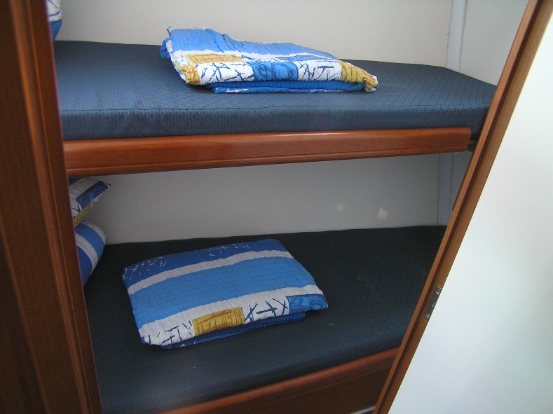 Trotz älterem Baujahr Yacht in sehr gutem Zustand. Ein großes Solar-Panel sorgt dafür, dass man auch ohne Motor oder Landstrom Kühlschrank und Beleuchtung/Kleingeräte durchgehend laufen lassen könnte. Lediglich bei stärkerer Steuerbord-Lage kam außen etwas Toiletten-Geruch, wobei der Vercharterer sich für die Rückmeldung bedankt hat und dies angehen möchte.