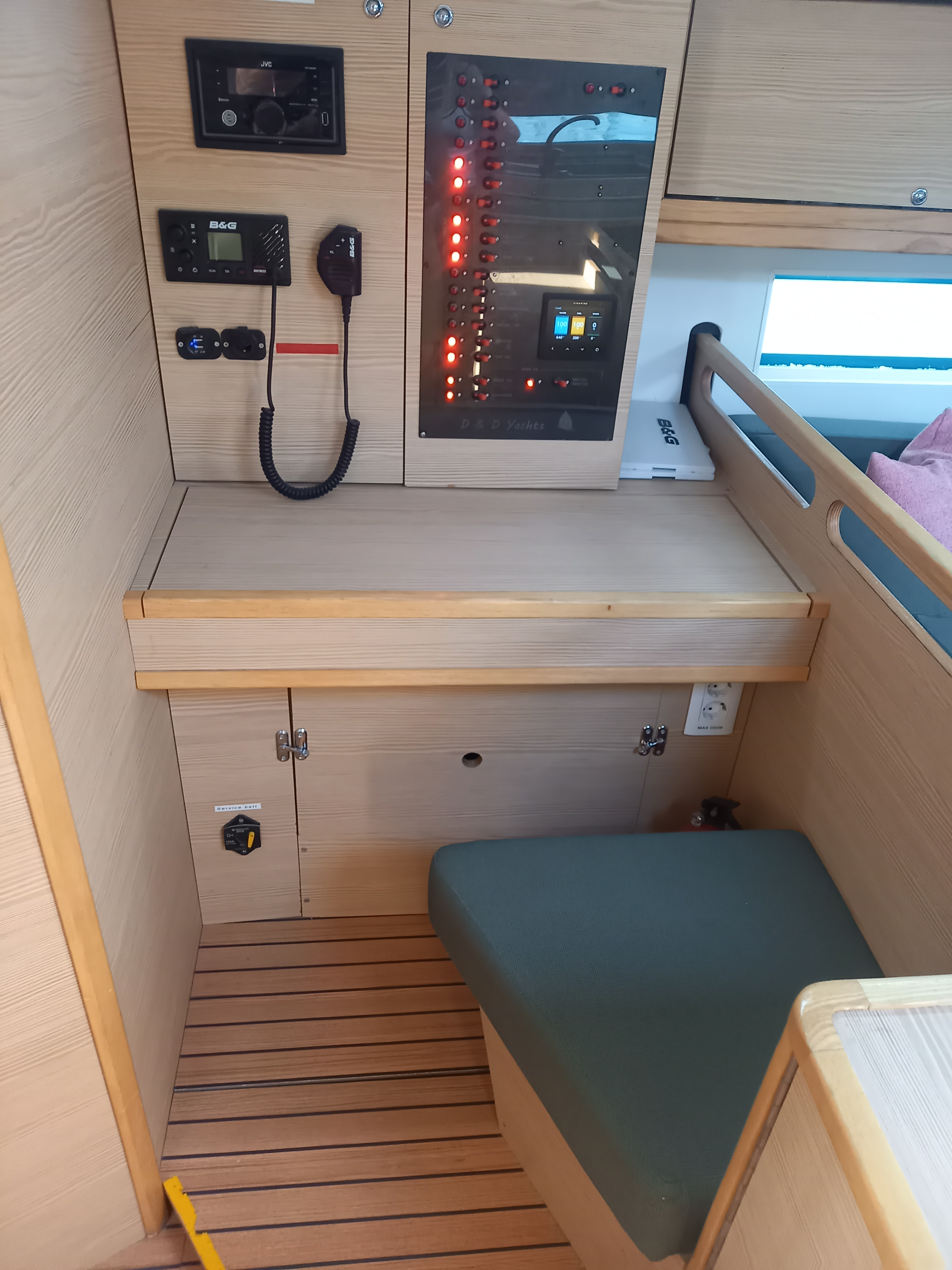 | Navigation | Barometer, Echo sounder, Binoculars, GPS Chart Plotter, Harbour books, Navigation set, Nautical charts, Log |