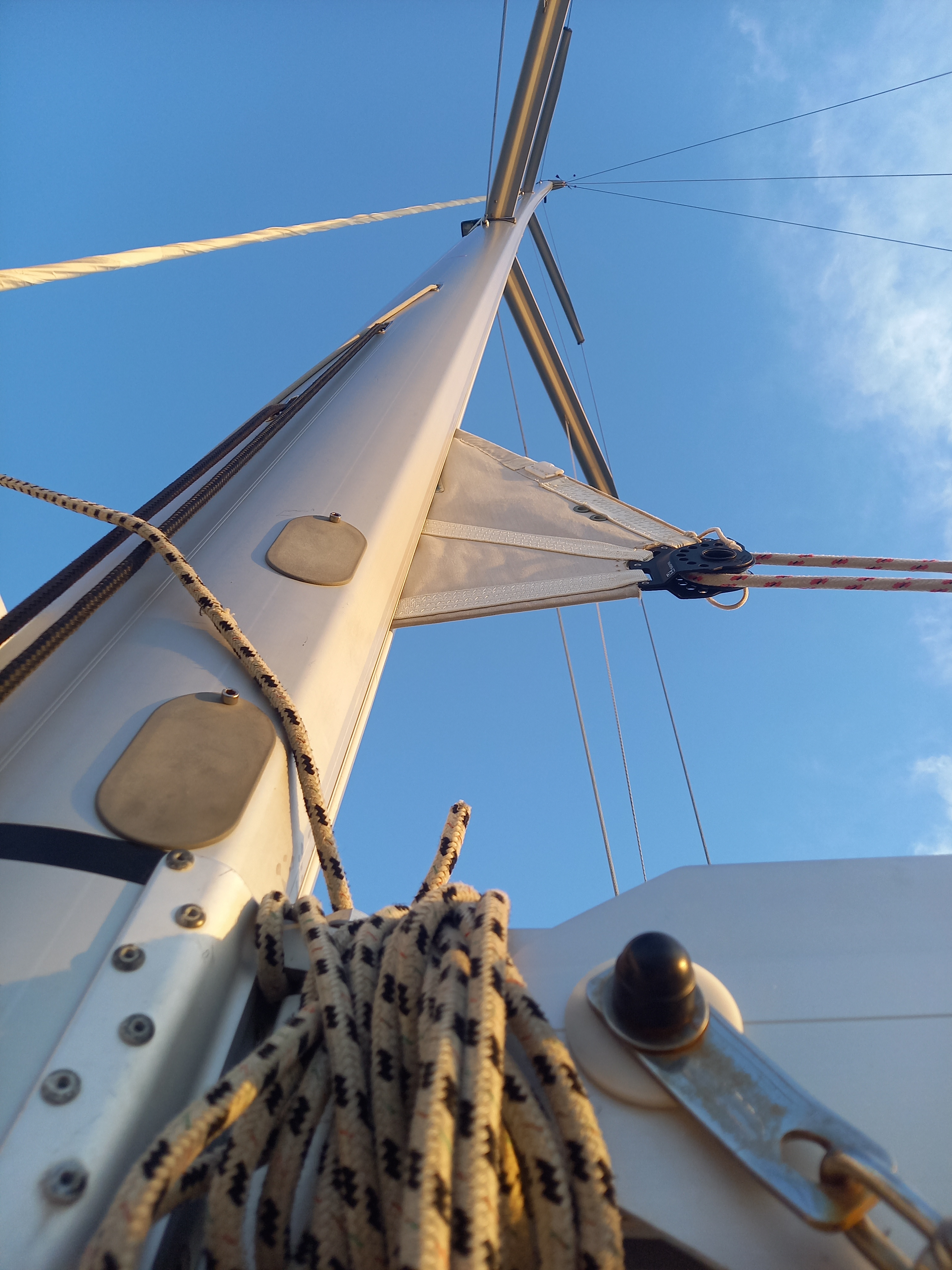 Bootstyp (wie von Ihnen vorher darauf hingewiesen) segeltechnisch nicht optimal. Letztes Foto zeigt z.B. eine deutliche Mastkrümmung. Laut Vercharterer hält das Deck wegen der fehlenden Stütze unter Deck den Mast nicht richtig.