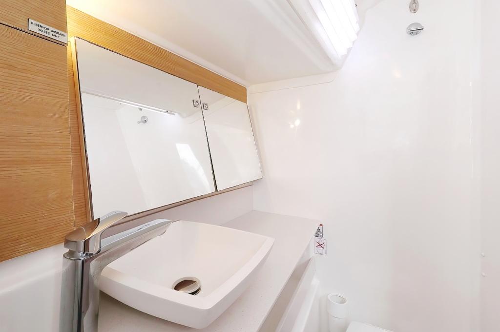 | Outside | 220V shore connection, Anchor with chain, Bathing platform, Bimini top, Boat hook, Cockpit shower, Cockpit speakers, Cockpit cushions, Cockpit table, Electr. anchor windlass, Fender, Mooring lines, Gangway, BBQ, Solar panels, Sprayhood, Teak in cockpit, Teak deck, Water hose, Winches |