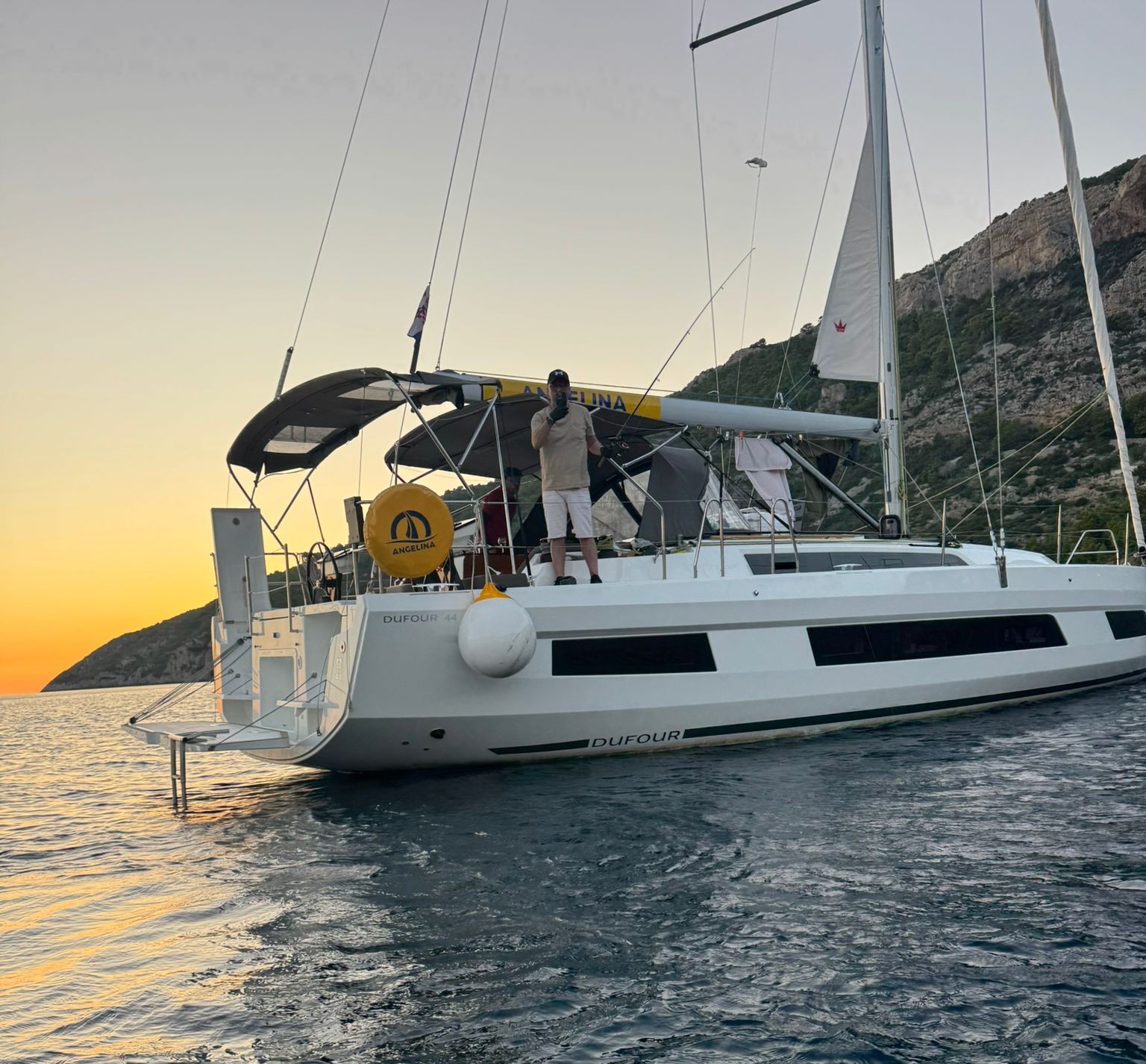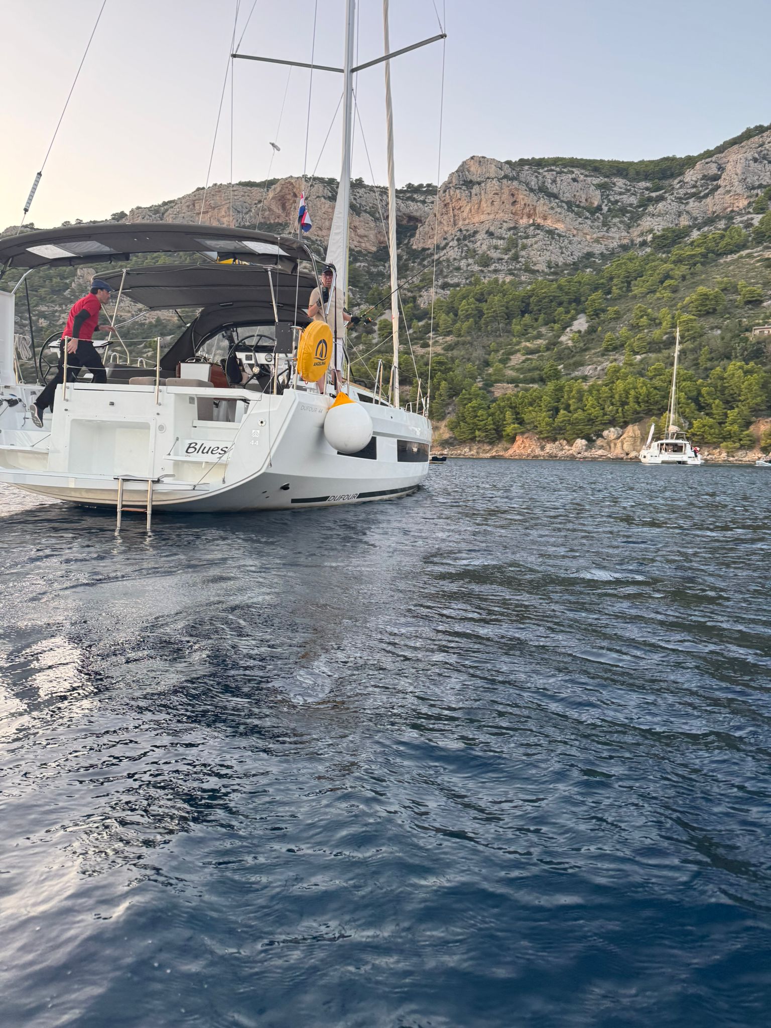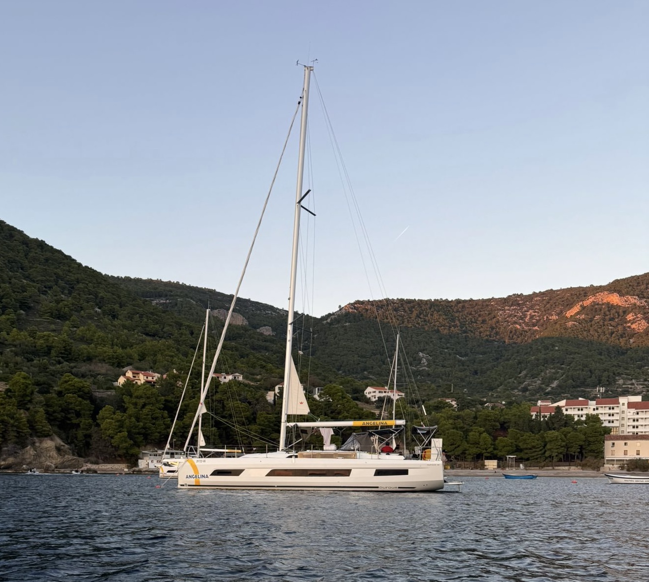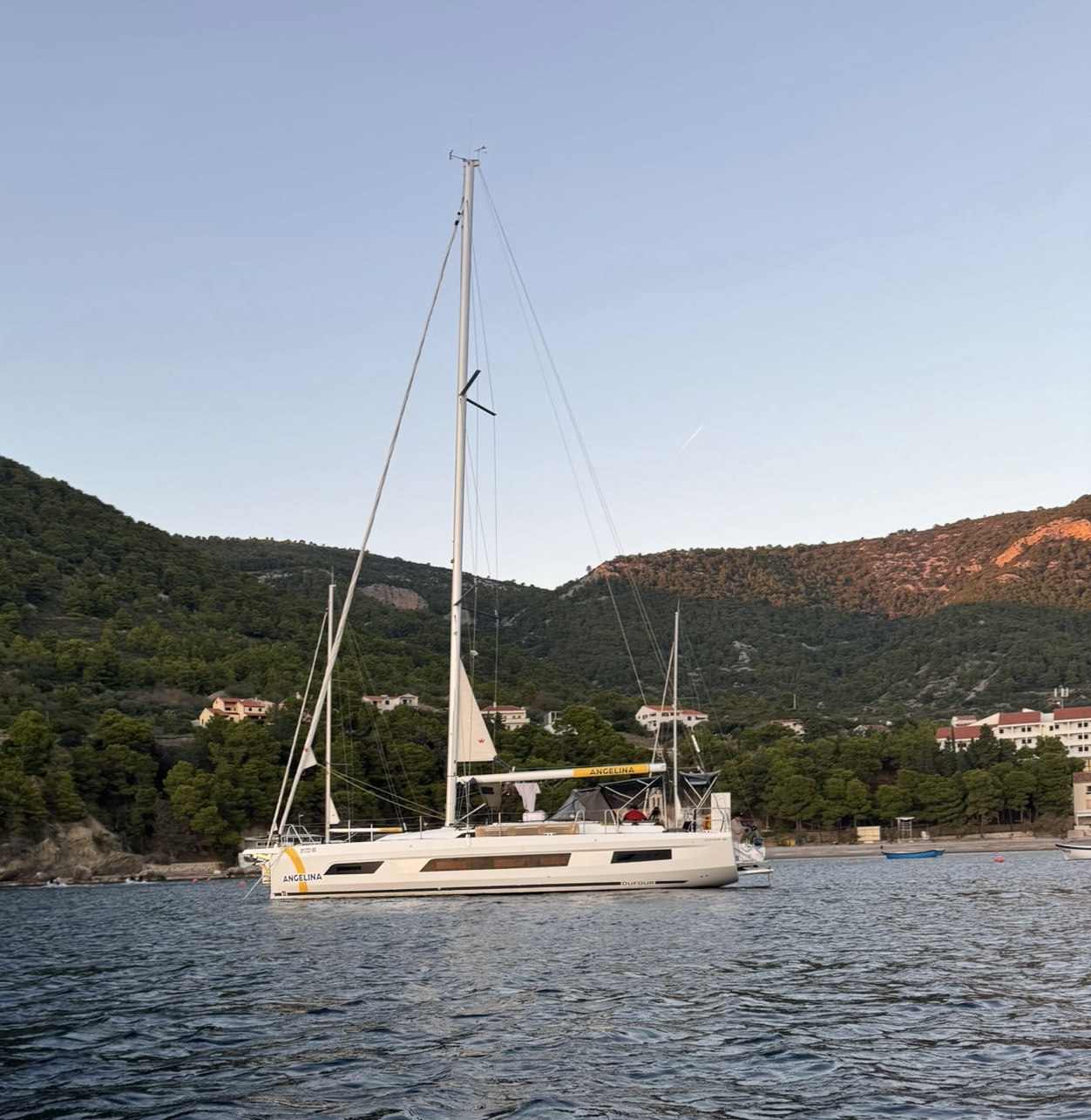 | Outside | 220V shore connection, Bathing platform, Bimini top, Boat hook, Cockpit shower, Cockpit speakers, Cockpit cushions, Cockpit table, Fender, Mooring lines, Gangway, BBQ, Solar panels, Sprayhood, Water hose, Windex, Winches |